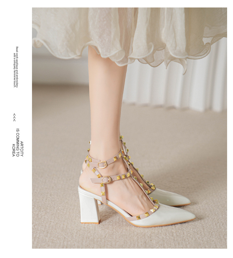 528-2 리벳 하이힐 플러스 사이즈 뾰족한 신발 여성의 봄과 여름 새로운 로마 샌들 우아한 바오터우 신발스토어 가기