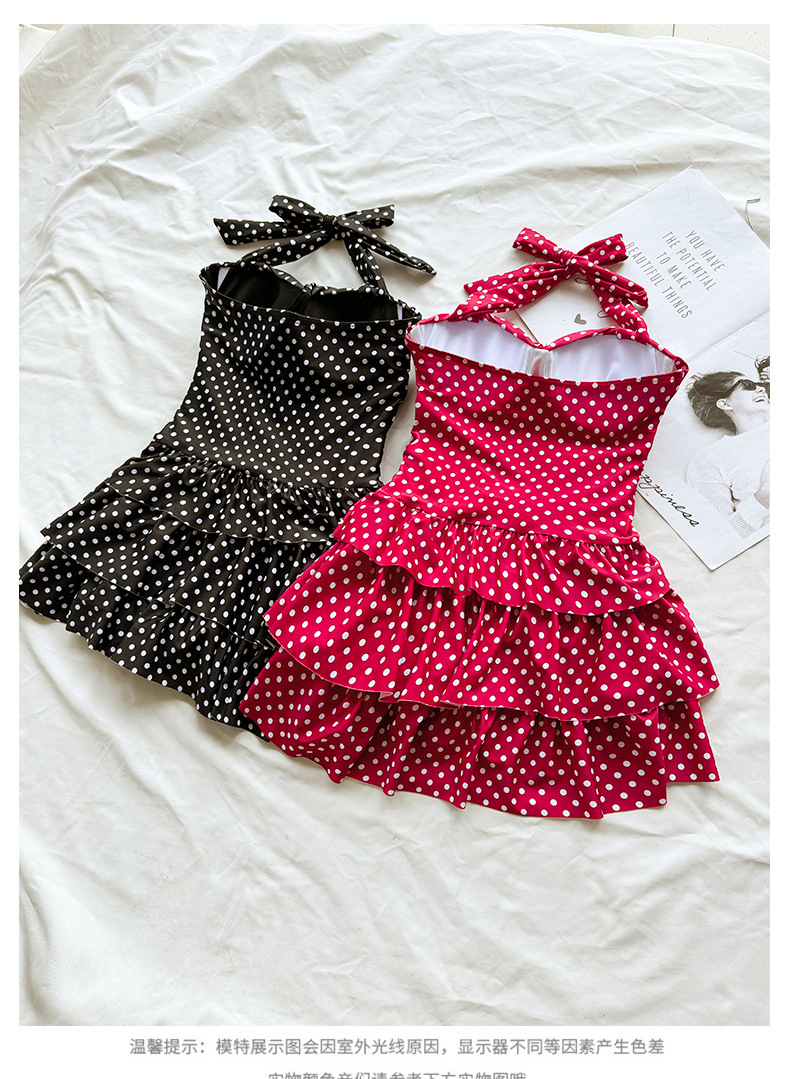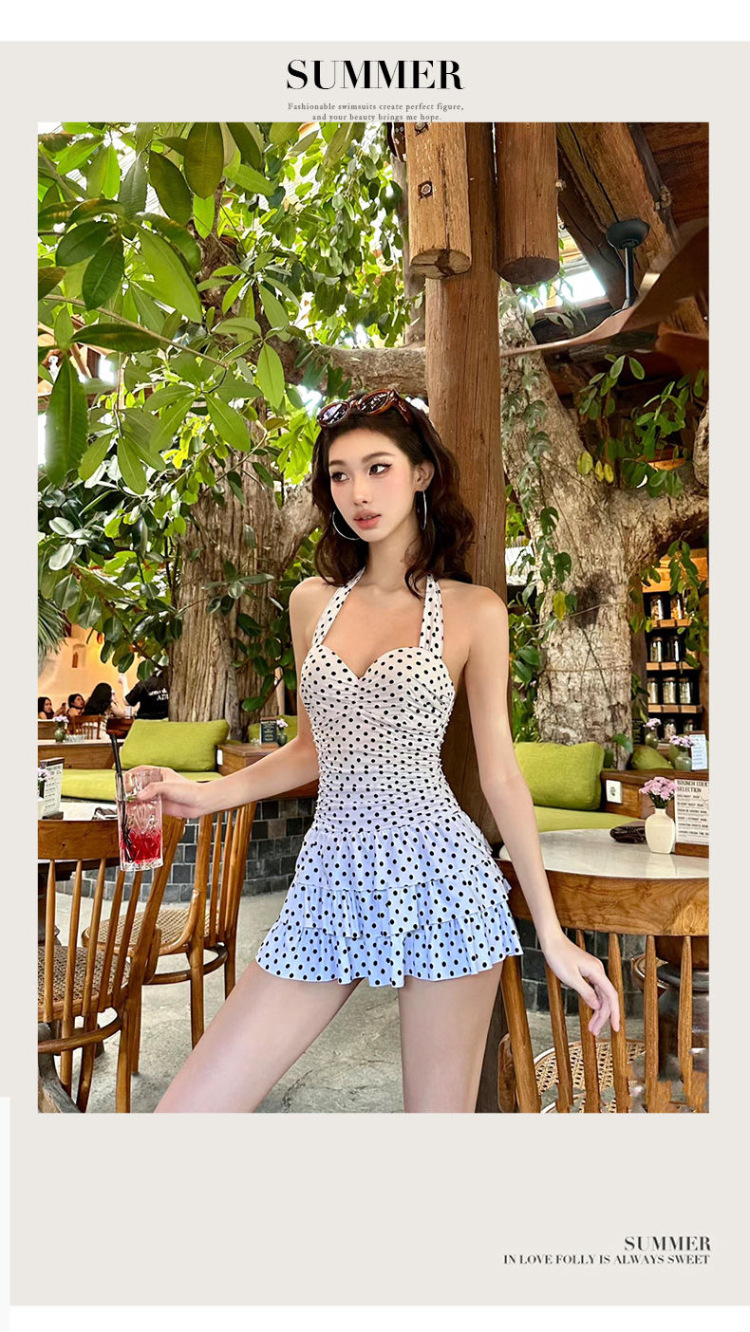 한국 인 스타일 빈티지 클래식 웨이브 담낭 케이크 스커트 슬림 핏 슬리밍 사이즈 가슴 원피스 수영복 여성용 수영복스토어 가기