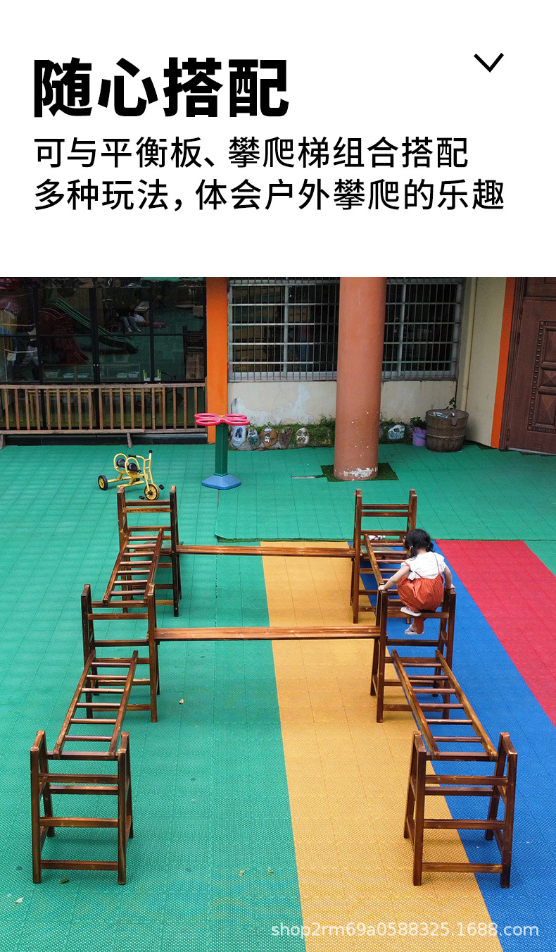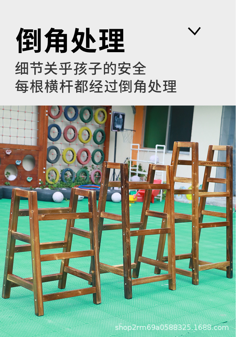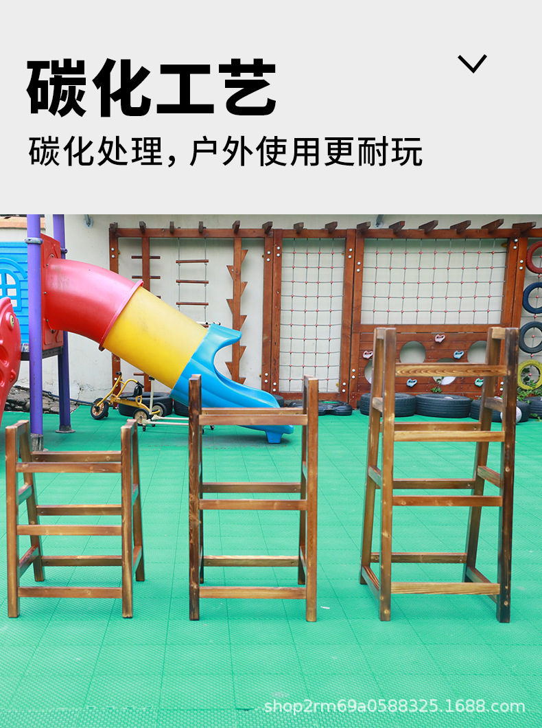 안지 게임 유치원 야외 어린이 탄화 단단한 나무 등반 사다리 랙 센서 물리적 균형 교육 교육 인식스토어 가기