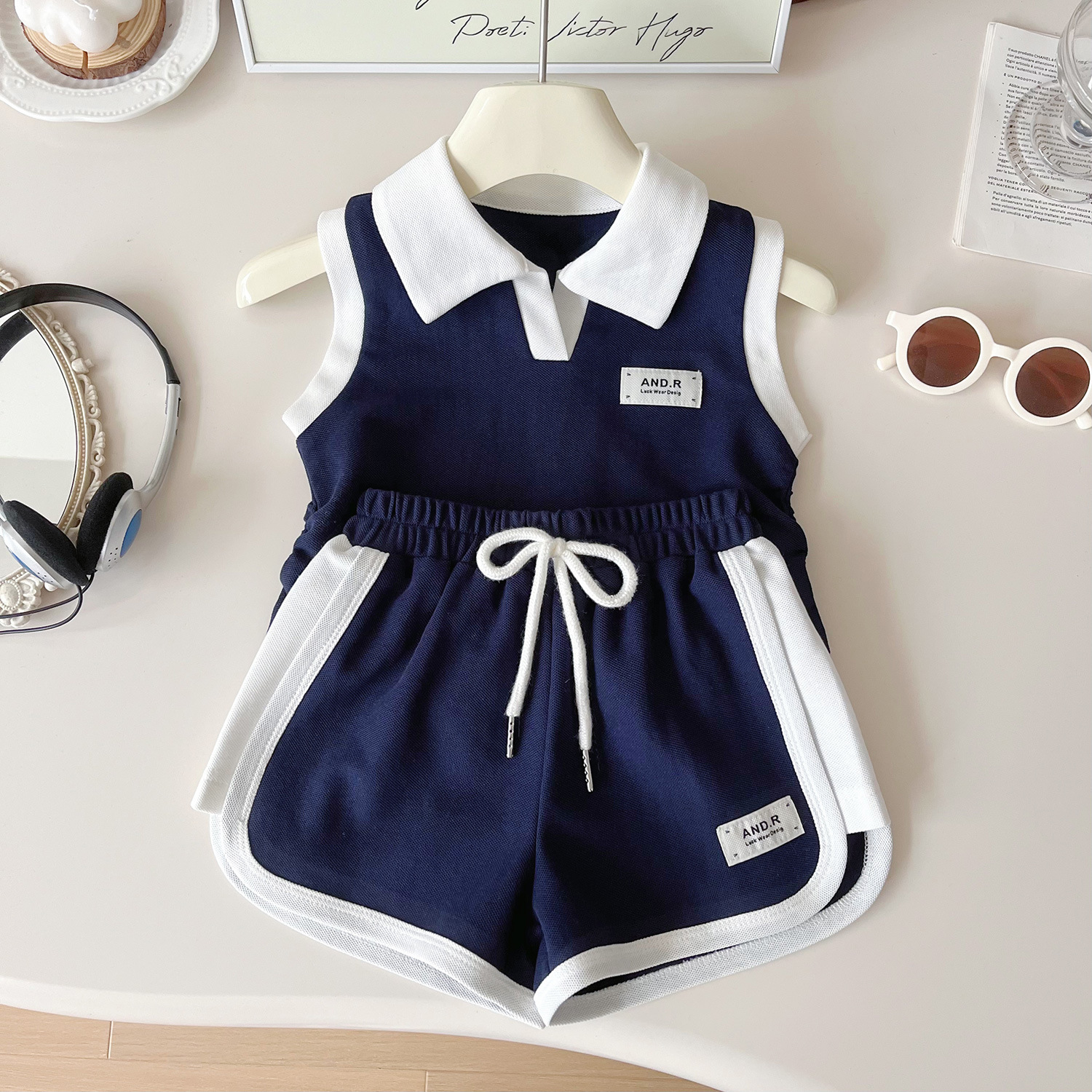 여자 세트 2024 여름 새로운 한국식 민소매 조끼 반바지 투피스 아이 귀여운 캐주얼 세트