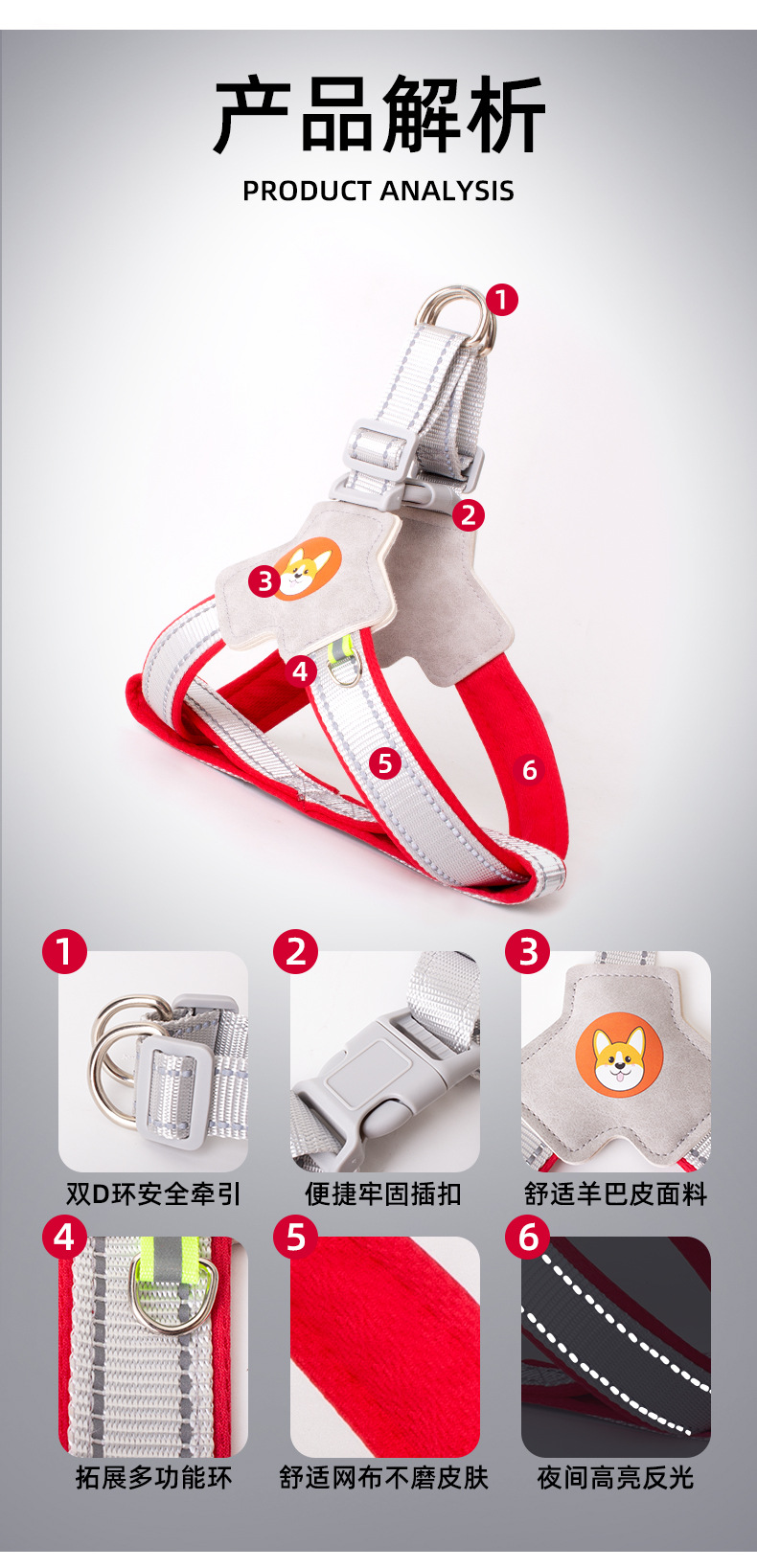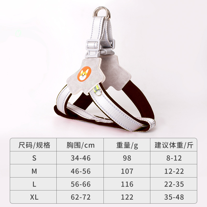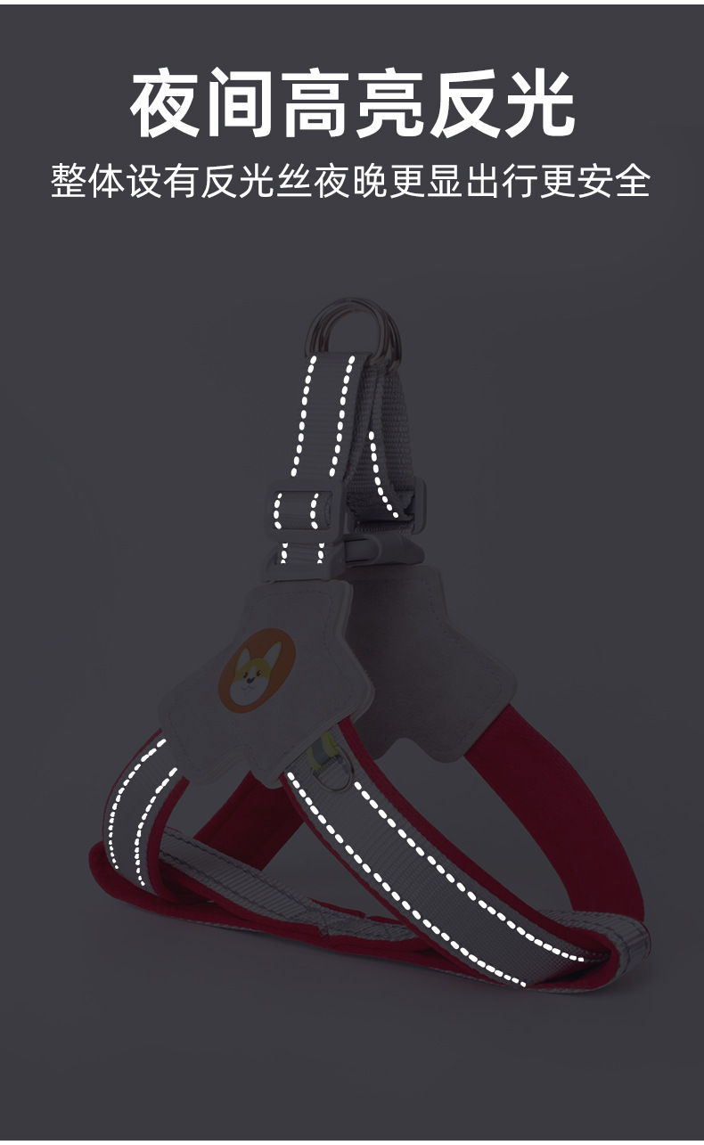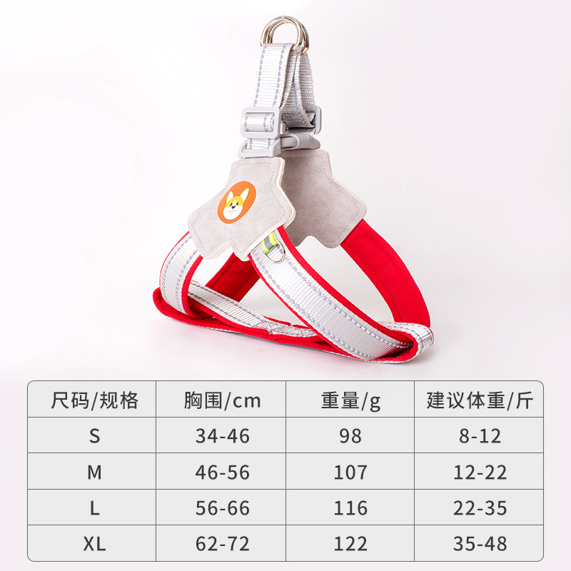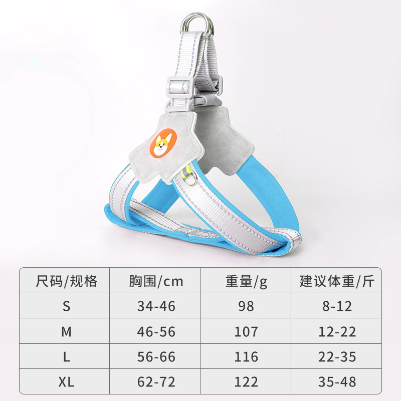 개 견인 로프 조끼 애완 동물 가슴 스트랩 개 걷는 로프 차이 개 코기 반사 폭발 방지 개 걷는 로프 가슴