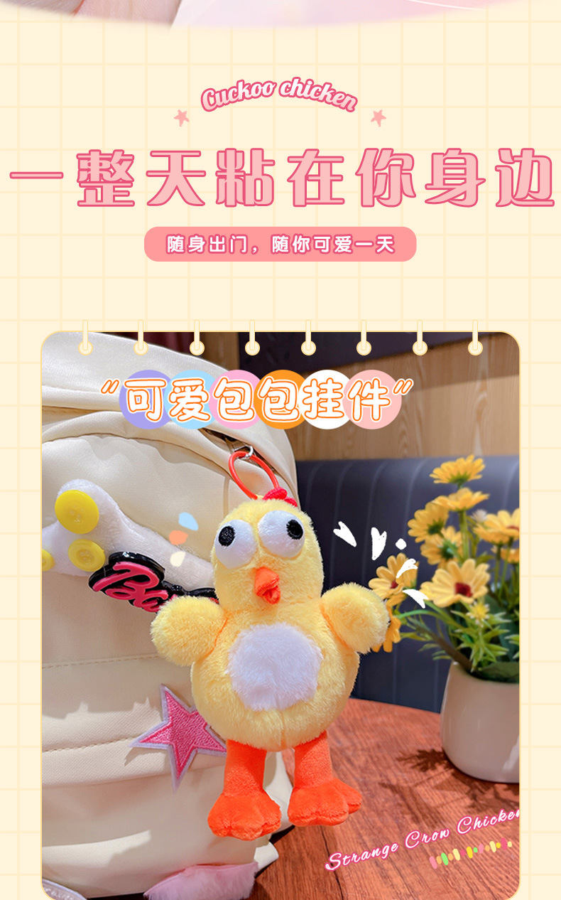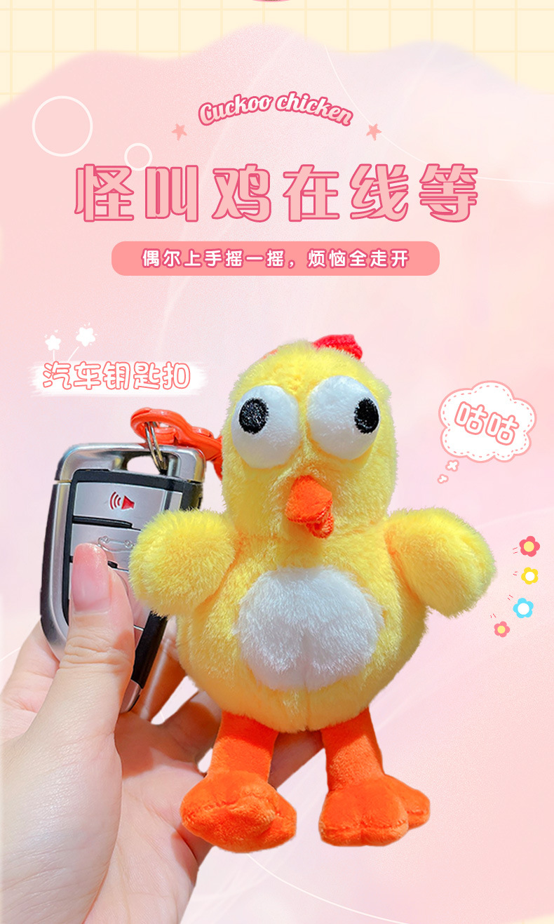 만화 봉제 이상한 큰 눈 치킨 봉제 버클 커플 고급 자동차 가방 교수형 장식품 키 체인 펜던트 선물 배치스토어 가기