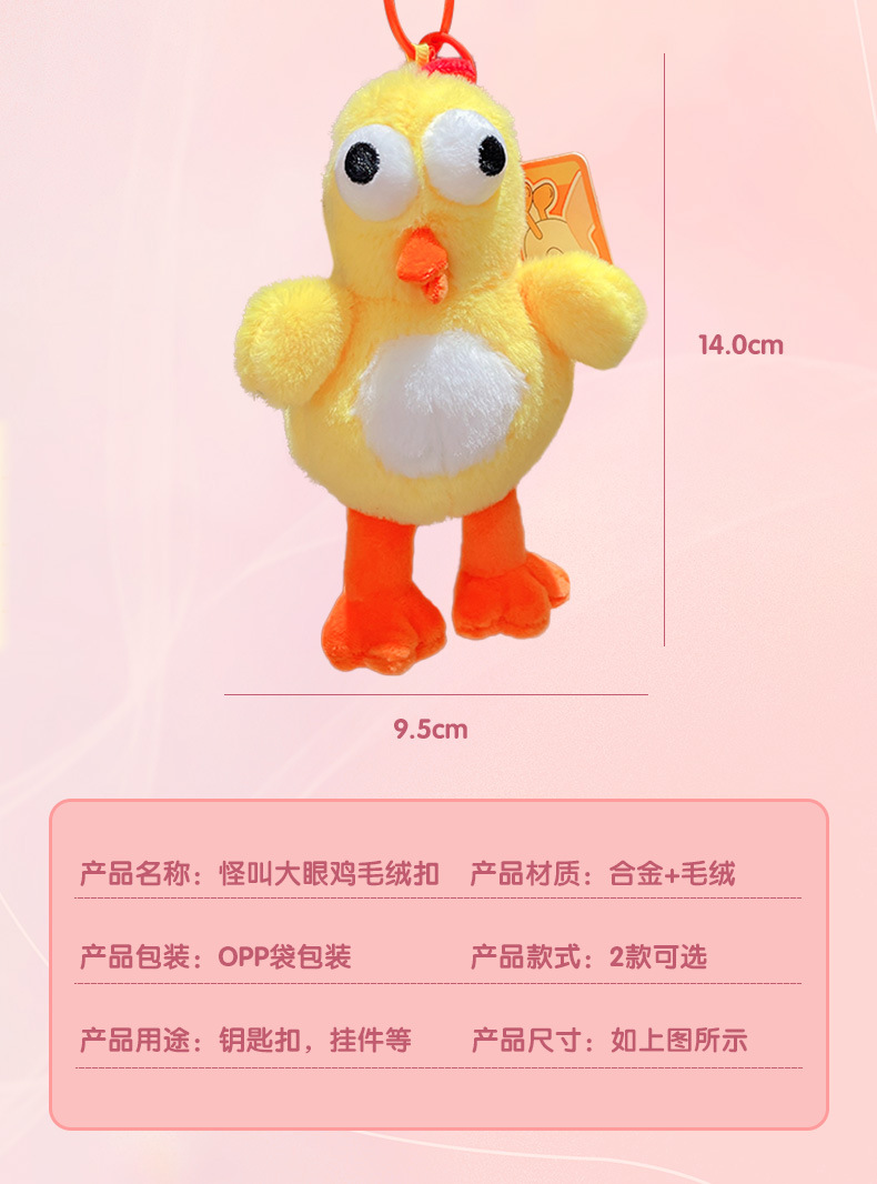 • 이상한 큰 눈 치킨 봉제 버클-노란색