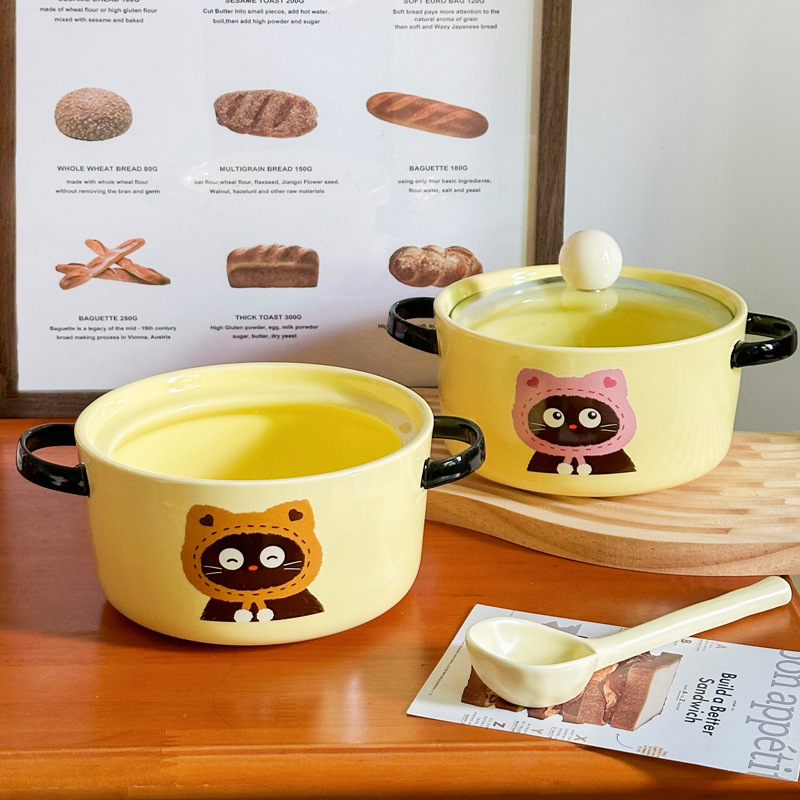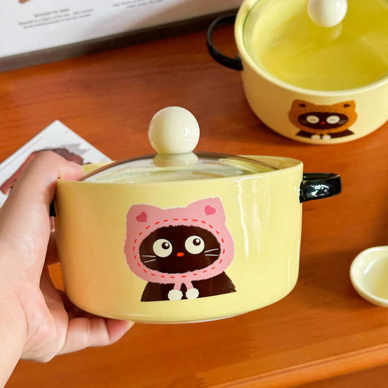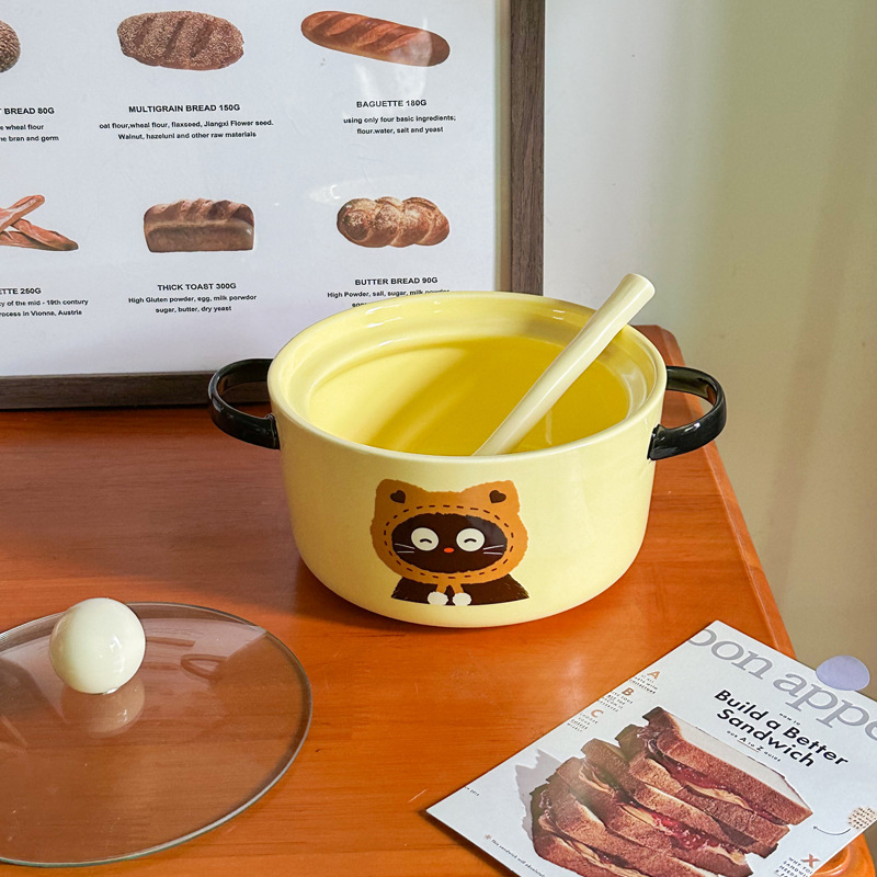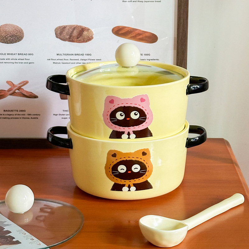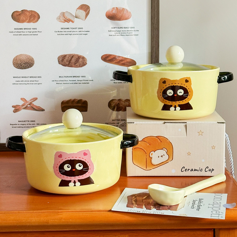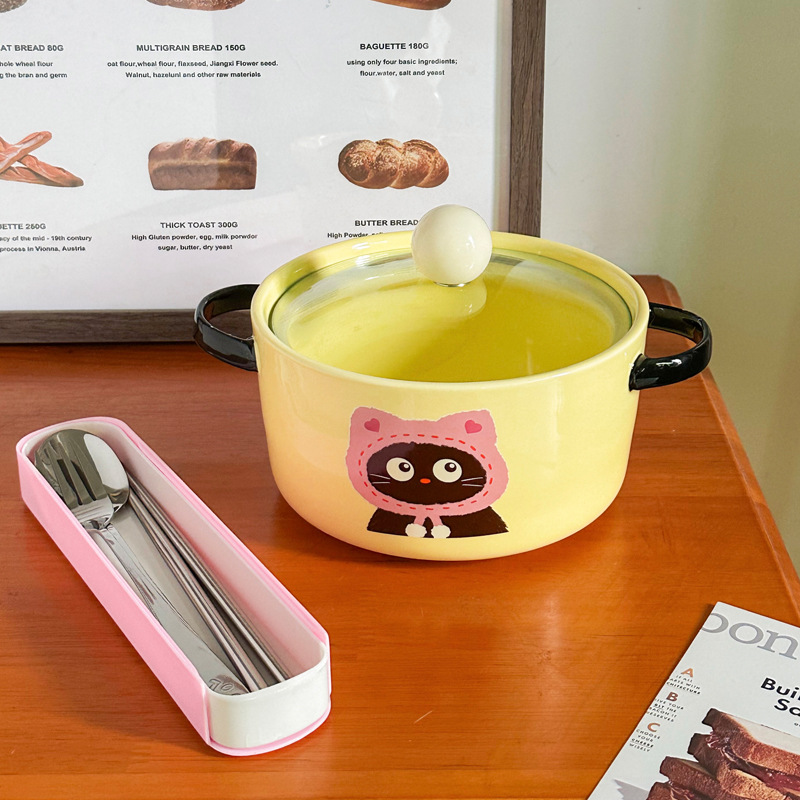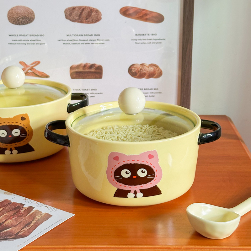 • 노란 고양이-국수 그릇 (뚜껑 포함) 독점 숟가락