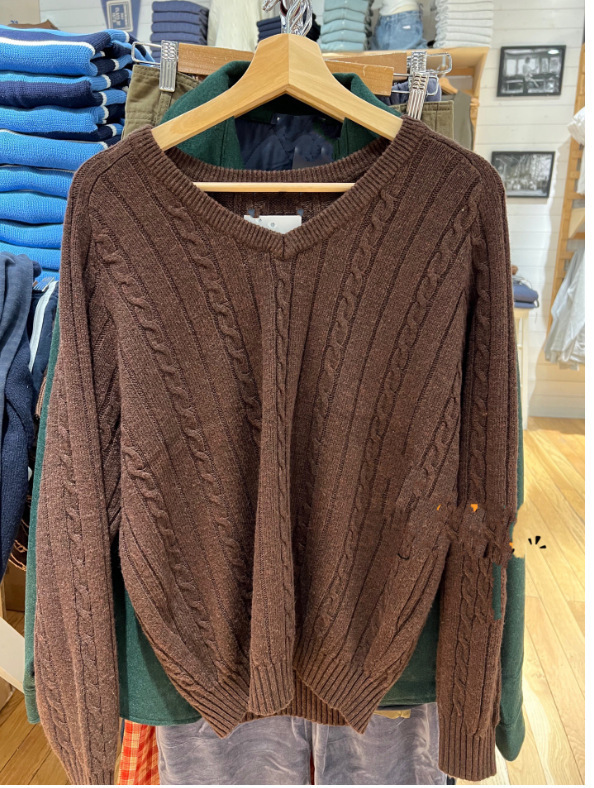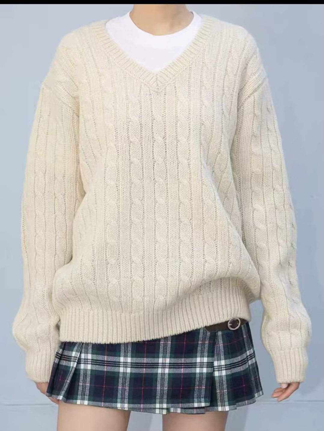 BM 스타일 미국 스타일 레트로 V-넥 트위스트 그레이 니트 셔츠 Bm 스타일 느슨한 풀오버 스웨터 코트스토어 가기
