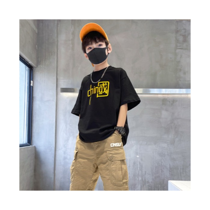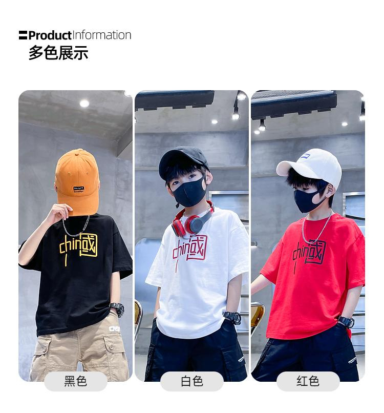100% 순면 뒷가방 칼라 소년 순면 중형 및 대형 아동복 여름 티셔츠 새로운 반소매 어린이 반소매 한국 스타일스토어 가기