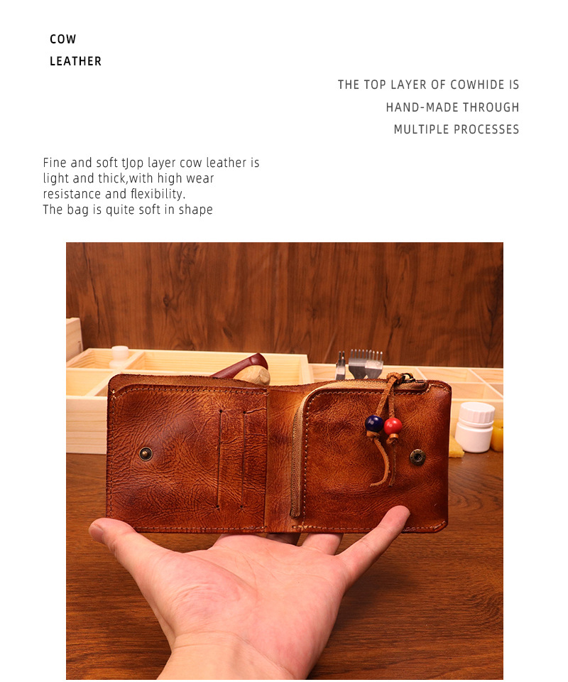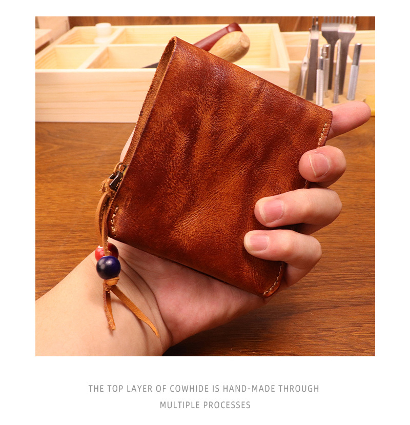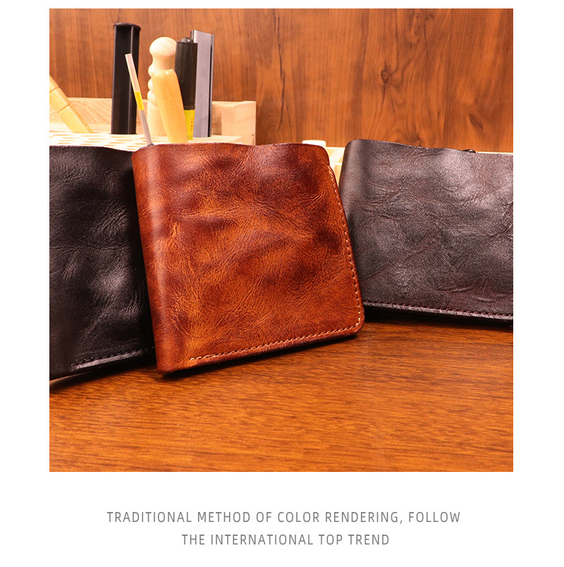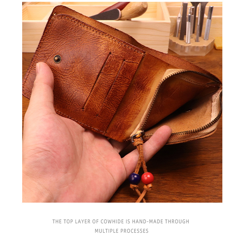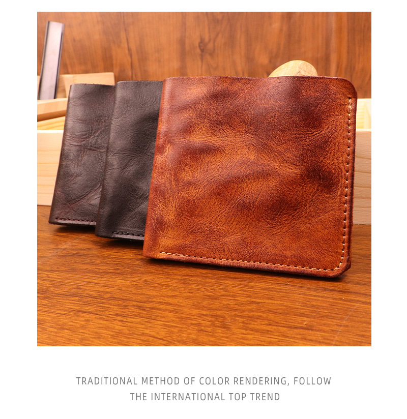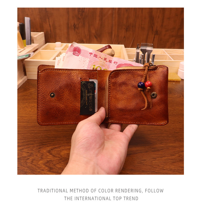 2024 새로운 도착 수제 야채 선탠 가죽 지갑 남성용 빈티지 오래 된 은행권 지갑 카드 홀더 동전 가방