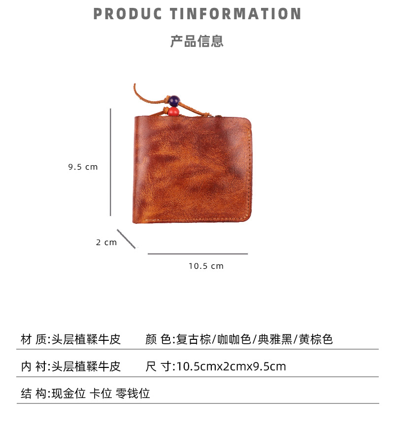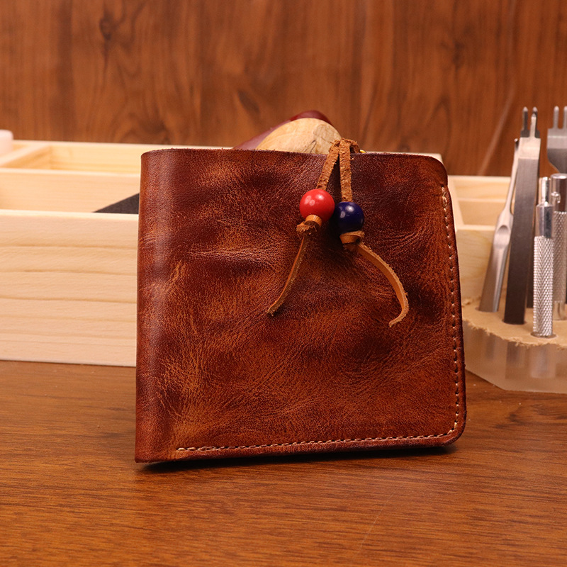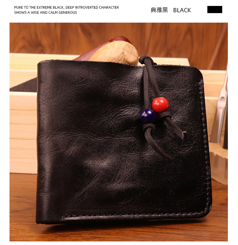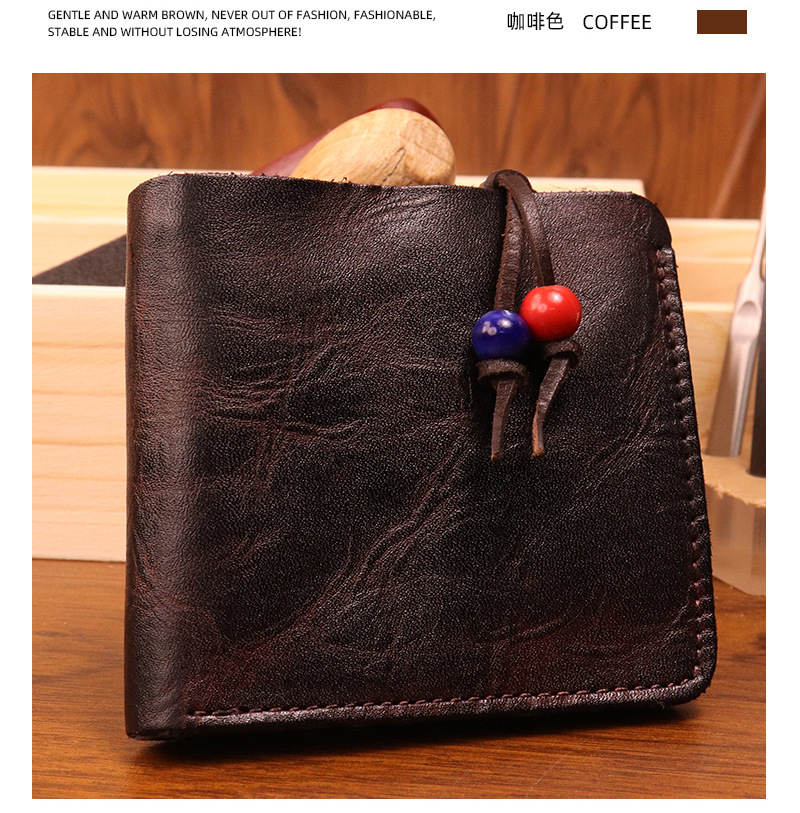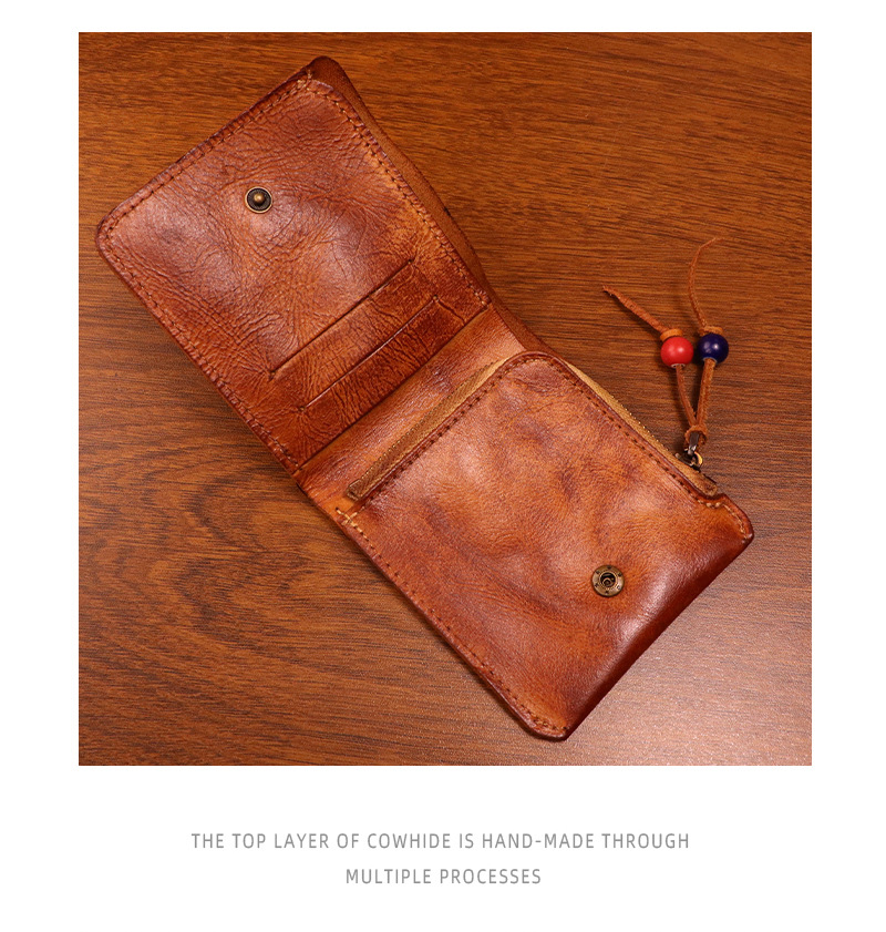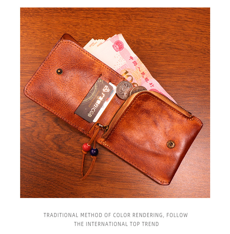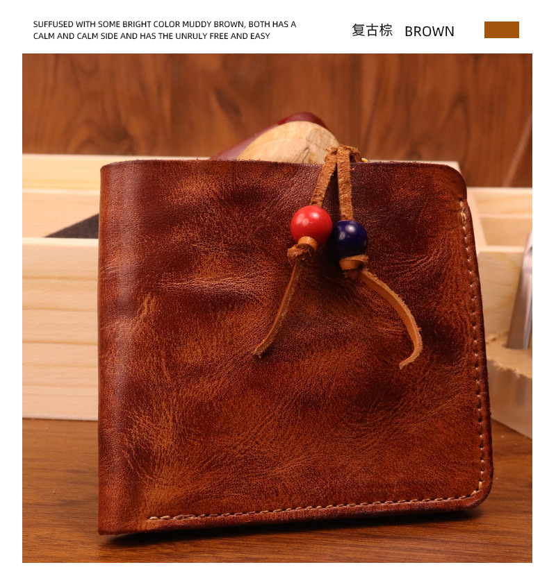 2024 새로운 도착 수제 야채 선탠 가죽 지갑 남성용 빈티지 오래 된 은행권 지갑 카드 홀더 동전 가방