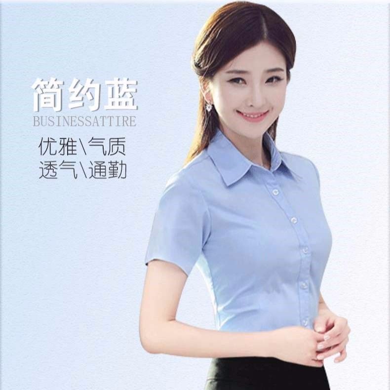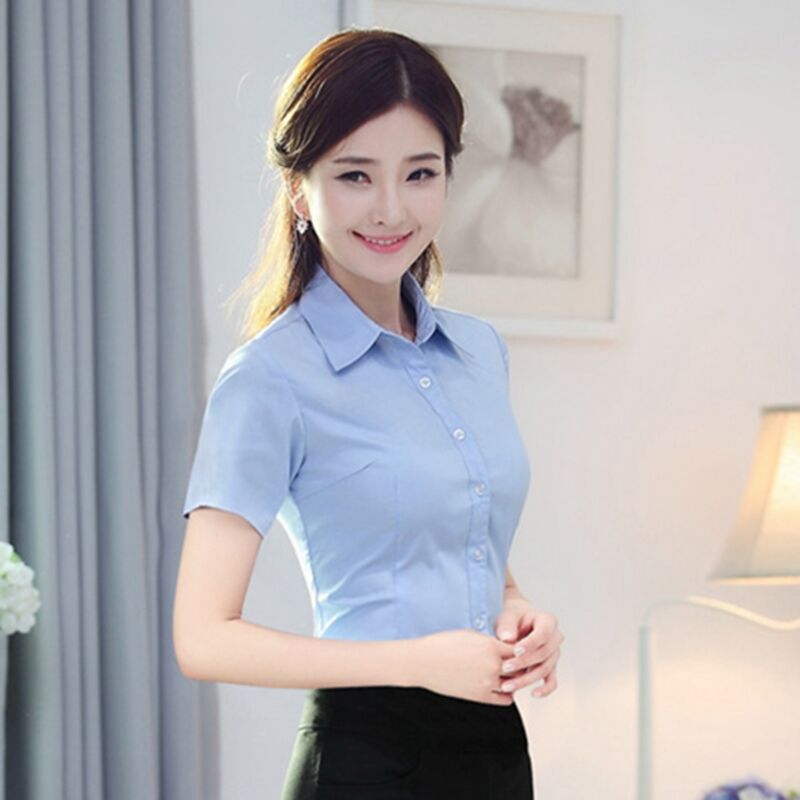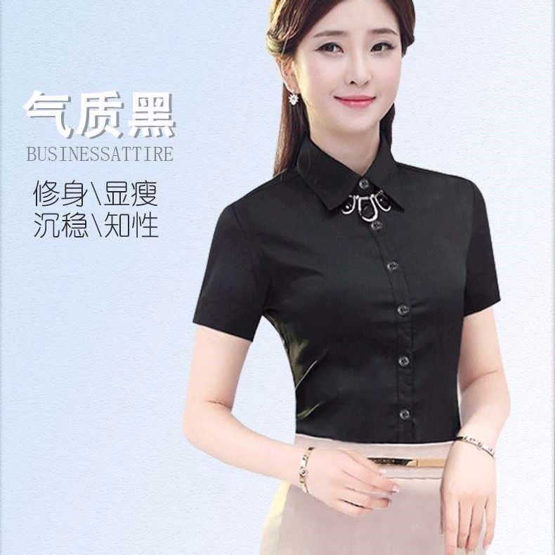 여름 화이트 셔츠 반팔 여성 의류 전문 작업 원피스 느슨한 툴링 셔츠 한팬 플러스 사이즈 OL 인터뷰 셔츠스토어 가기
