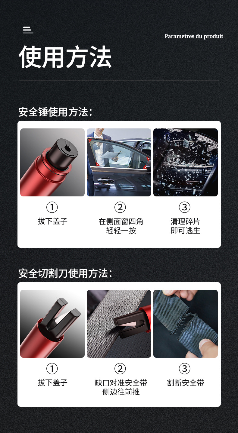 창의적인 선물 자동차 비상 창문 파괴 도구, 안전벨트를 즉시 절단하는 다기능 미니 합금 탈출 안전망치