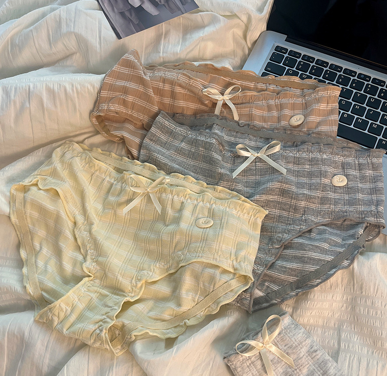 7A Bacteriostic Crotch Maillard Color Girls Plaid Bow 속옷 통기성 여성 브리프스토어 가기