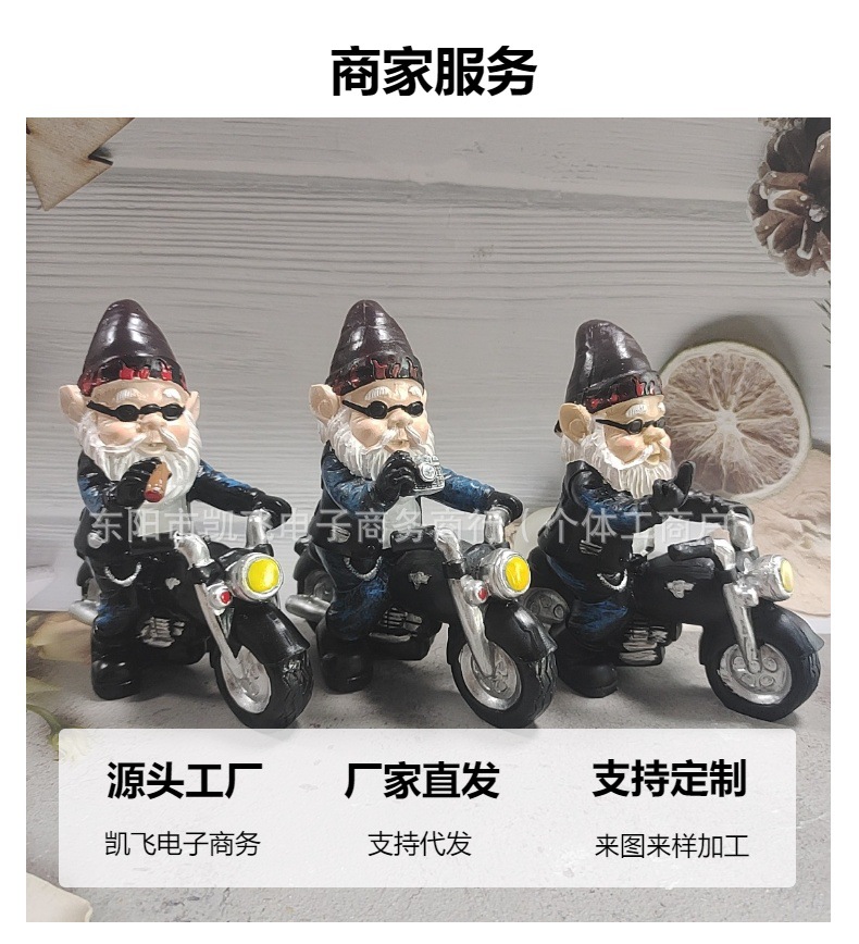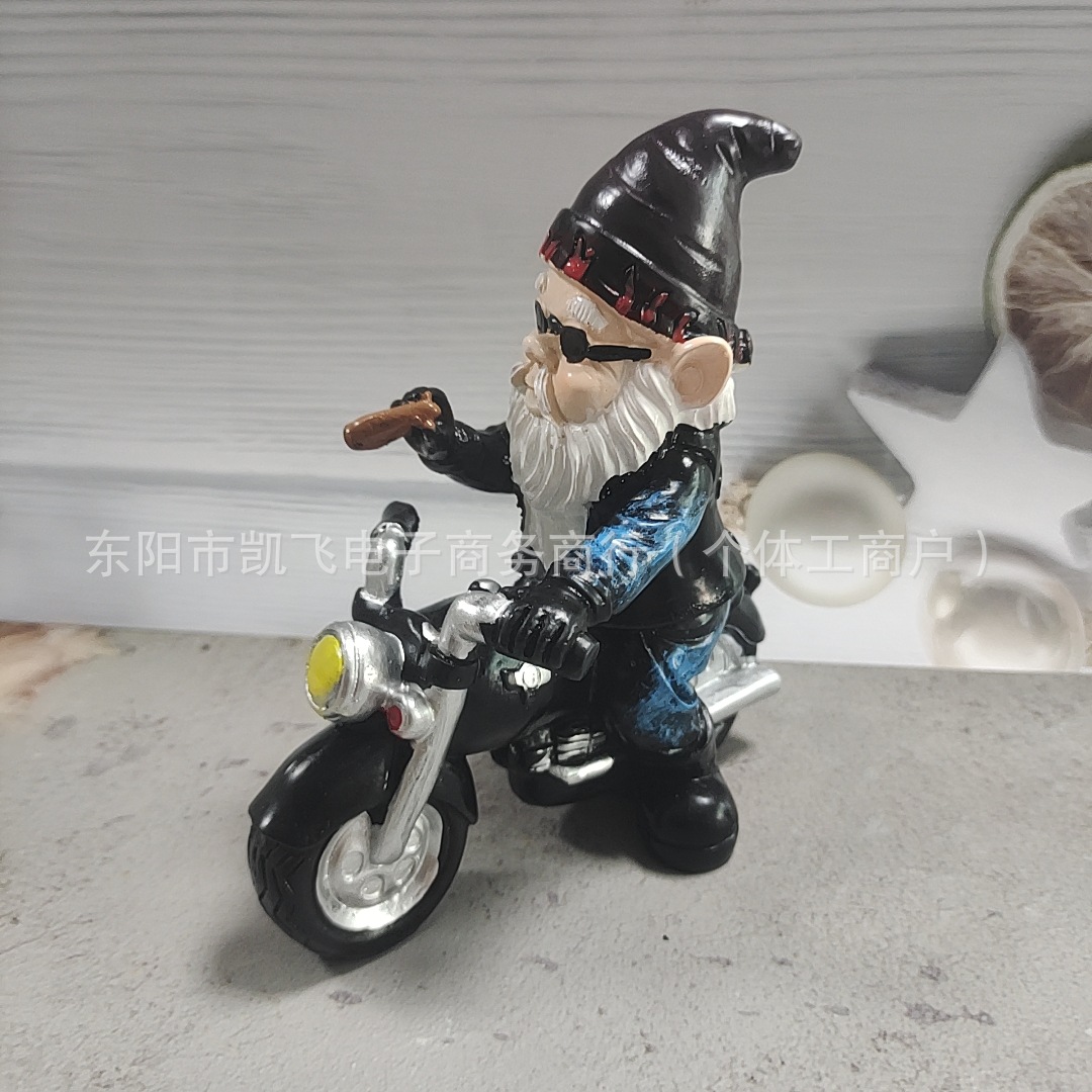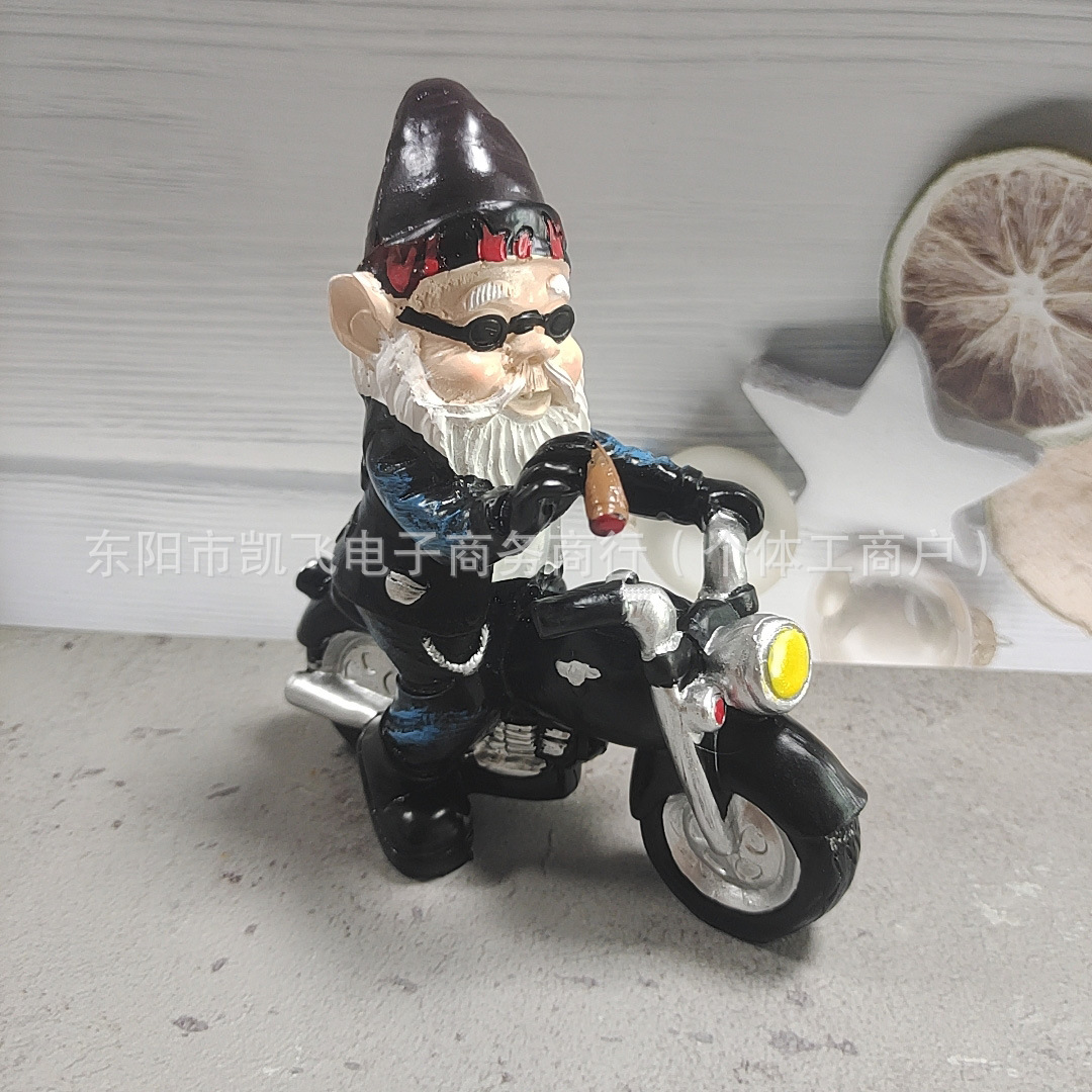 국경 간 새로운 수지 난쟁이 오토바이 노인 안뜰 장식 홈 장식품 동상 장식 공예스토어 가기