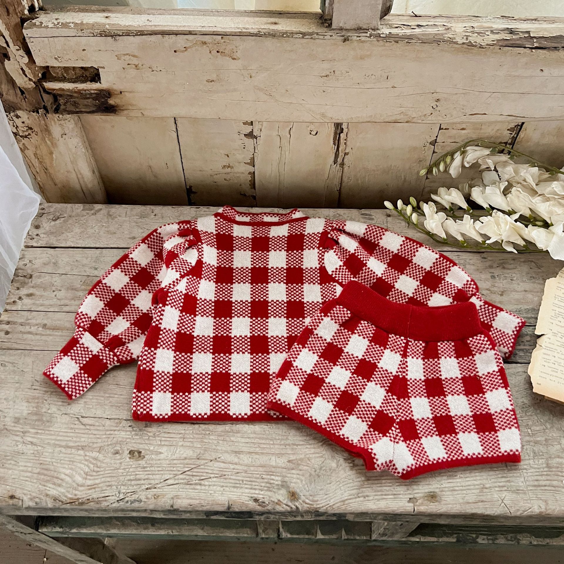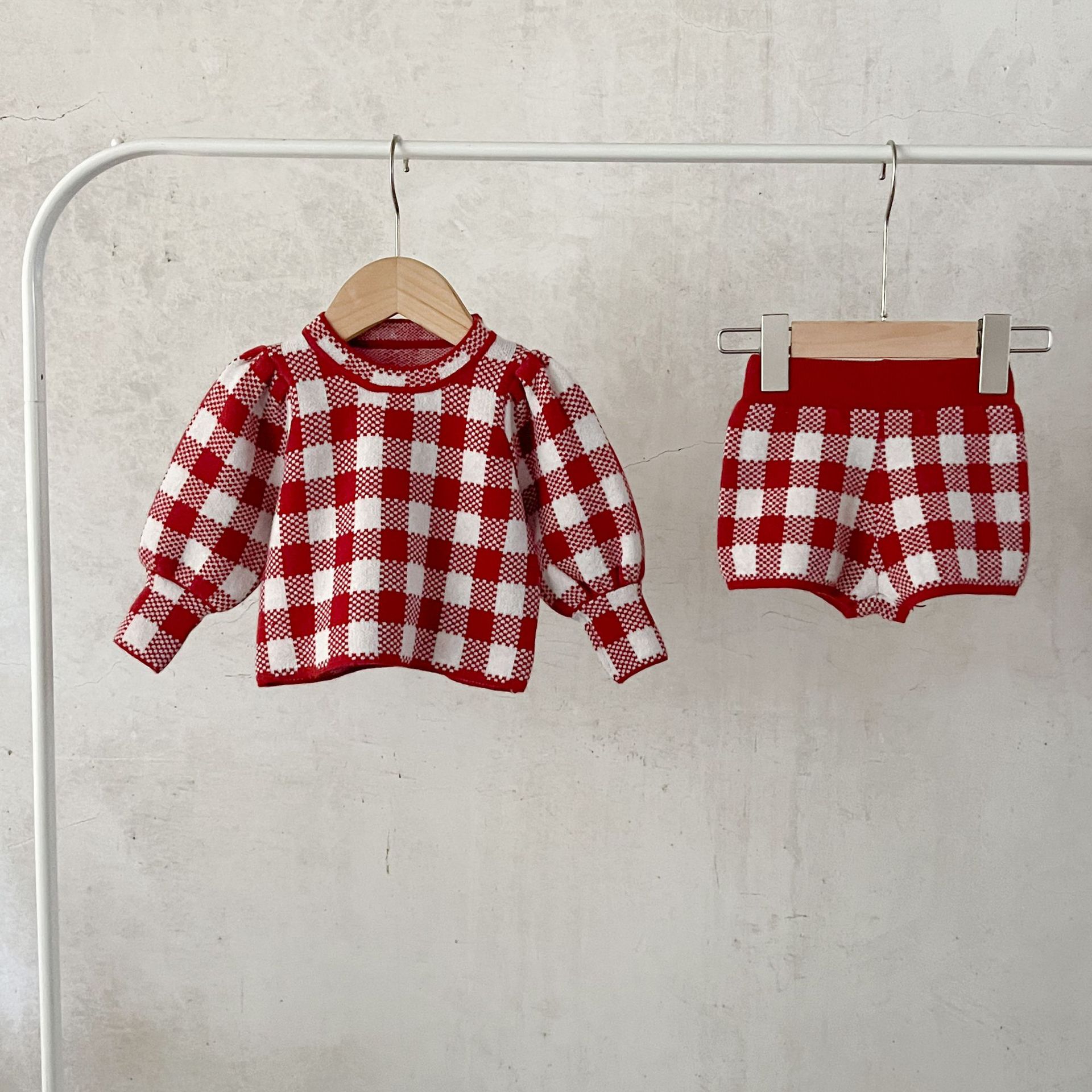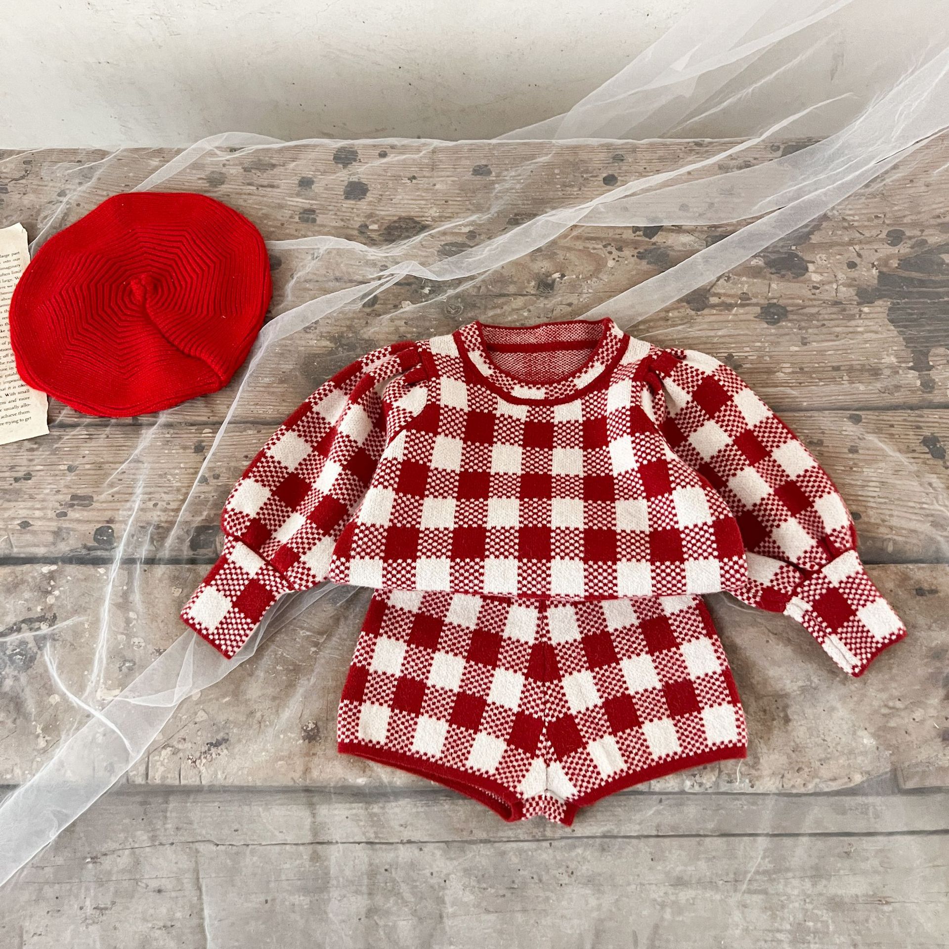 Ins Korean Style Girls Baby Cotton Plaid 스웨터 세트 신생아 소프트 긴소매 탑 반바지 투피스 세트스토어 가기