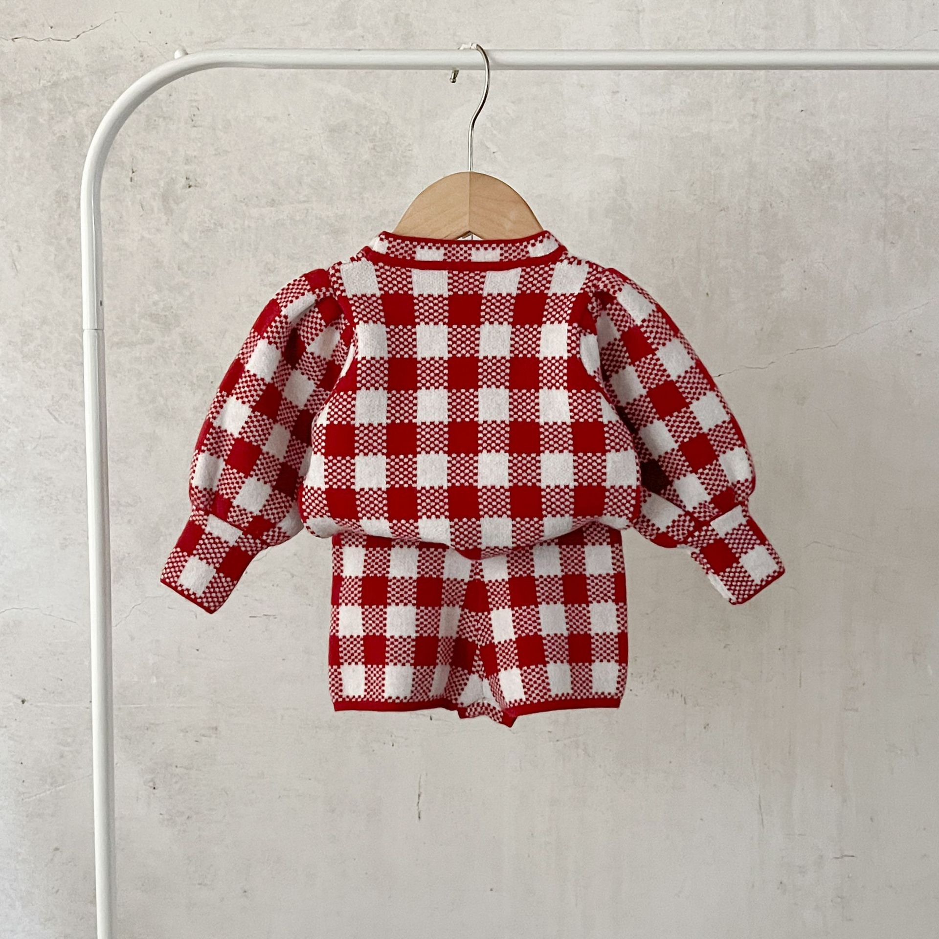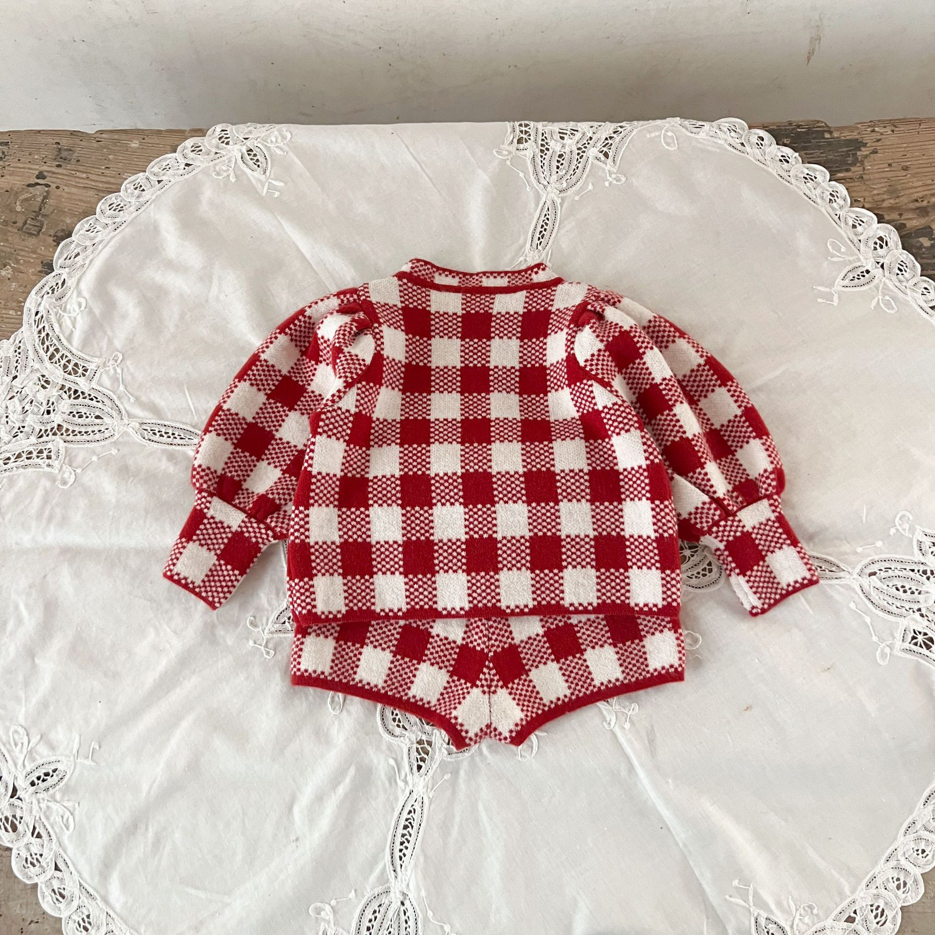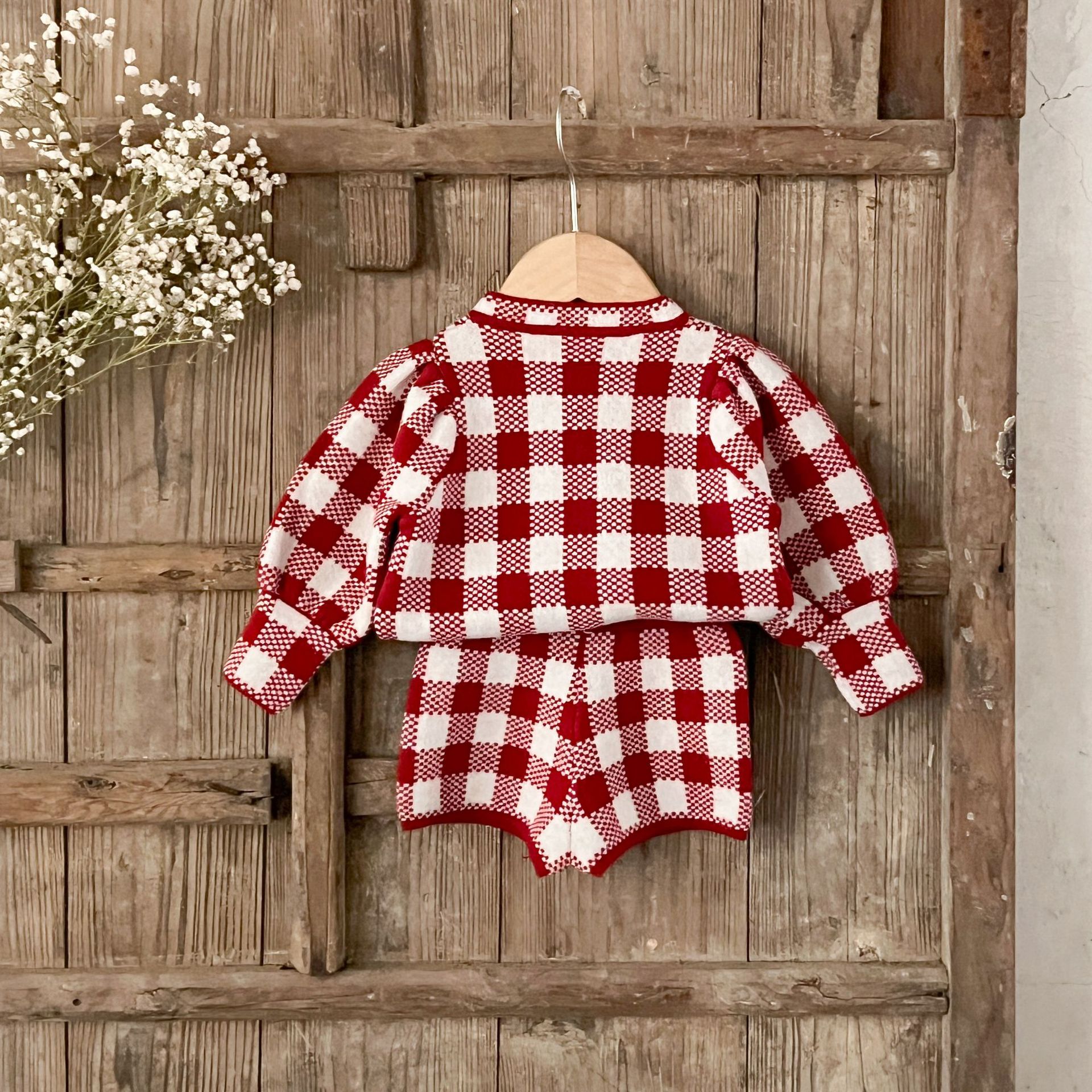 Ins Korean Style Girls Baby Cotton Plaid 스웨터 세트 신생아 소프트 긴소매 탑 반바지 투피스 세트스토어 가기