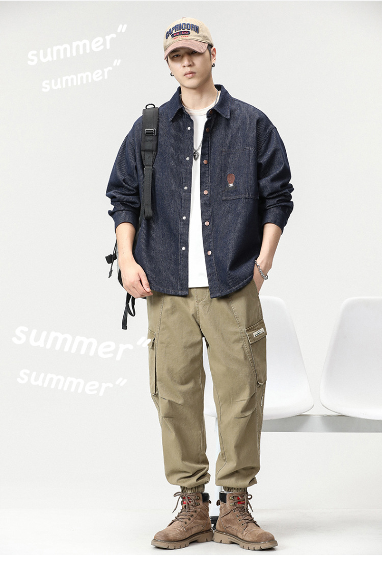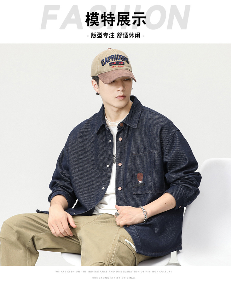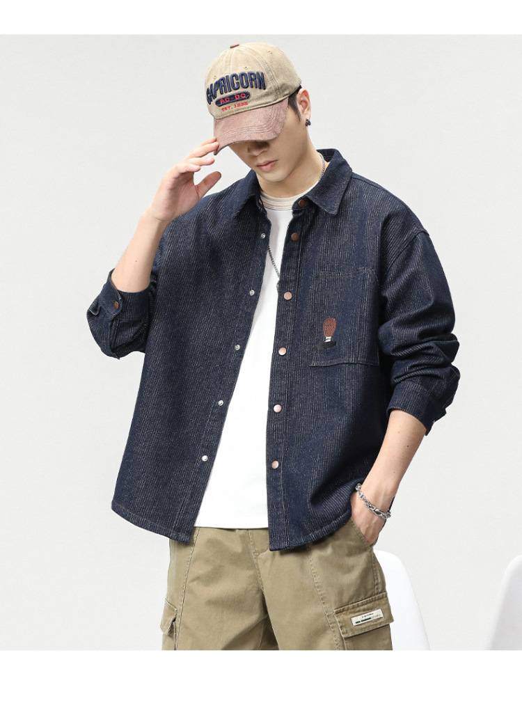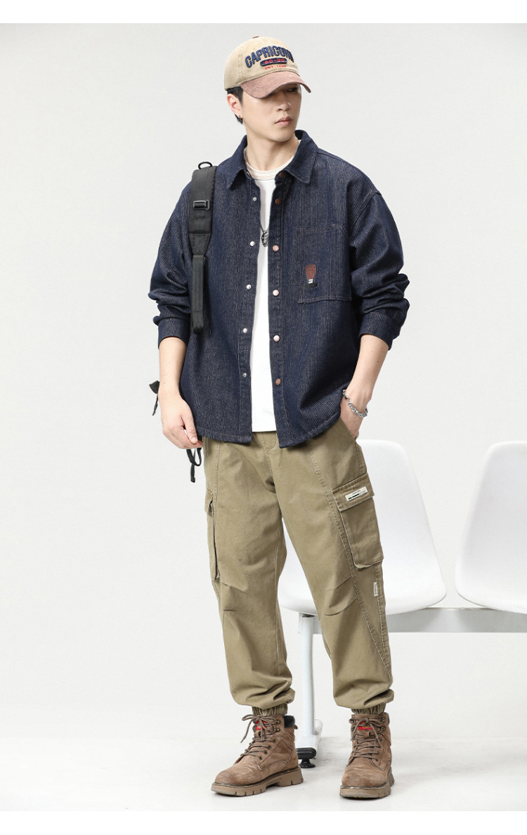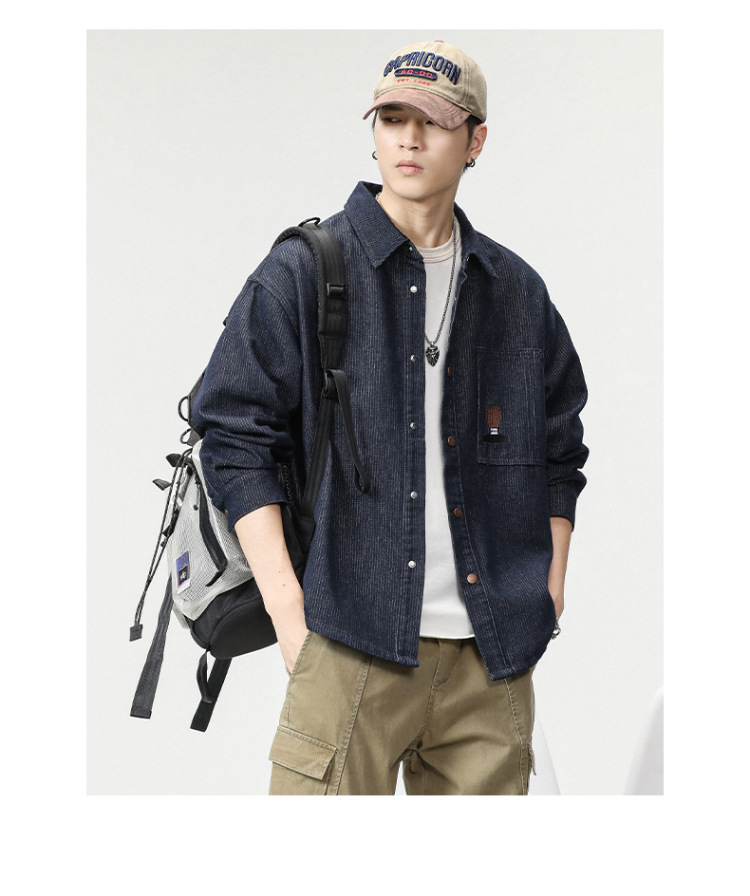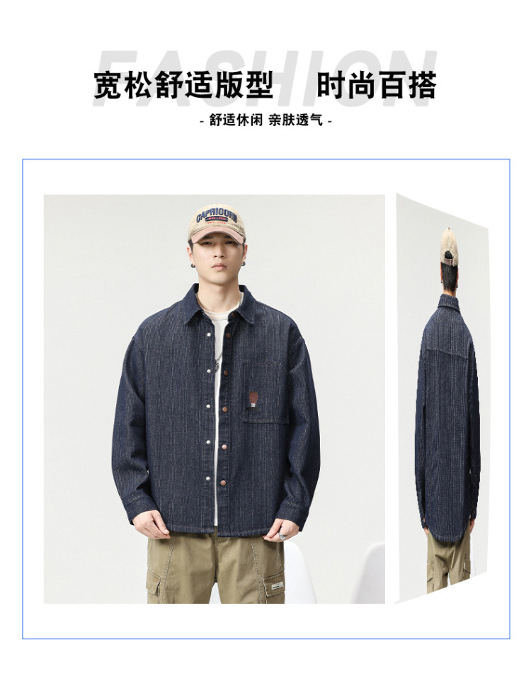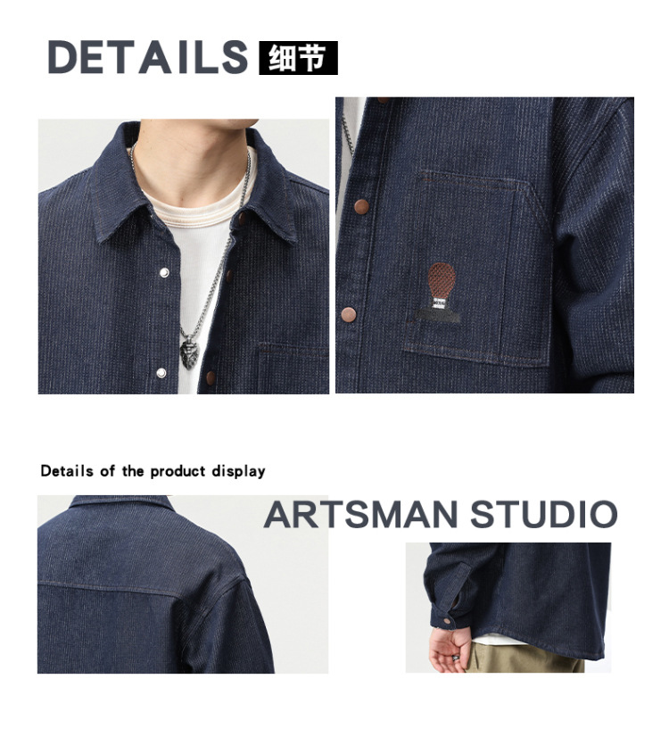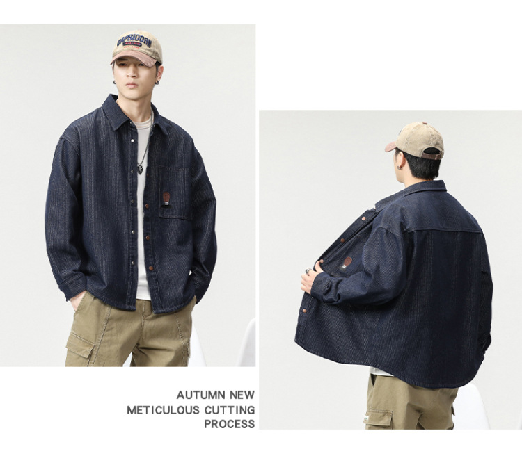 하이 엔드 패션 브랜드 일본 복고풍 데님 셔츠 남성 긴 소매 2024 봄 새로운 파란색 작업 셔츠 코트스토어 가기