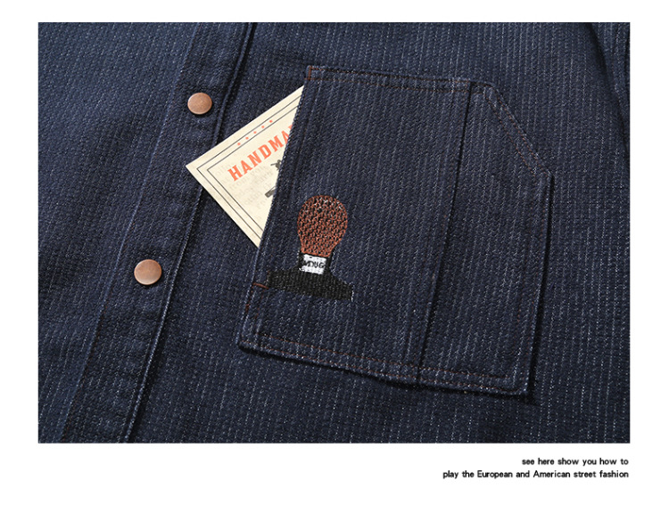 하이 엔드 패션 브랜드 일본 복고풍 데님 셔츠 남성 긴 소매 2024 봄 새로운 파란색 작업 셔츠 코트