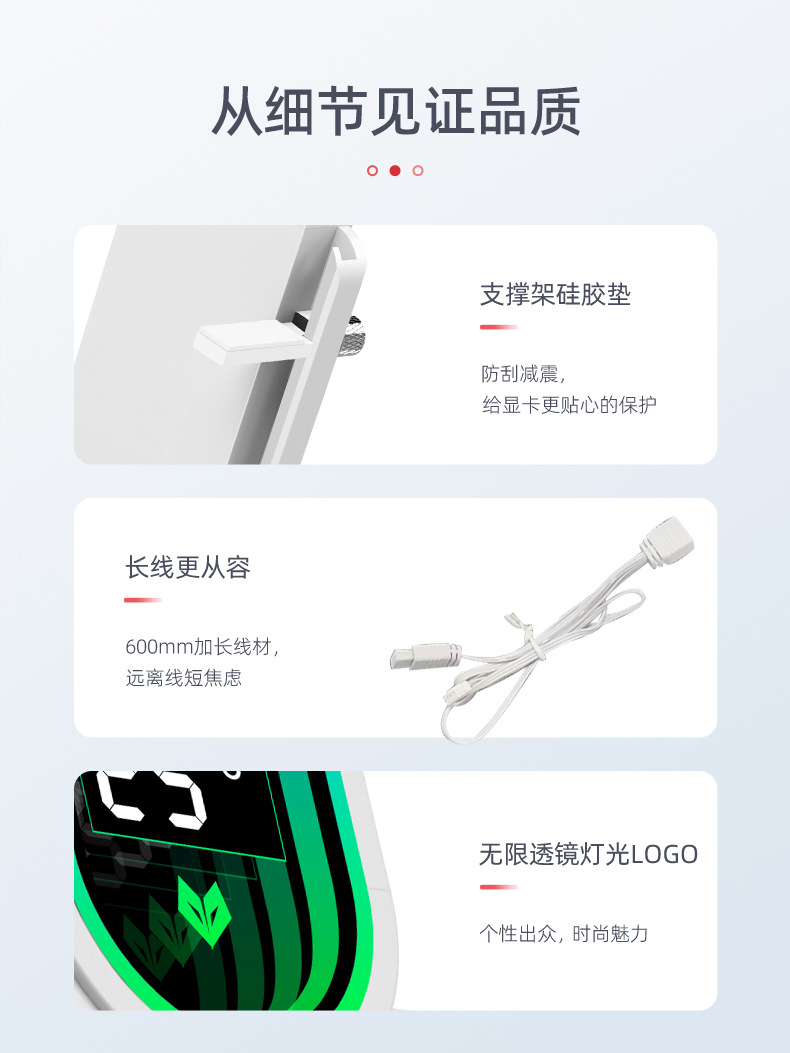 COOLMOON酷月GH3系列显卡支架新品上市,整机采用“全屏无限透镜”ARGB神光同步发光,Pro升级“温度显示”,实时读取机箱内部温度,机身材质为“全铝合金”,质感十足,“天地合”封装,质感满分!单箱40pcs,单箱尺寸:50.5*45.6*27.5cm,18kg/box,工厂出货,大量“现货供应”,欢迎咨询采用!