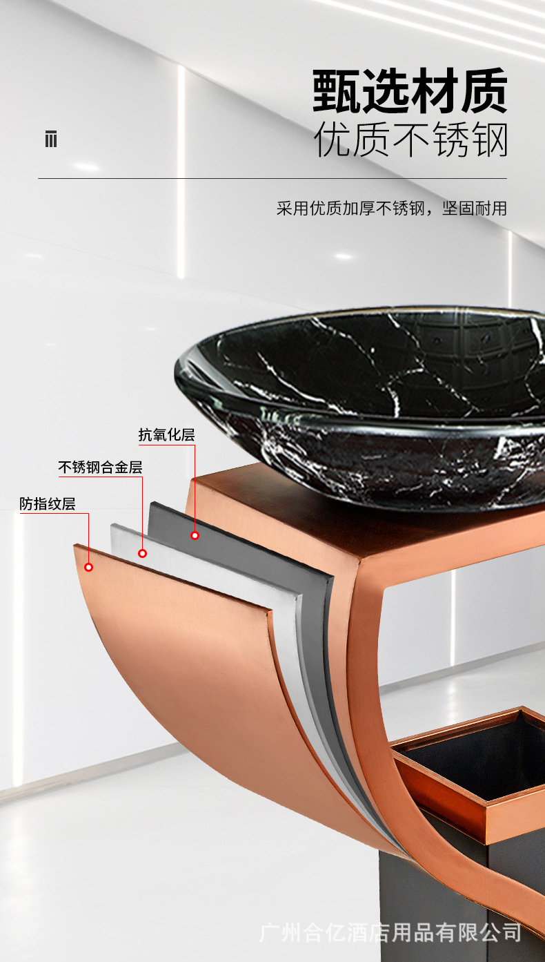 • 사각 튜브 로즈 골드와 로즈 골드 세면대