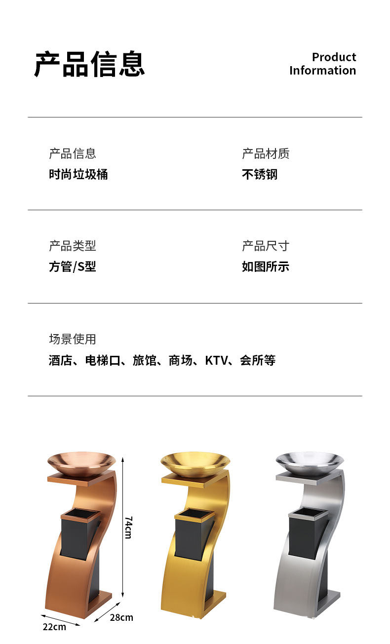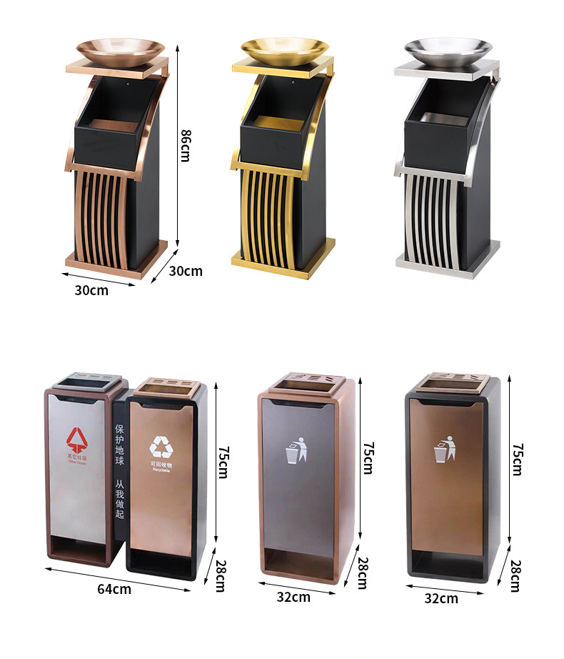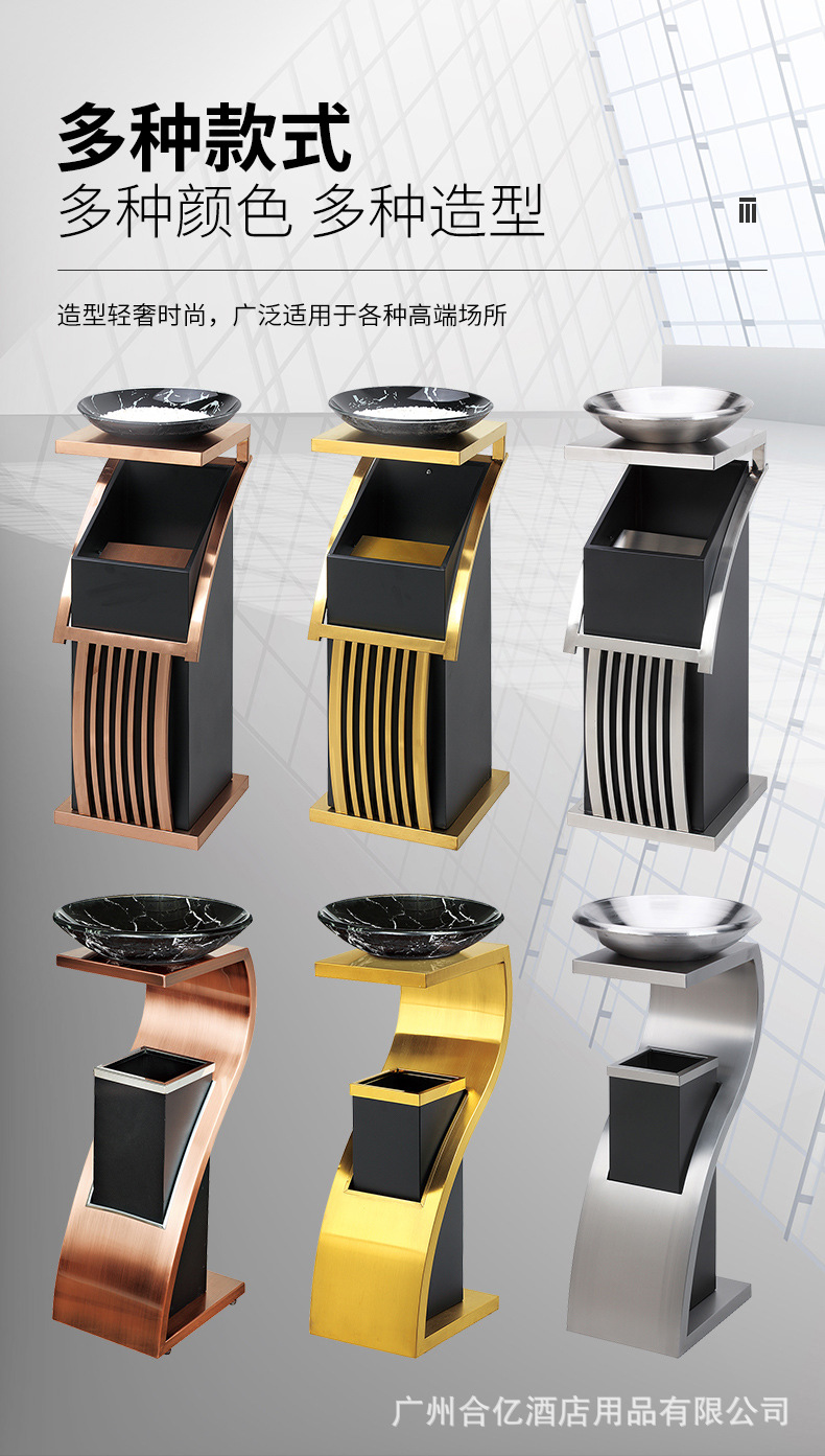 스테인레스 스틸 휴지통 호텔 로비 수직 엘리베이터 재떨이 하이 엔드 쇼핑몰 호텔 로비 야외 사용