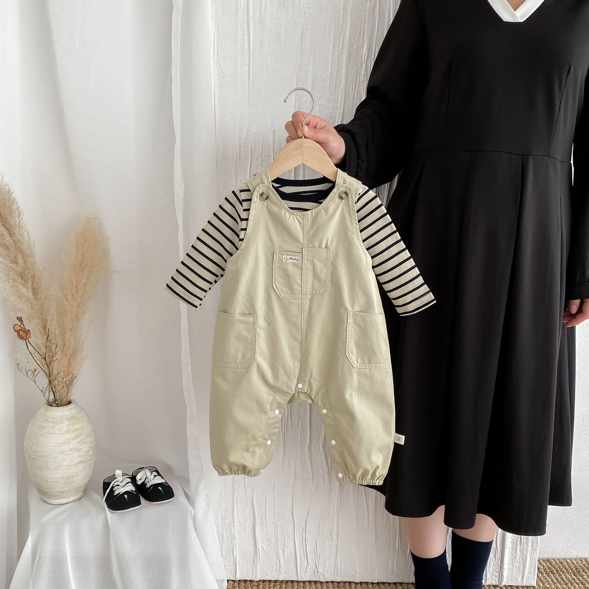 한국어 버전 2025 가을 신상 아기옷, 남녀 아기 작업복, 바지 정장, 점프수트, 투피스 슈트