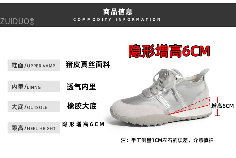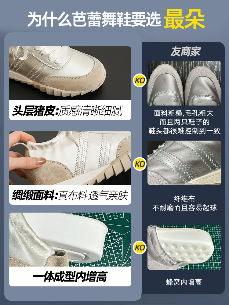 내부 높이 6cm 작은 가죽 통기성 발레 훈련 신발 바느질 레저 스포츠 화이트 신발 포레스트 검프 신발 여성스토어 가기
