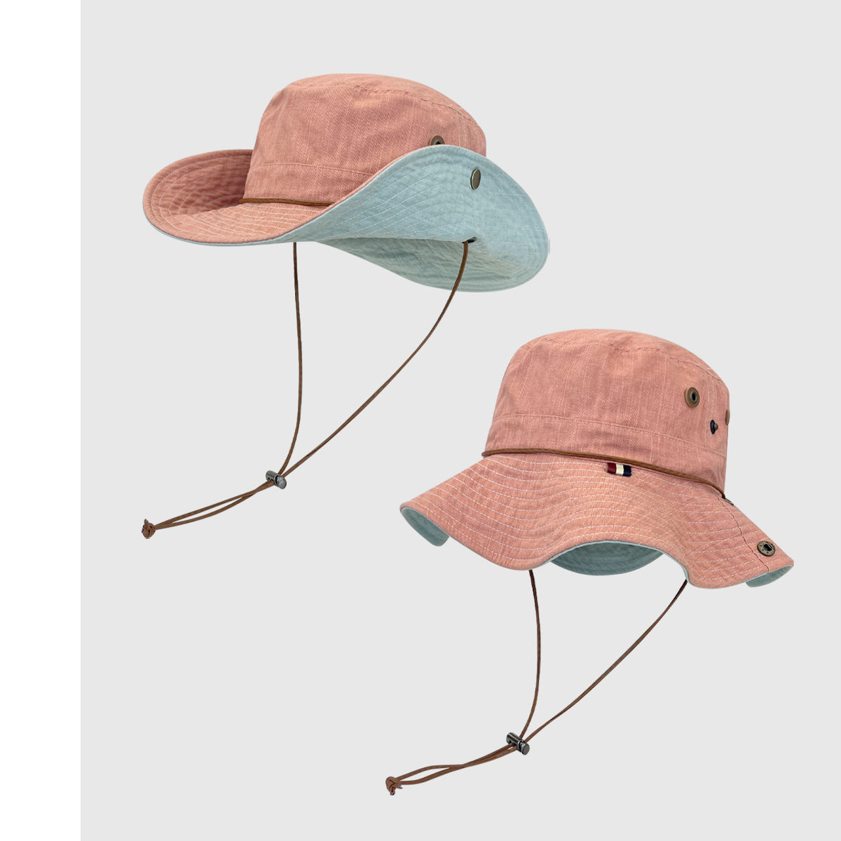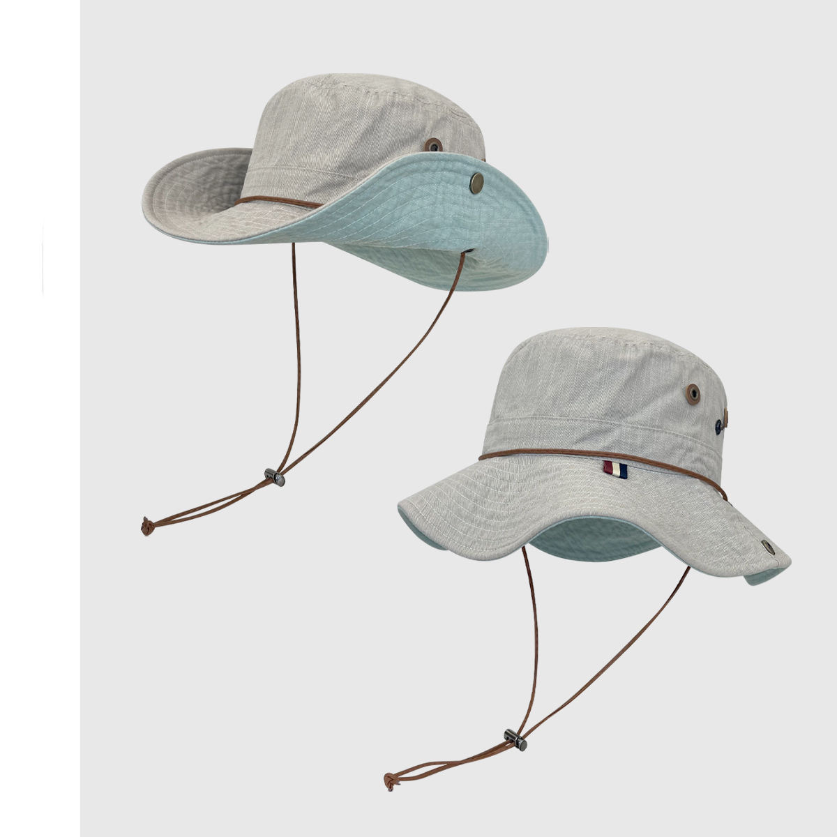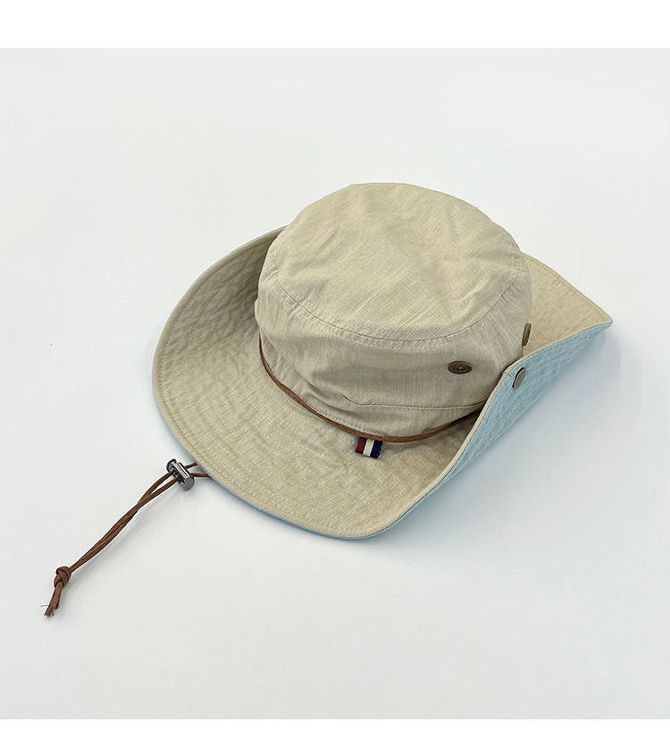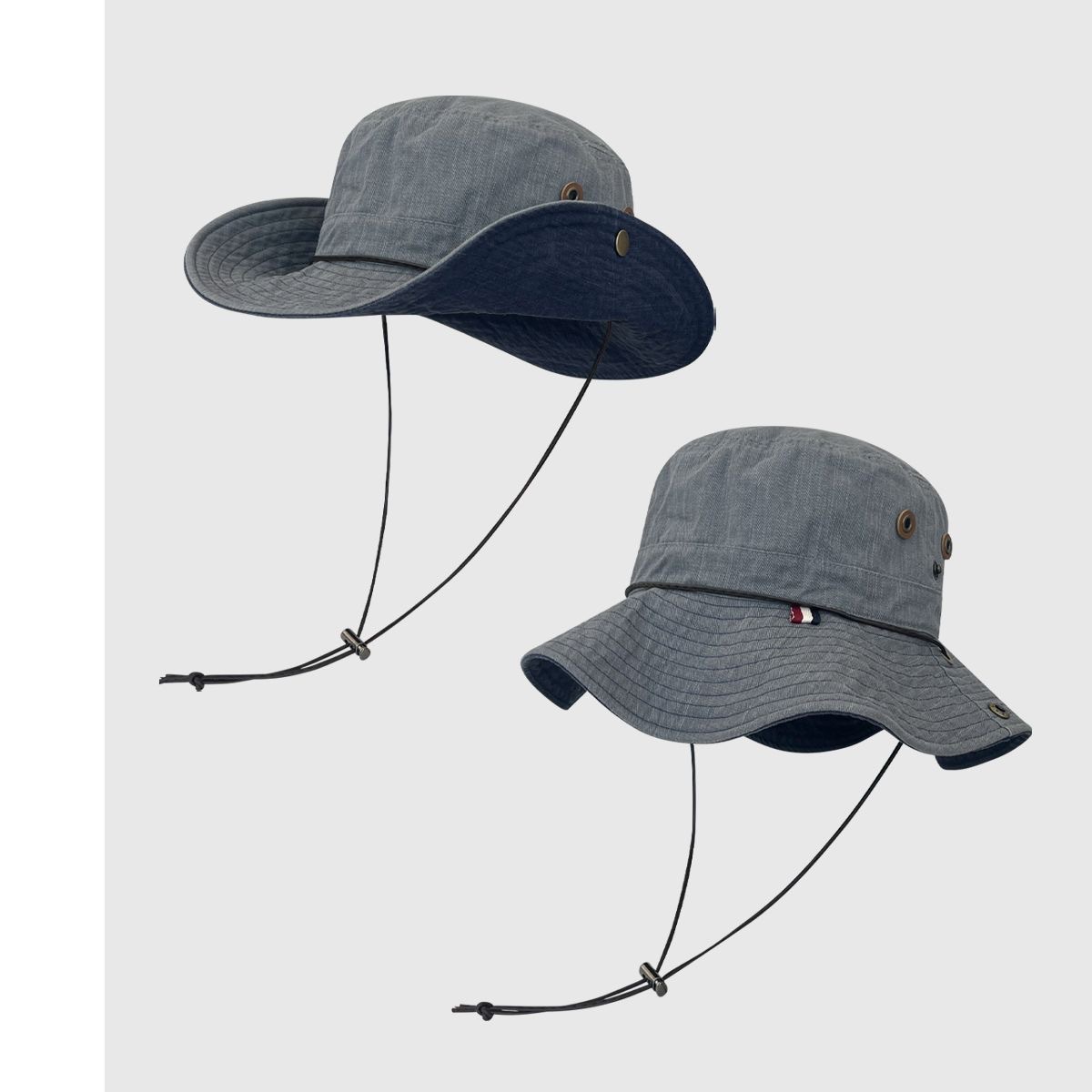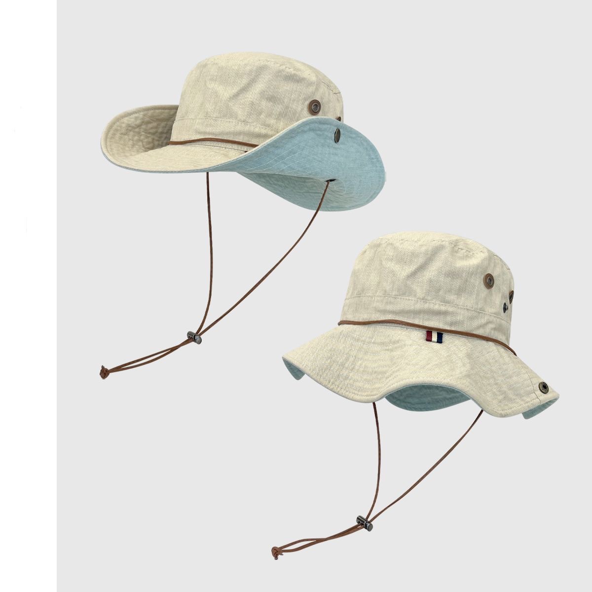 • 컬러블록 데님 버킷햇 - 라이트베이지