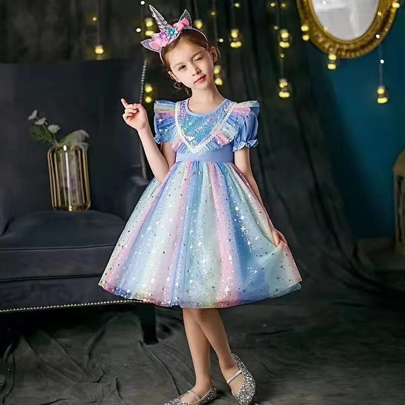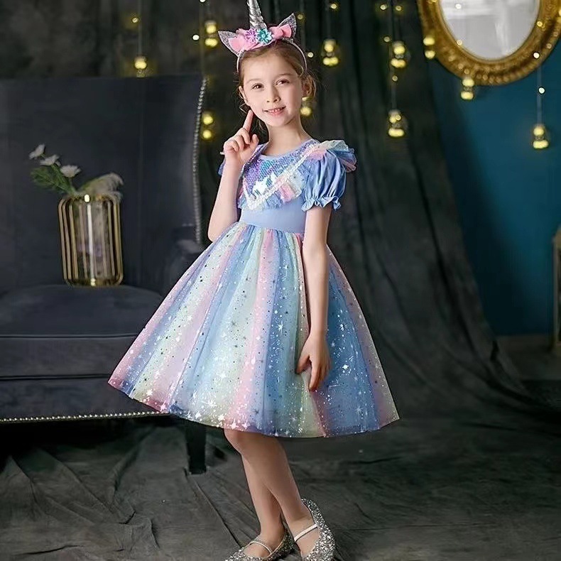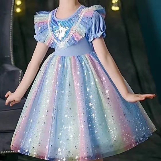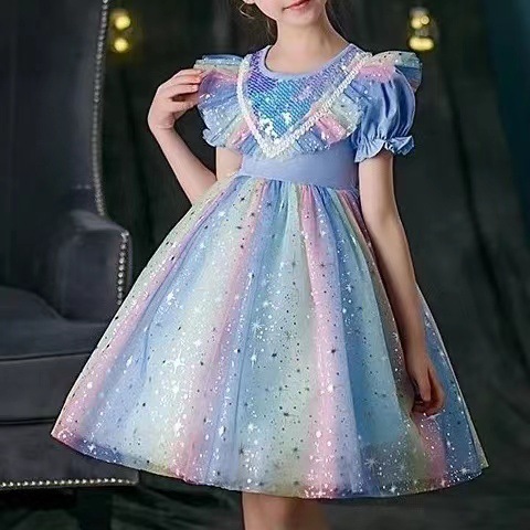 소녀의 새로운 봄과 가을 옷 무지개 원피스 어린이 치마 공주 엘사 퍼프 원사 치마