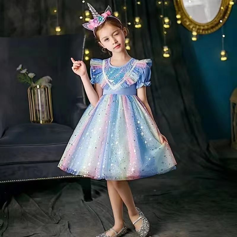 소녀의 새로운 봄과 가을 옷 무지개 원피스 어린이 치마 공주 엘사 퍼프 원사 치마스토어 가기