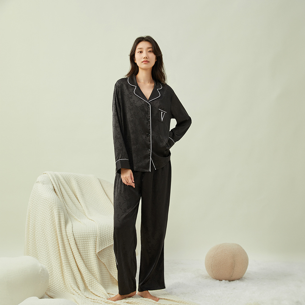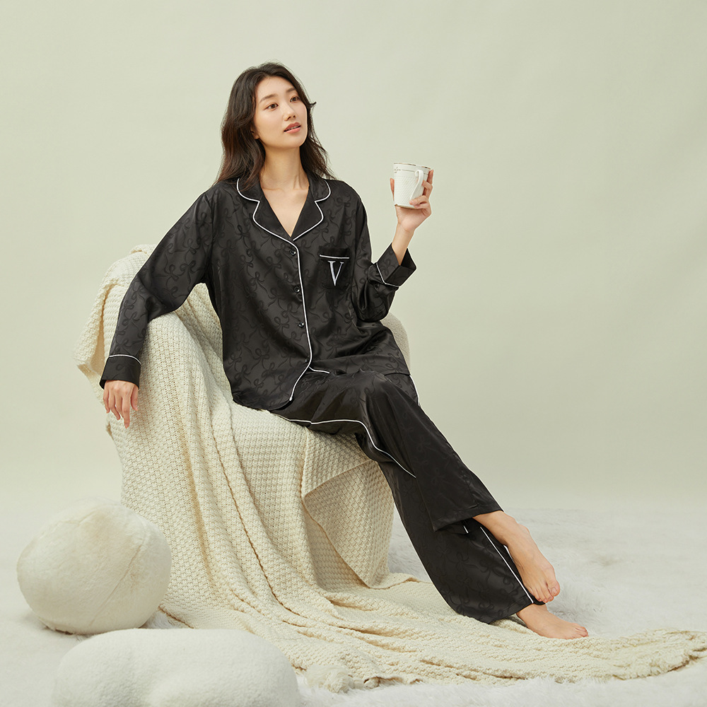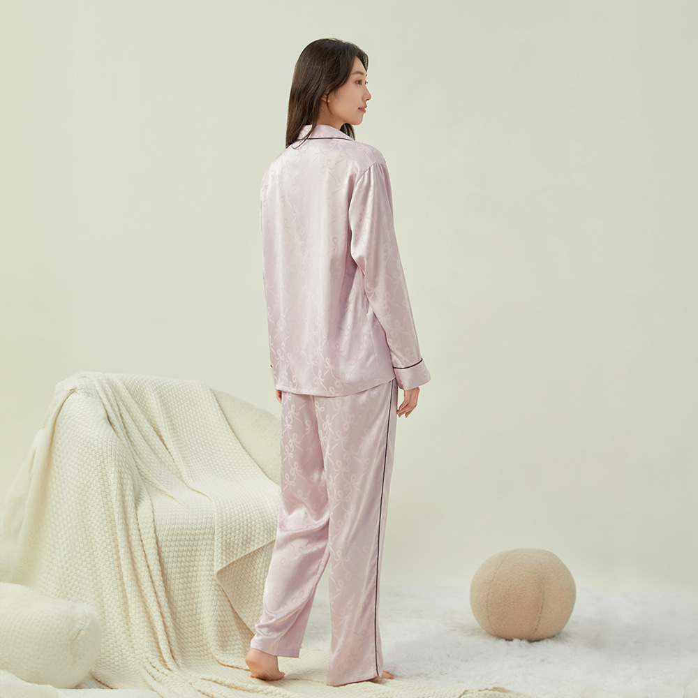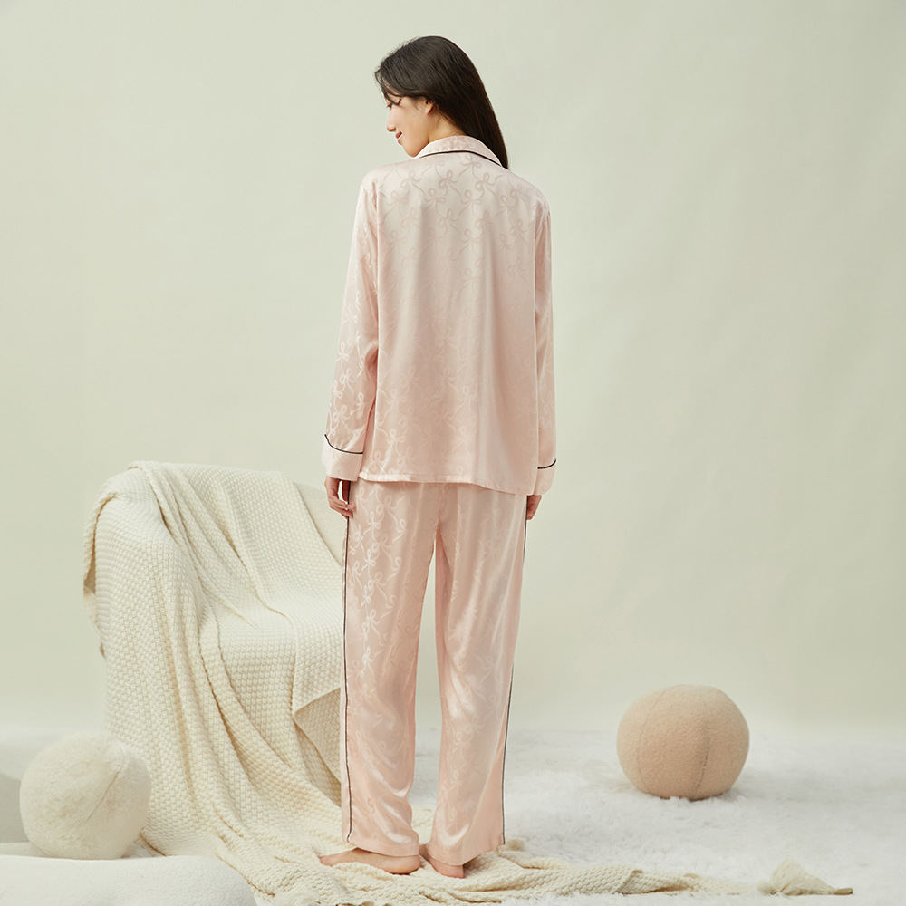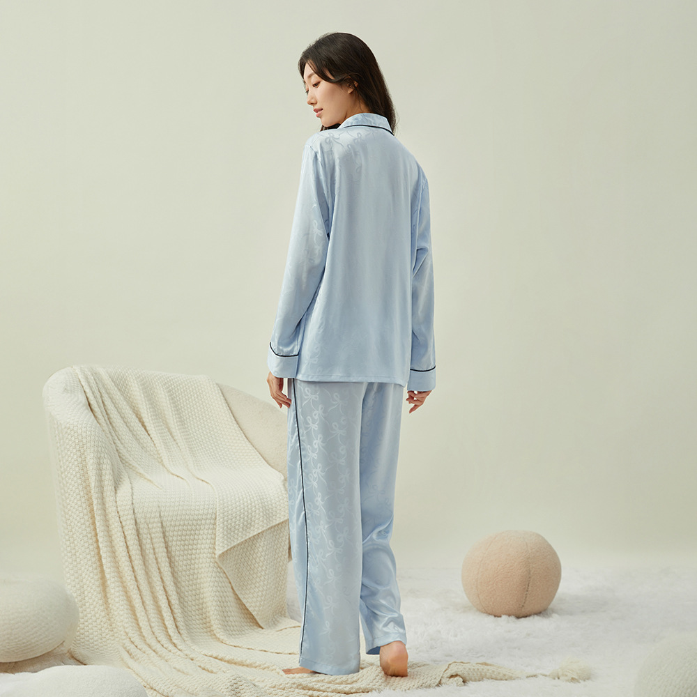 2024 비밀 같은 스타일 나비 스트랩 자카드 파자마 여성 Пижама 긴 소매 바지 세트 홈 옷