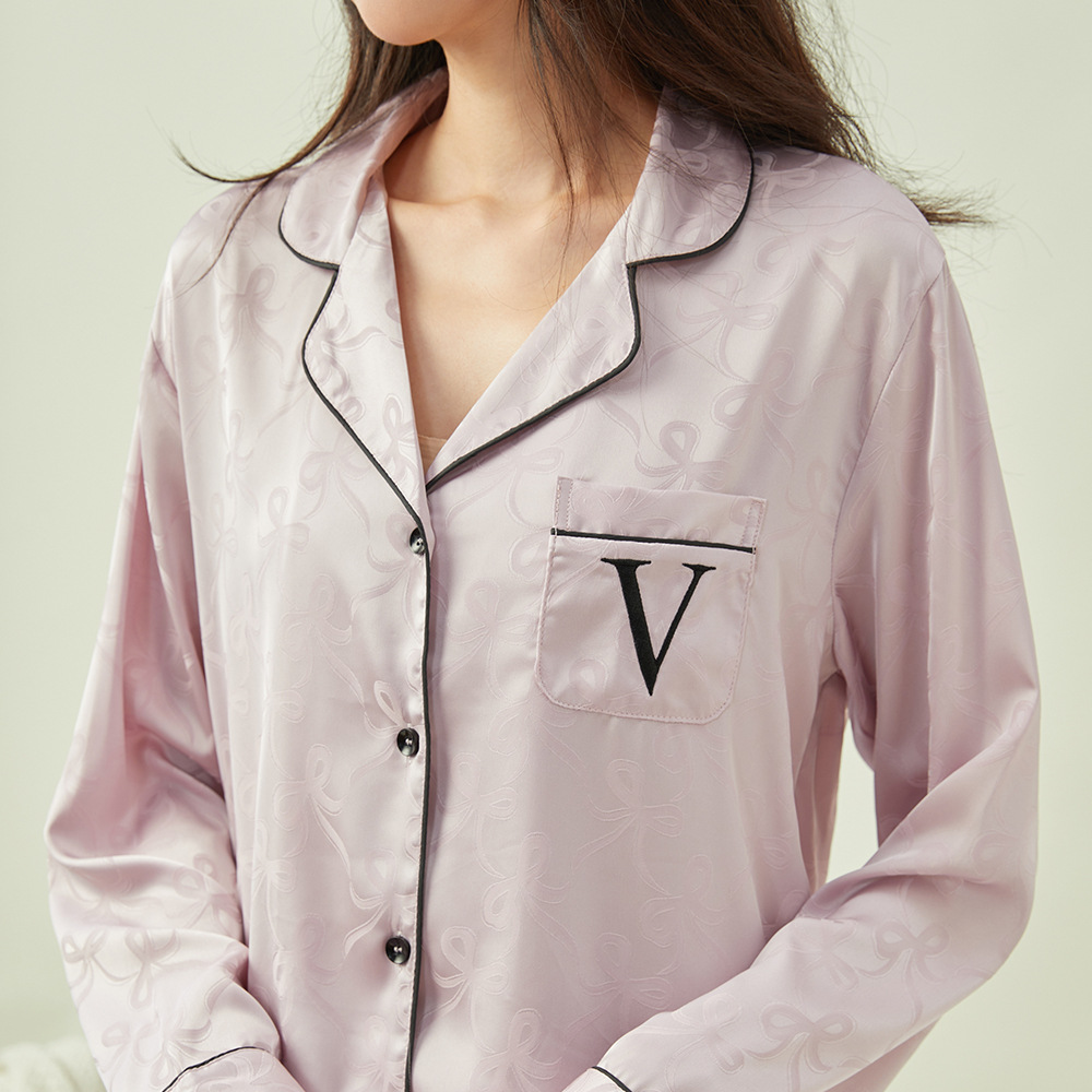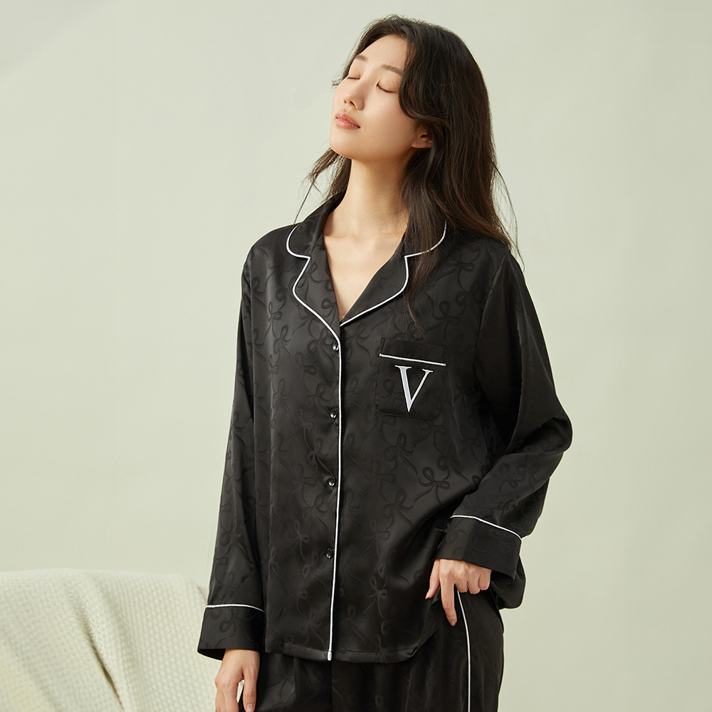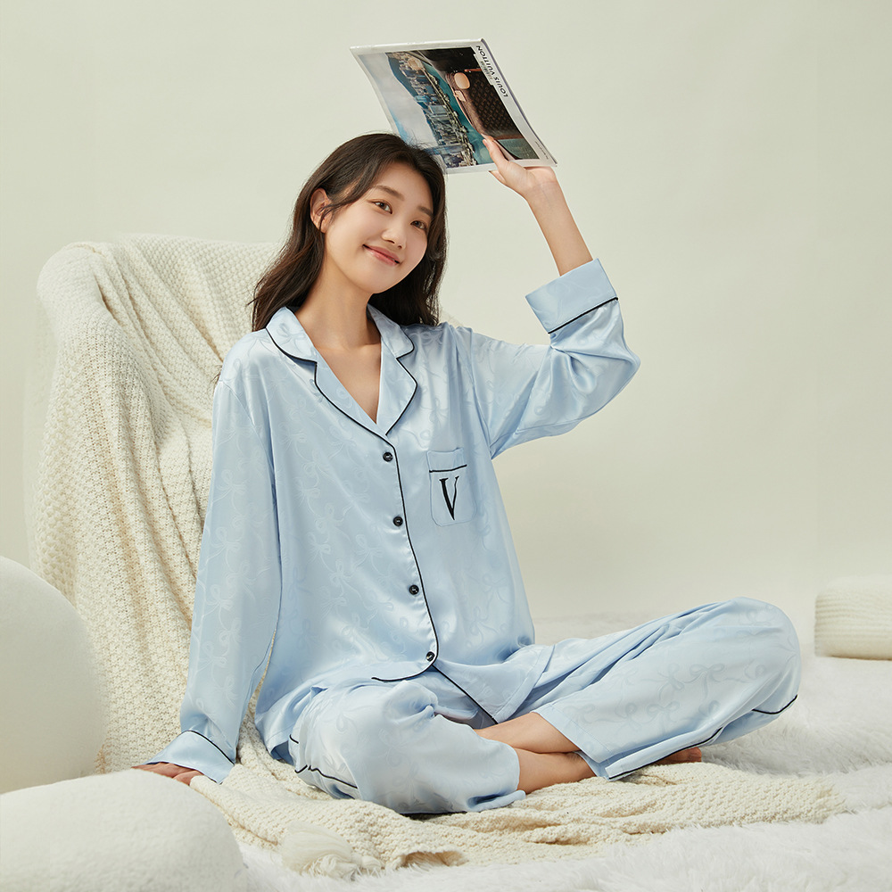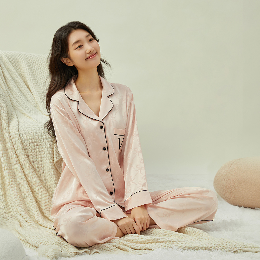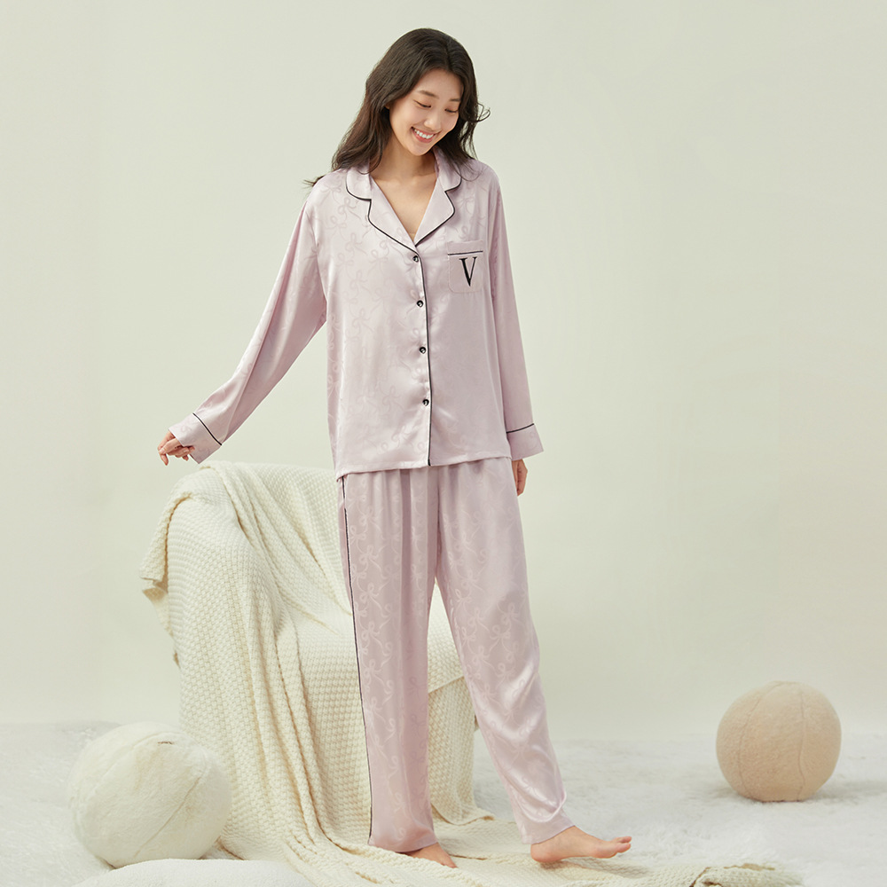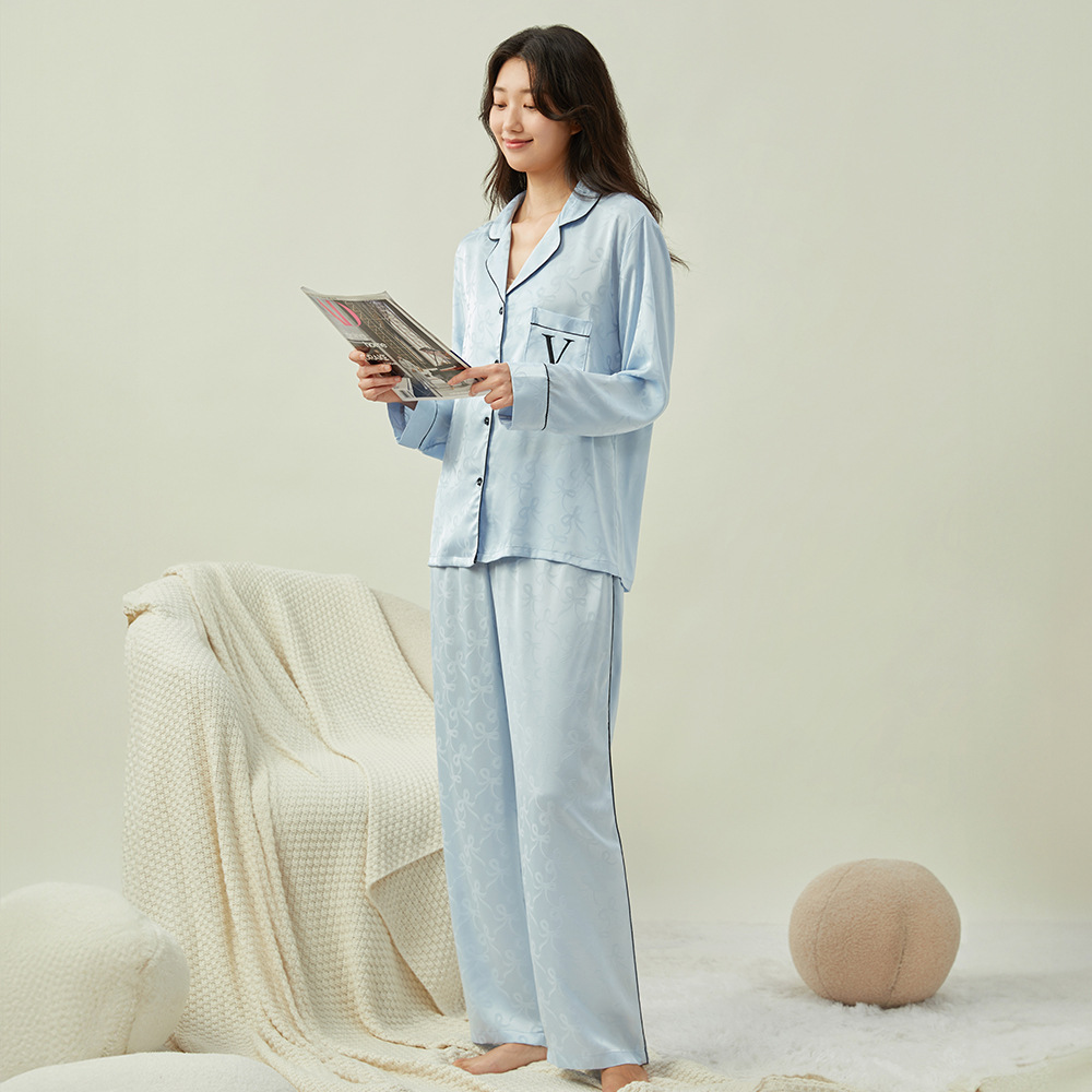 2024 비밀 같은 스타일 나비 스트랩 자카드 파자마 여성 Пижама 긴 소매 바지 세트 홈 옷스토어 가기
