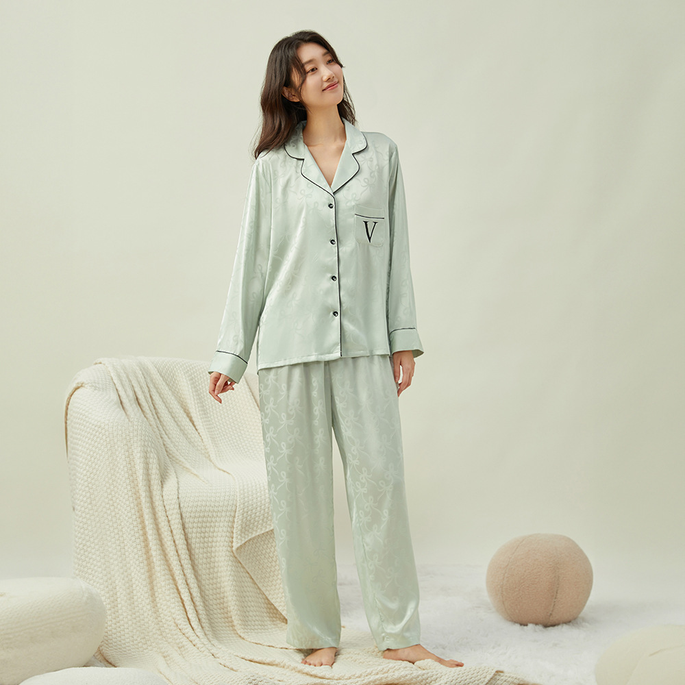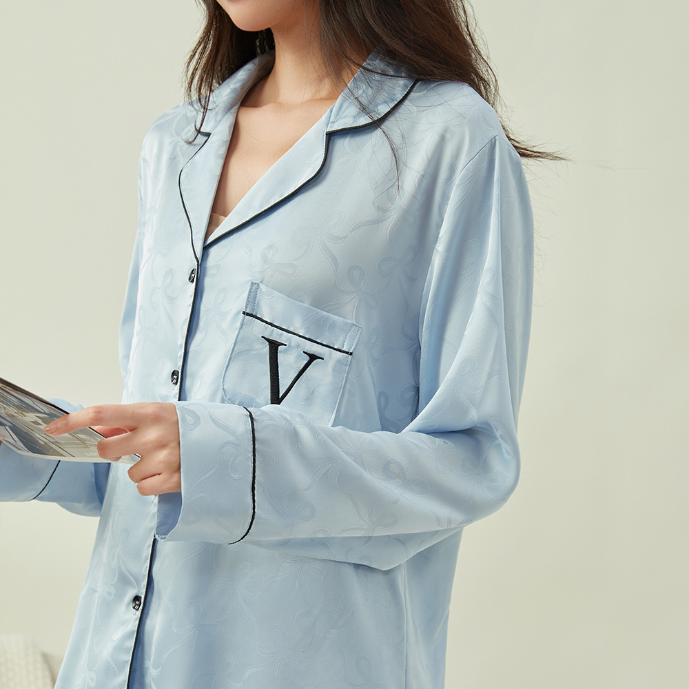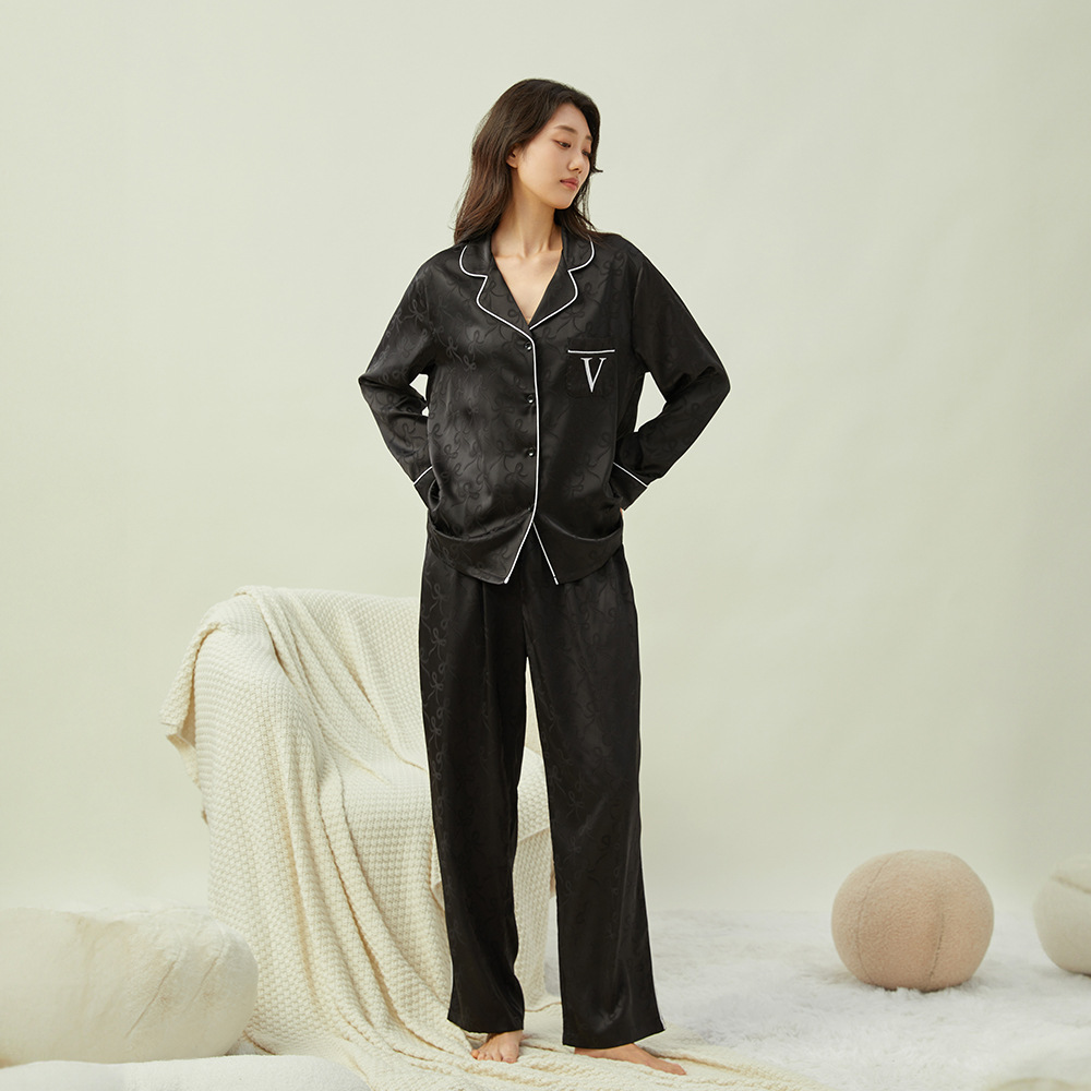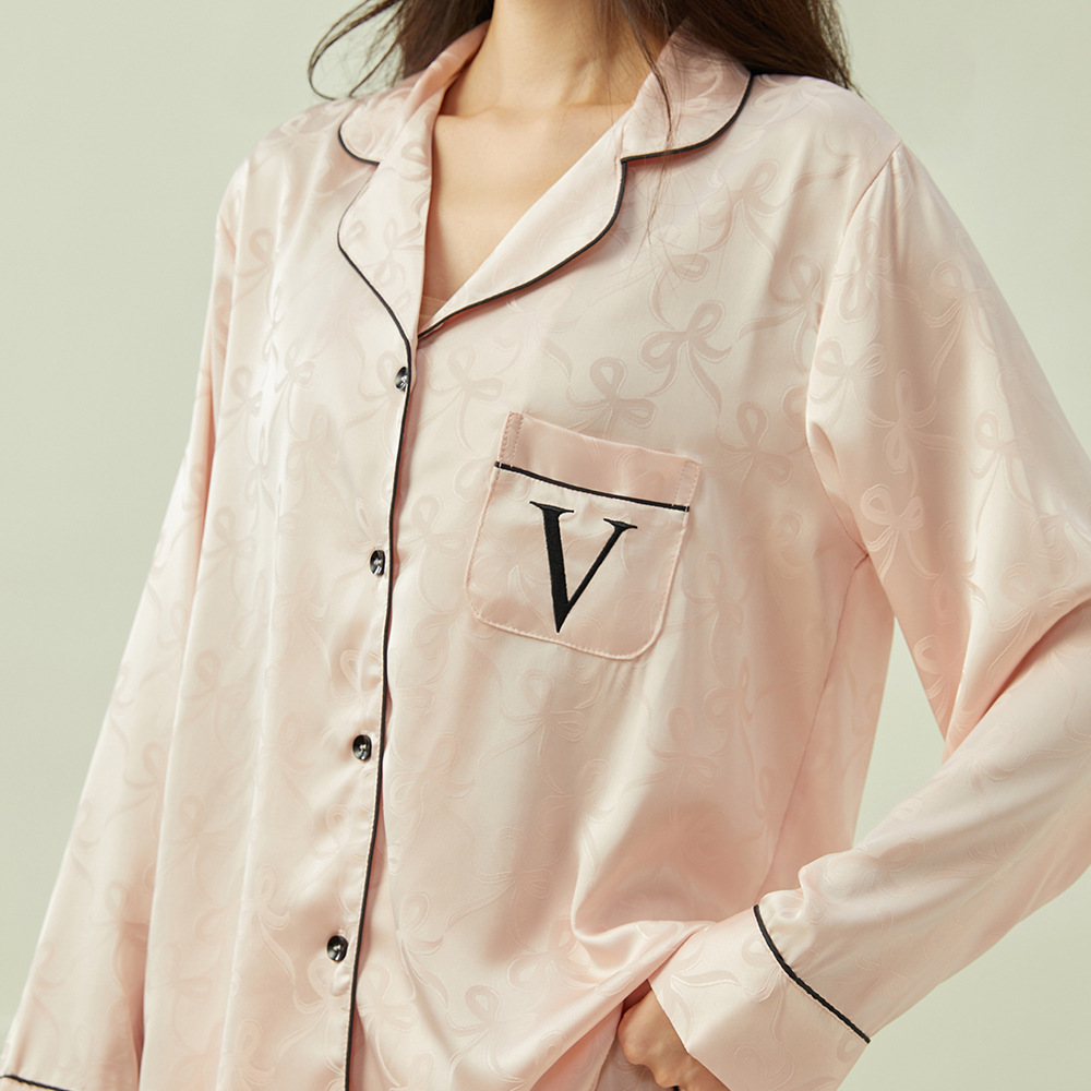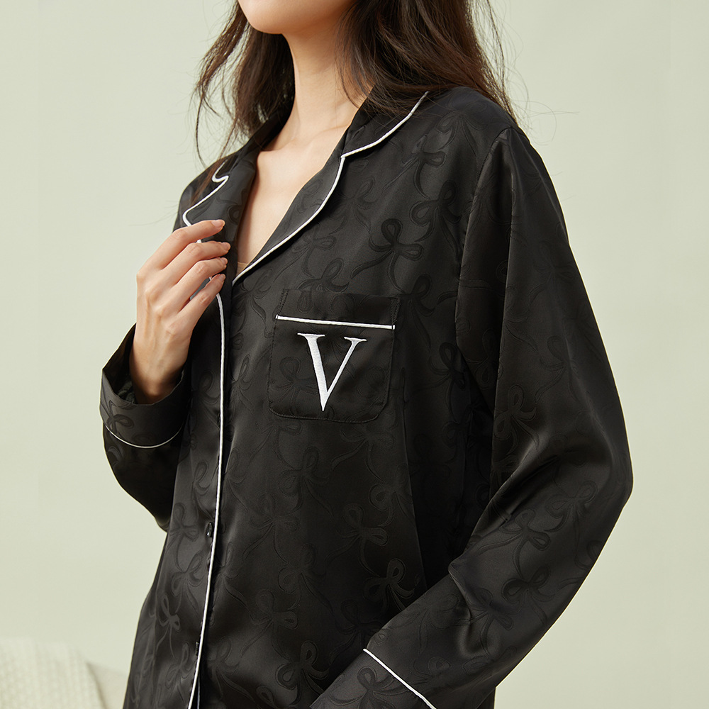 2024 비밀 같은 스타일 나비 스트랩 자카드 파자마 여성 Пижама 긴 소매 바지 세트 홈 옷스토어 가기