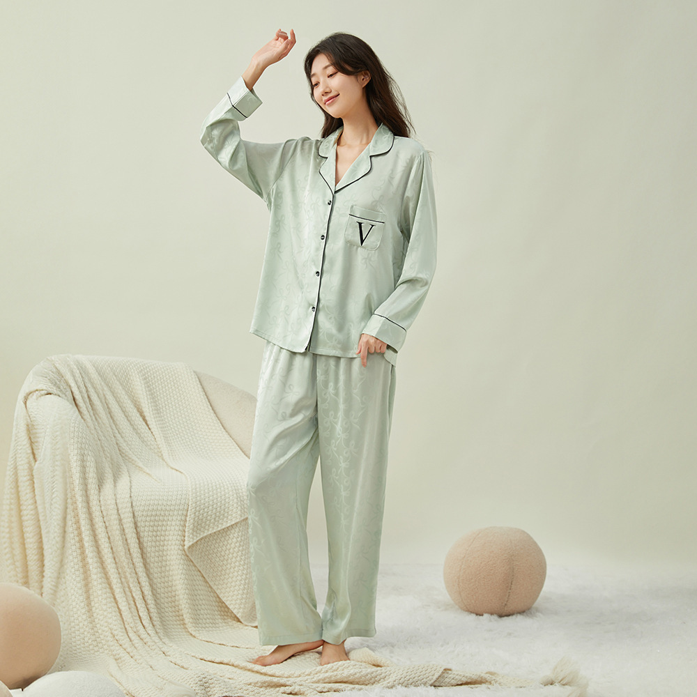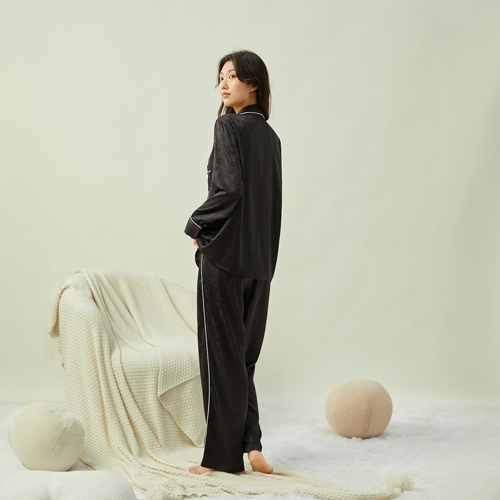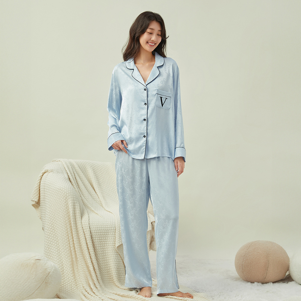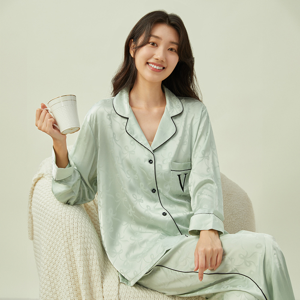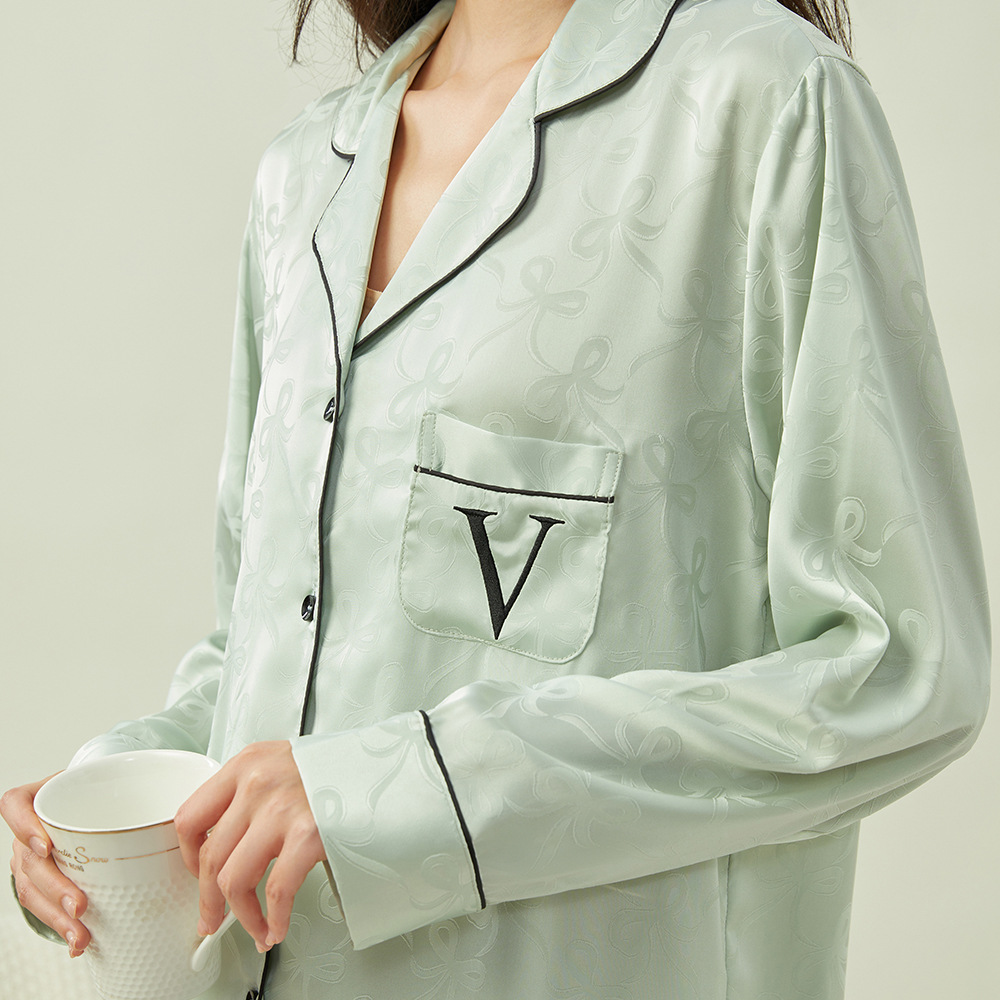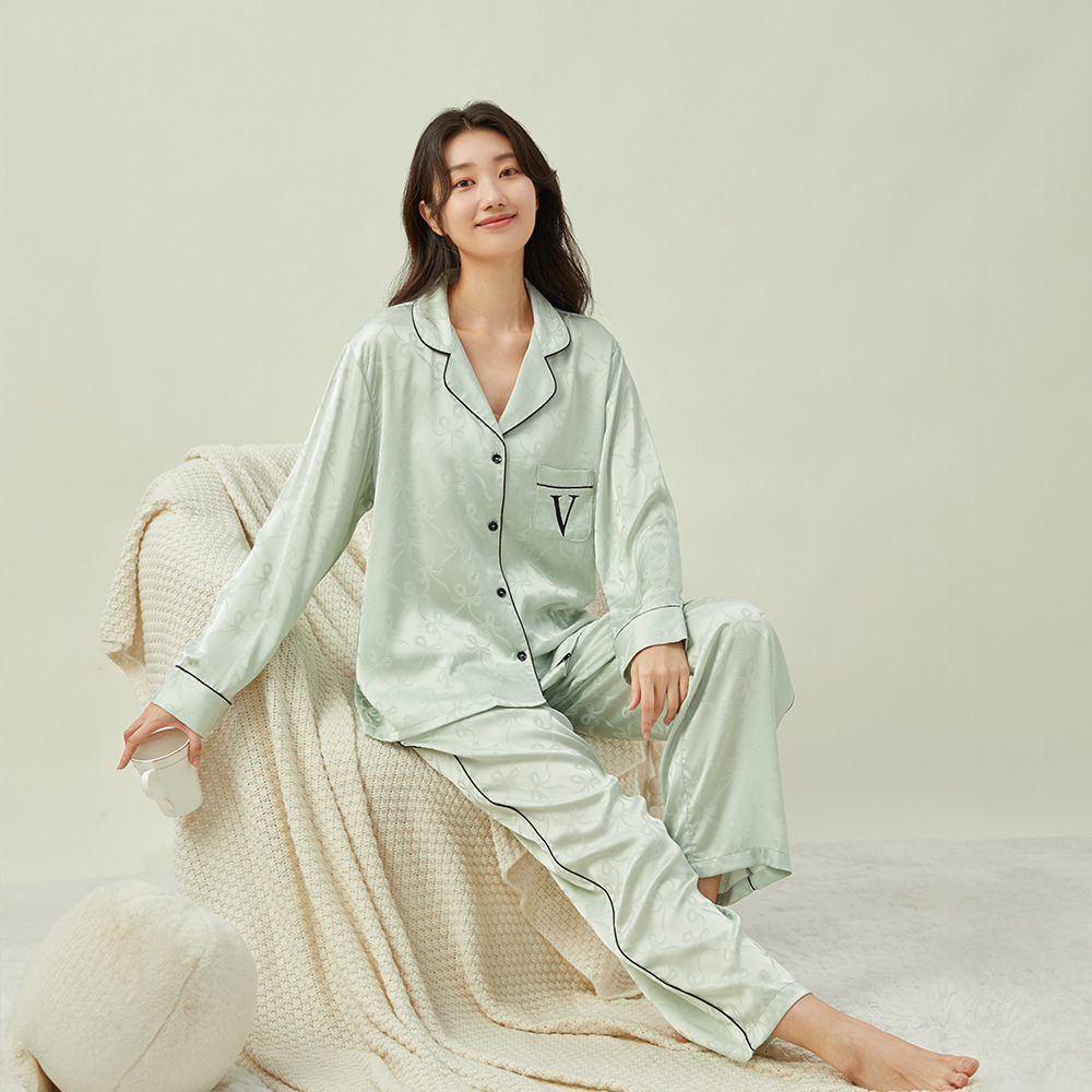 2024 비밀 같은 스타일 나비 스트랩 자카드 파자마 여성 Пижама 긴 소매 바지 세트 홈 옷스토어 가기