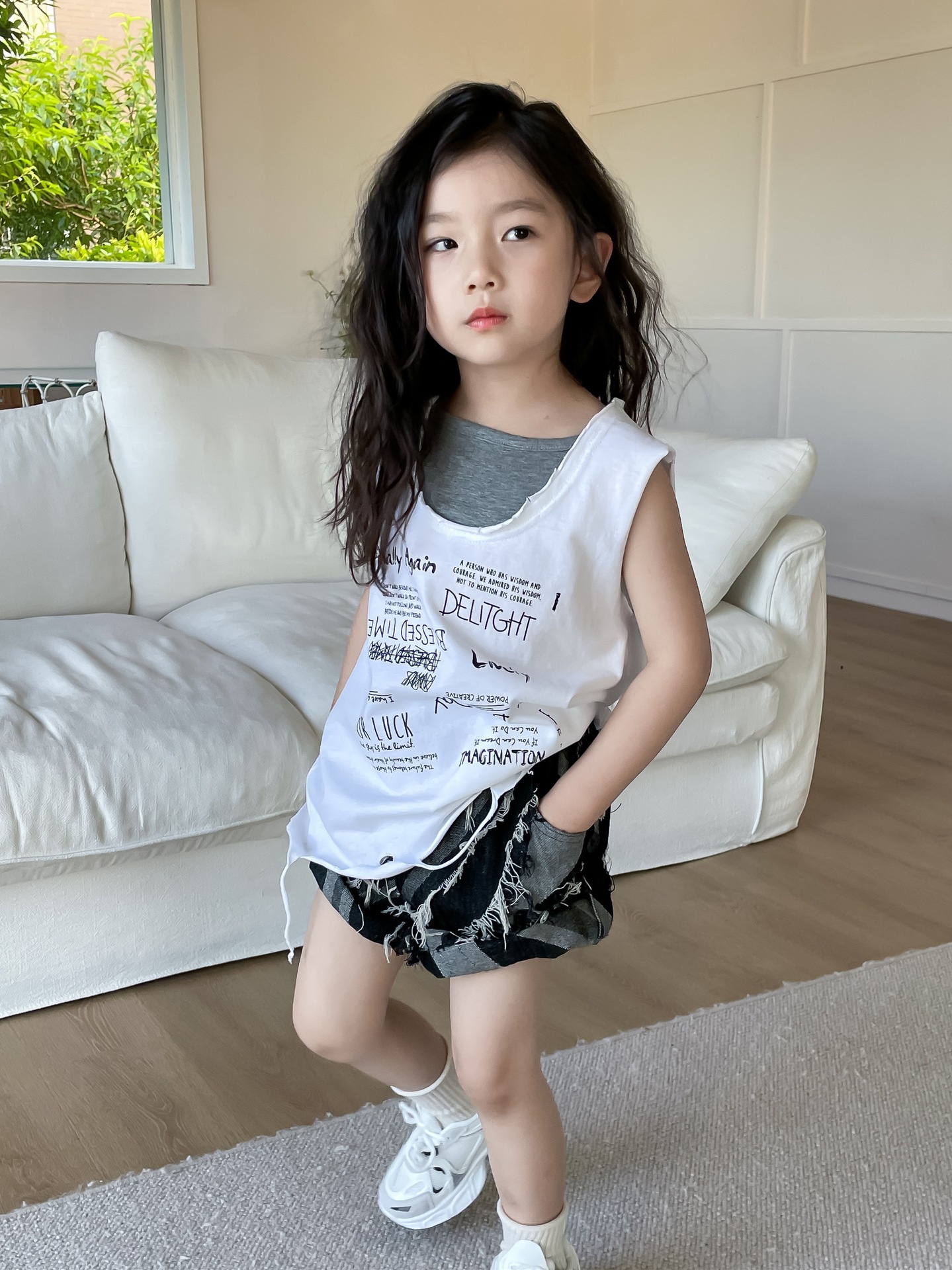 [여름 티셔츠 조끼는 돌아 오지 않는다] 메리 소스 2024 소년 소녀 여름 반팔 티셔츠 어린이 특별 클리어스토어 가기