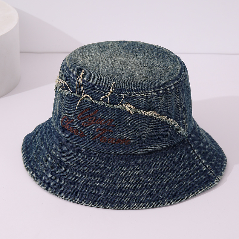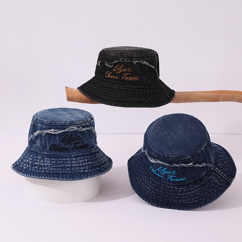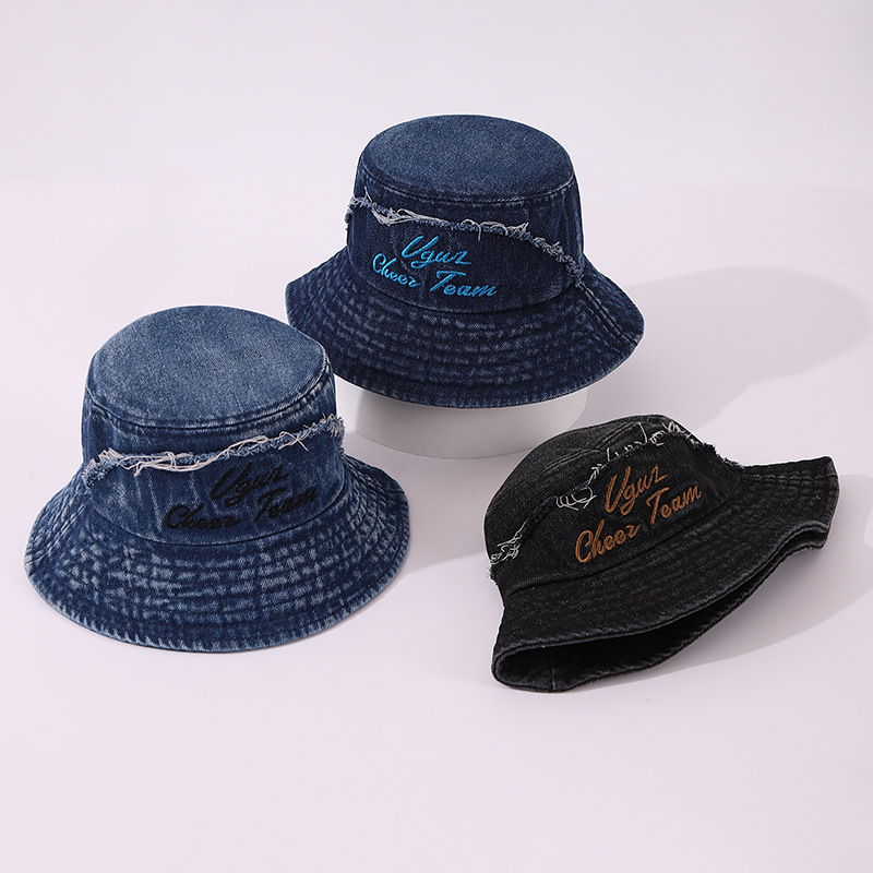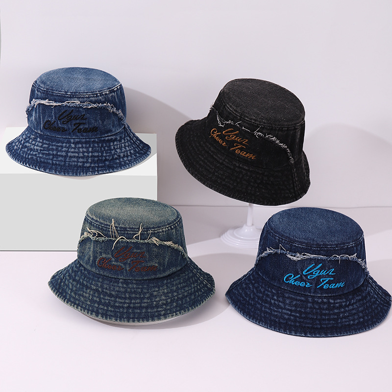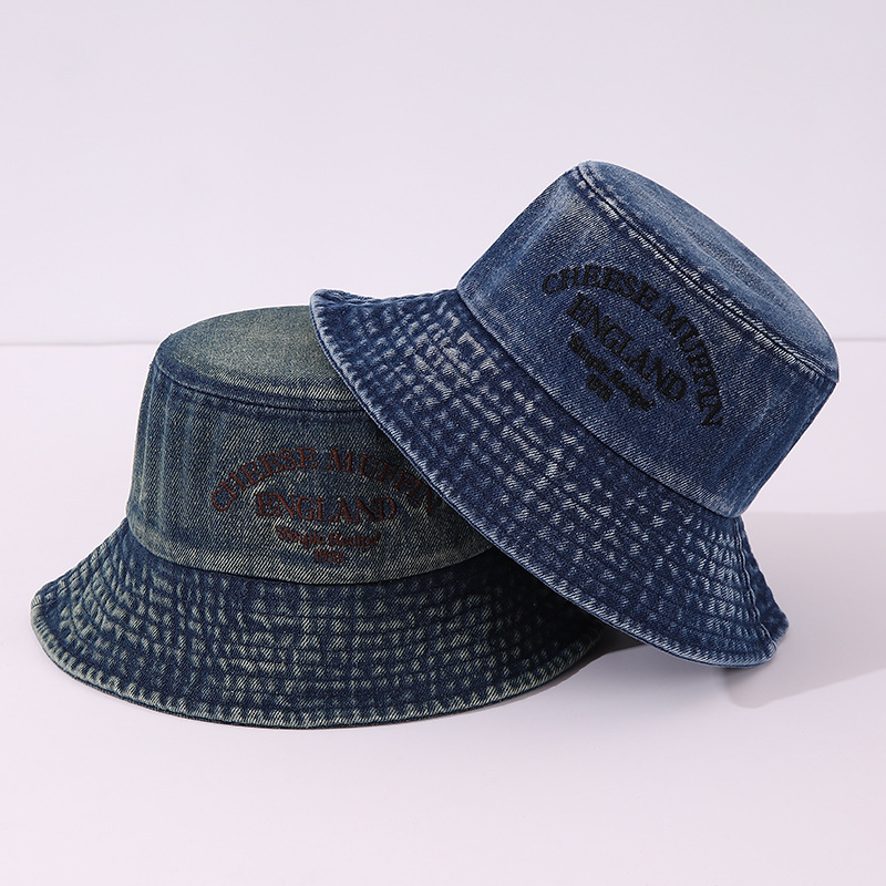 일본 하라주쿠 분지 모자 수 놓은 어린이 데님 어부의 모자 올드 플랫 탑 소년과 소녀를위한 독특한 외국 스타일스토어 가기