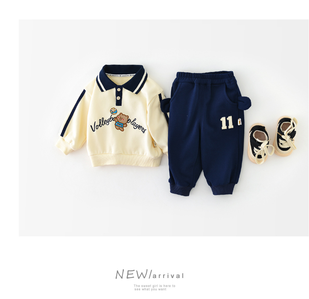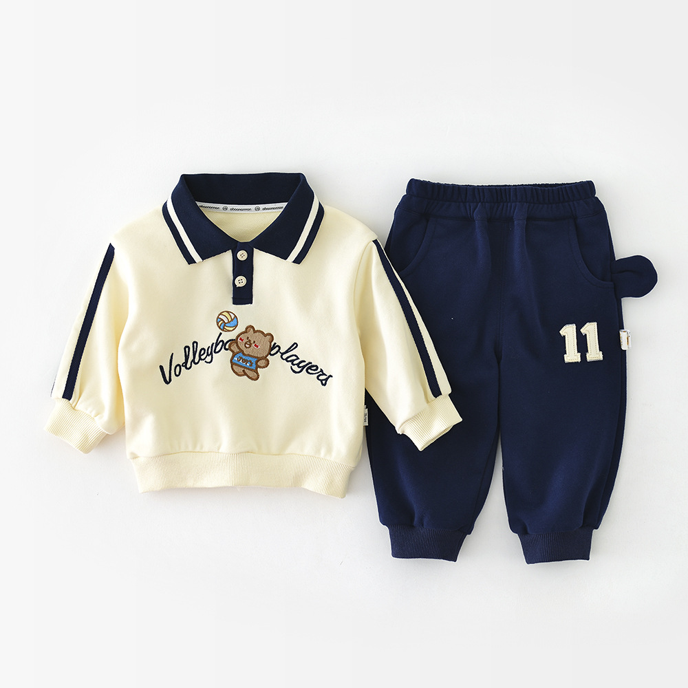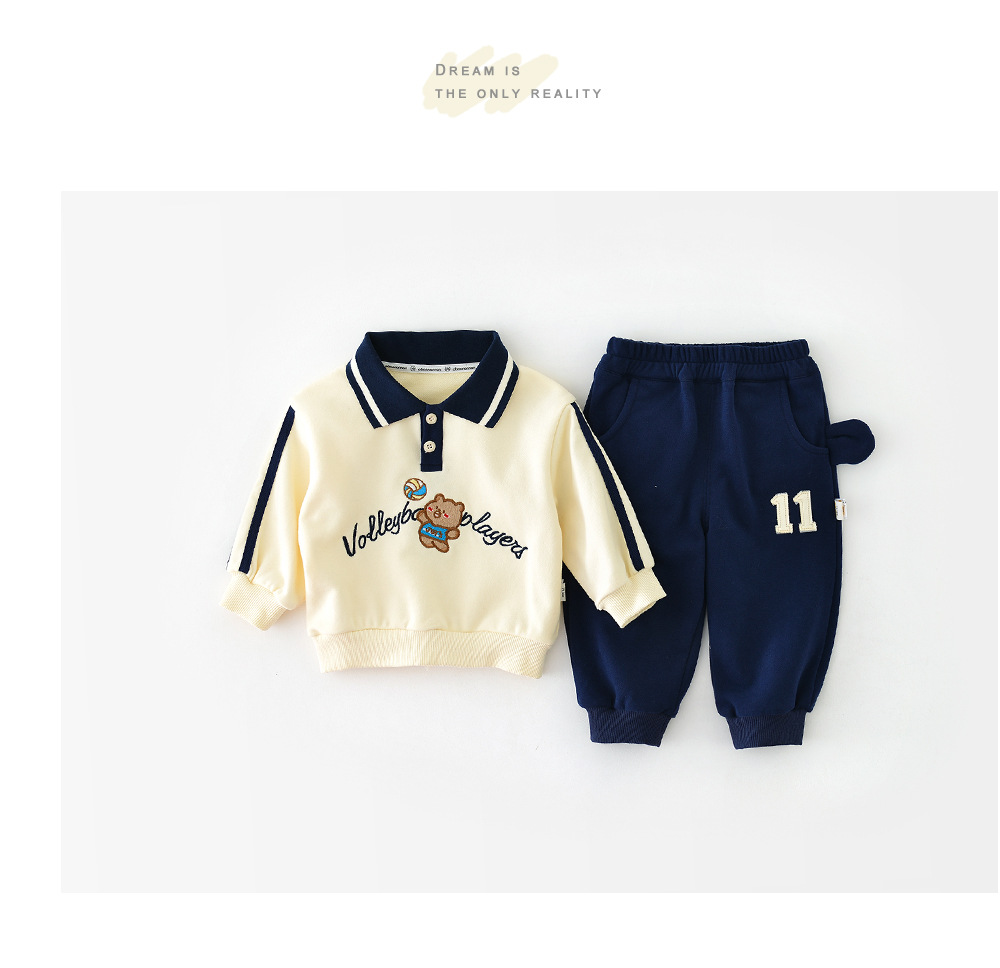 아기 가을 정장 어린이 옷깃 곰 운동복 아기 가을 스타일 스포츠 바지 투피스 세트 93715