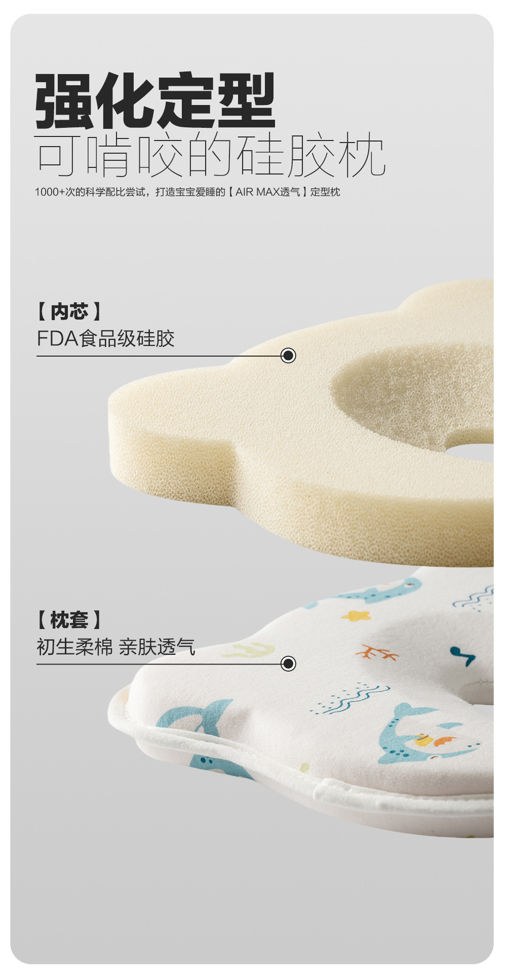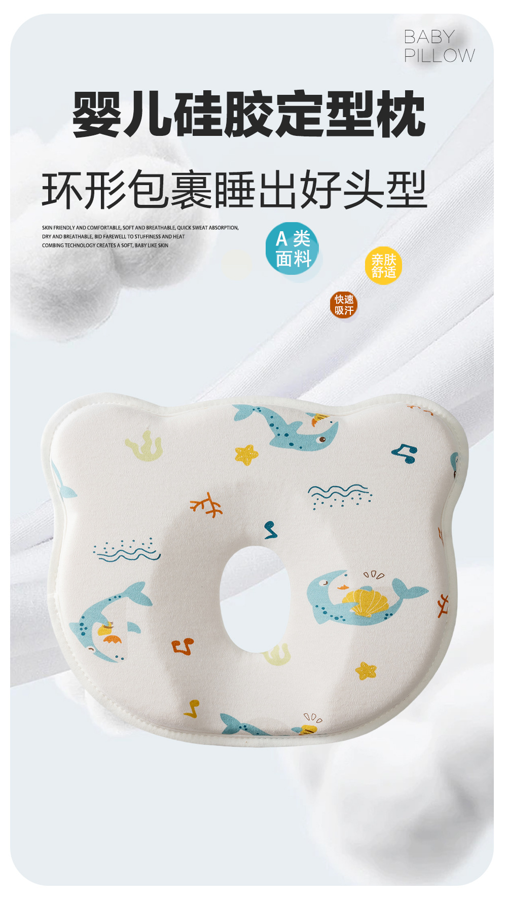 실리콘 베개 아기 모양의 베개 신생아 수정 머리 유형 정정 플랫 머리 받침 여름 사계절 땀 흡수 통기성 곰스토어 가기