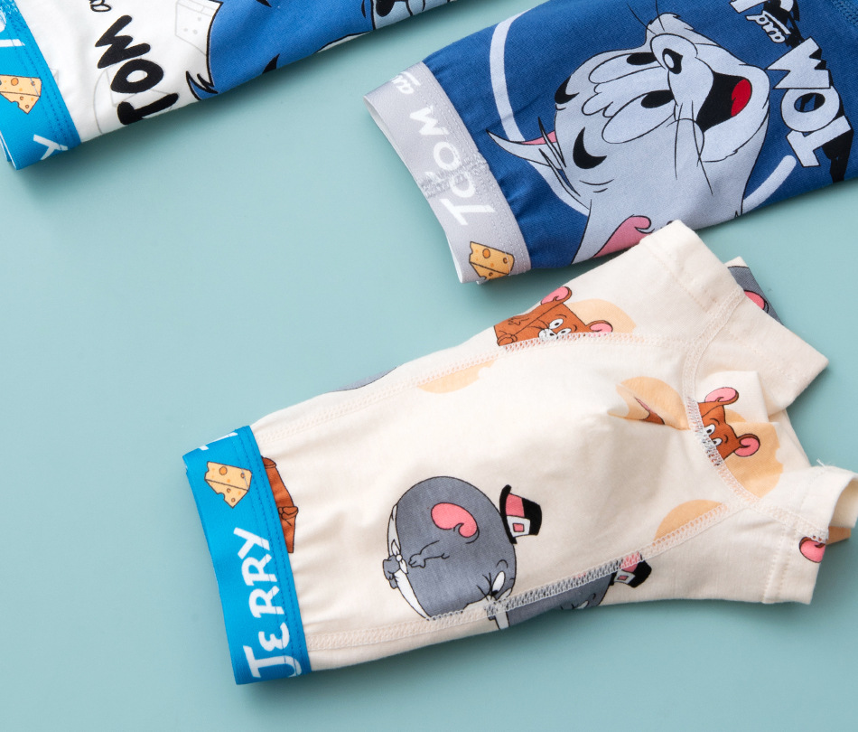 남학생 속옷 순면 클래스 면 만화 고양이 및 마우스 복서 복서 여름 얇은 십대 학생 바지스토어 가기