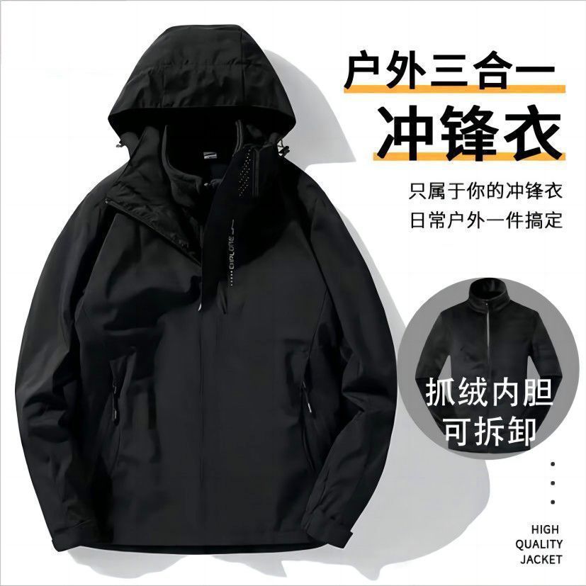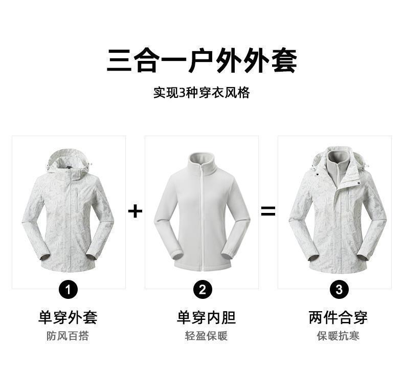 남자와 여자 커플 야외 방풍 방수 등산 세트 재킷 코트를 위한 베이징 스타일 3 대 1 분리 가능한 충전 옷스토어 가기