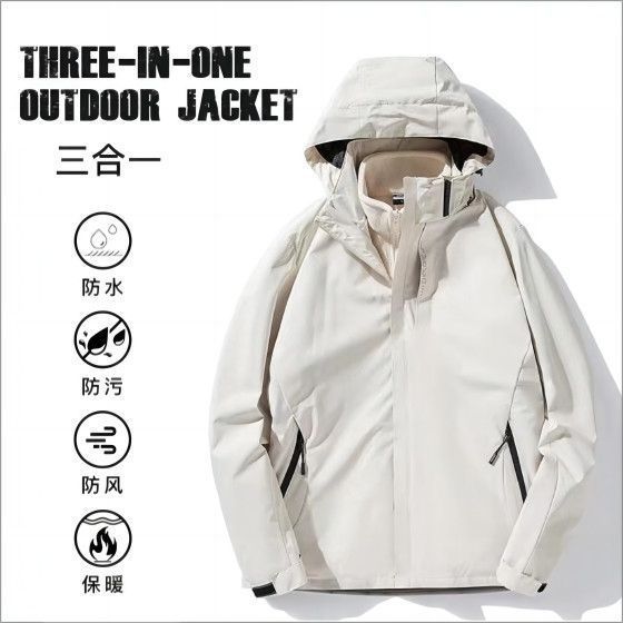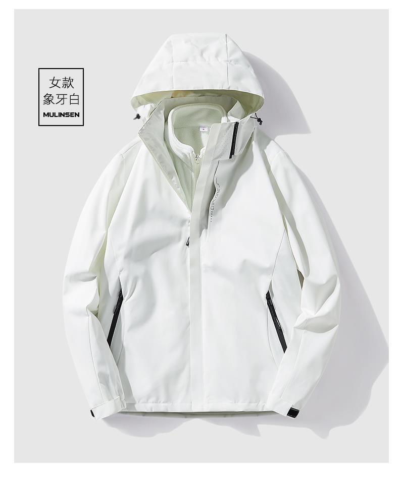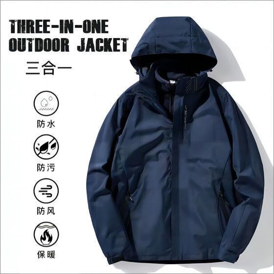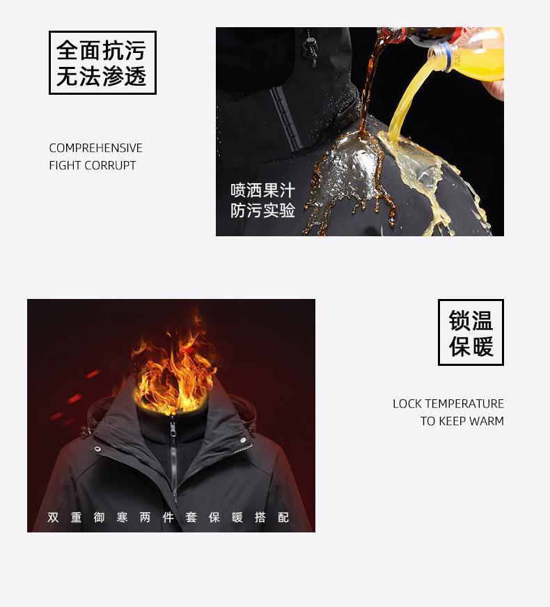 남자와 여자 커플 야외 방풍 방수 등산 세트 재킷 코트를 위한 베이징 스타일 3 대 1 분리 가능한 충전 옷