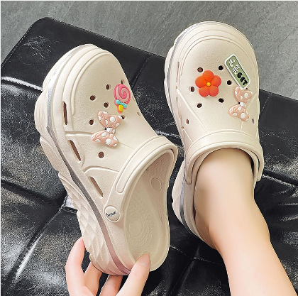 여성용 Croc 신발 2023 새로운 두꺼운 밑창 샌들, 패셔너블한 아우터웨어, 배설물 느낌을 증가시키는 비치 여성 샌들 및 슬리퍼