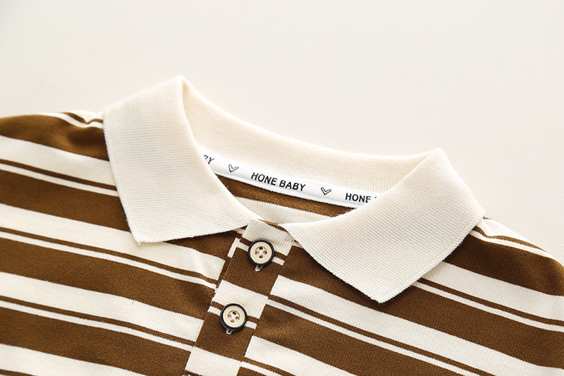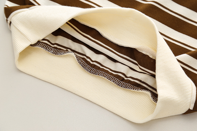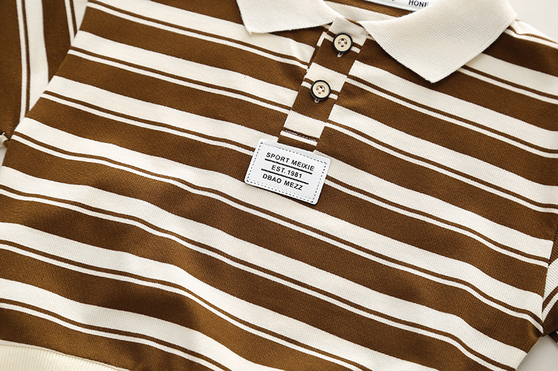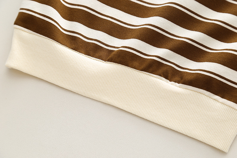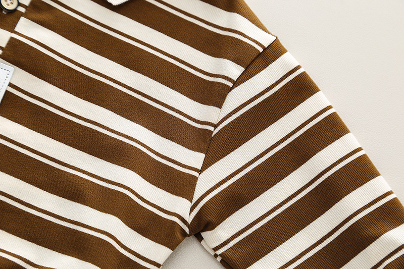 • M230307 알파벳 줄무늬 옷깃 2 조각 세트 다크 브라운