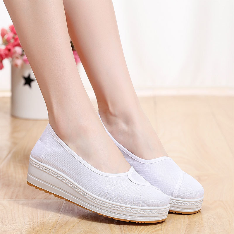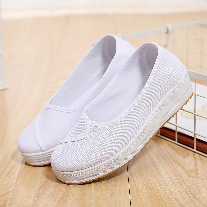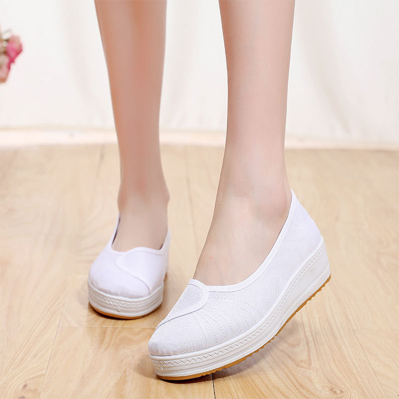 봄 간호사 신발 여성의 흰색 두꺼운 밑창 2024 새로운 미용 신발 여성의 흰색 신발 오래된 베이징 천 신발 플랫 여성 신발스토어 가기