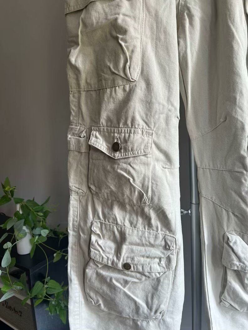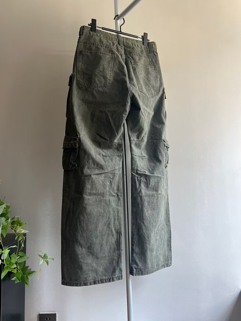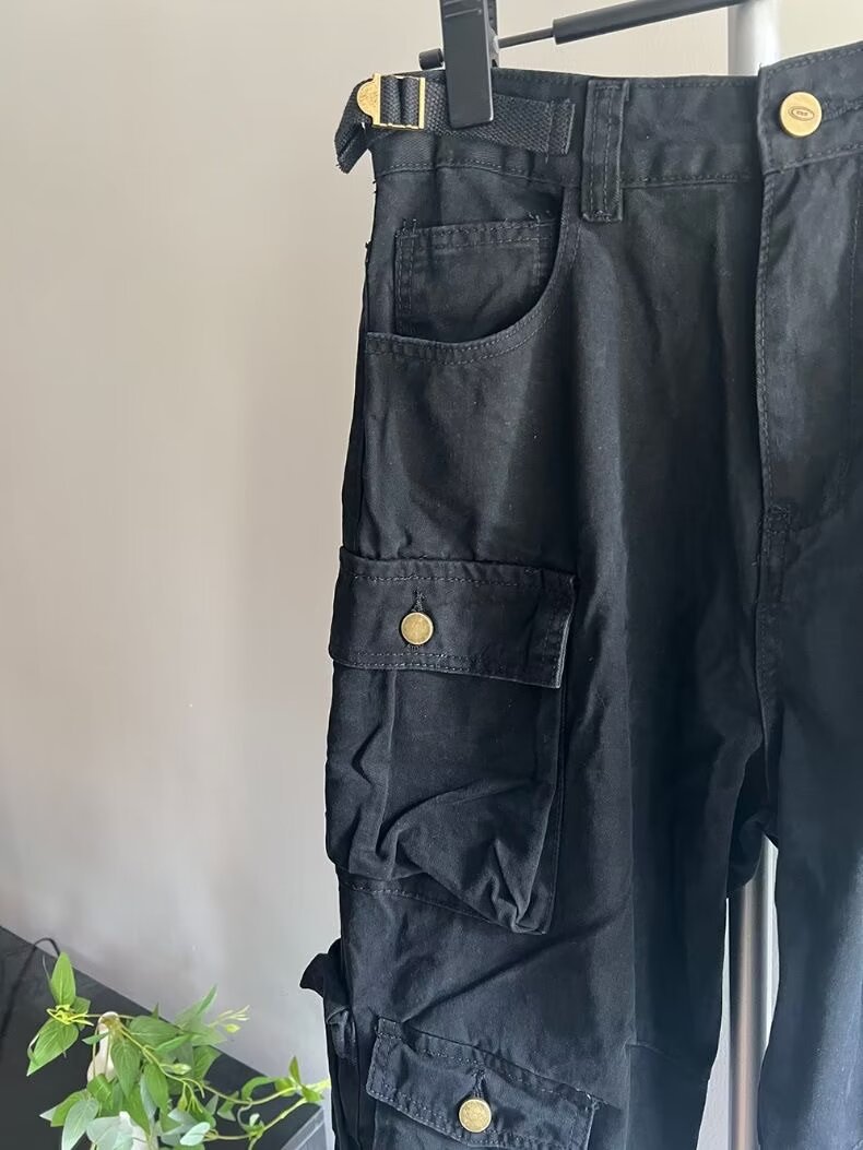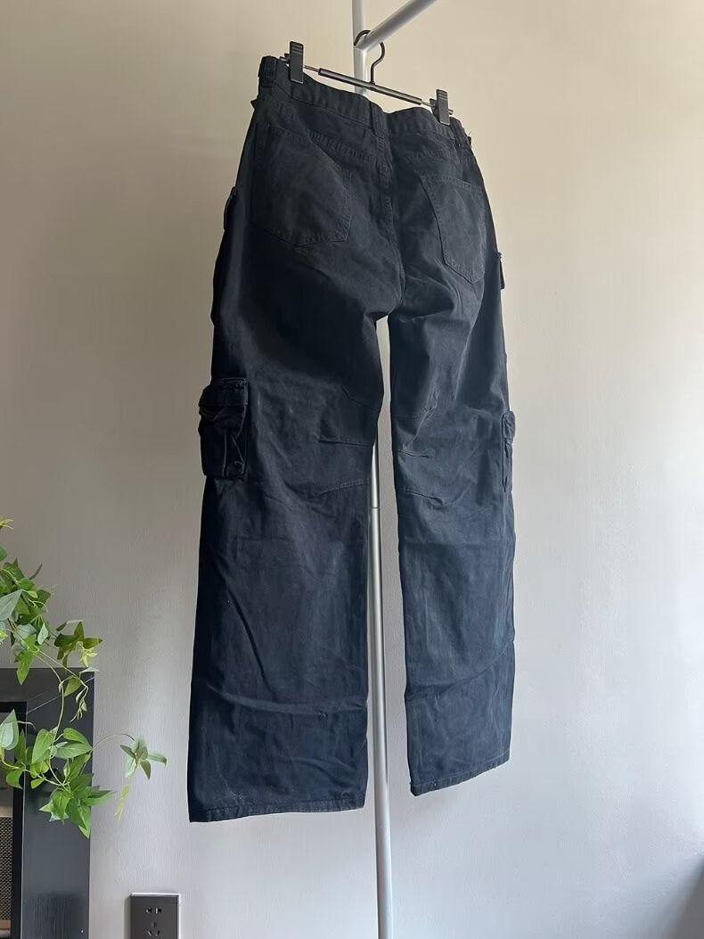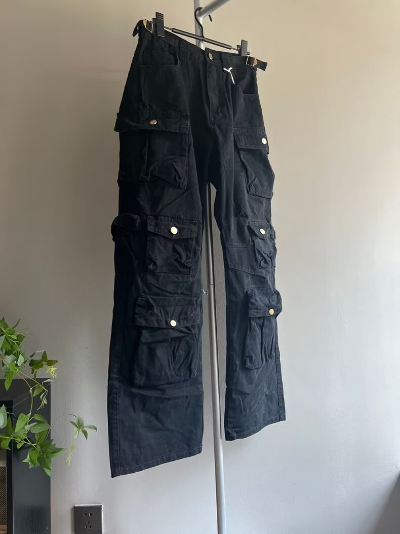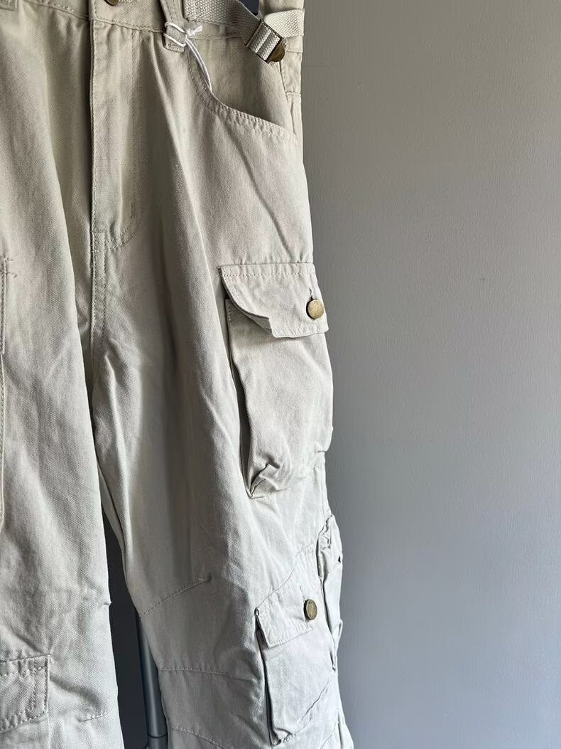 [3 색 멀티 포켓] 클린 핏 대형 포켓 버튼 스트레이트 느슨한 미국 바지 남성 청바지 패션