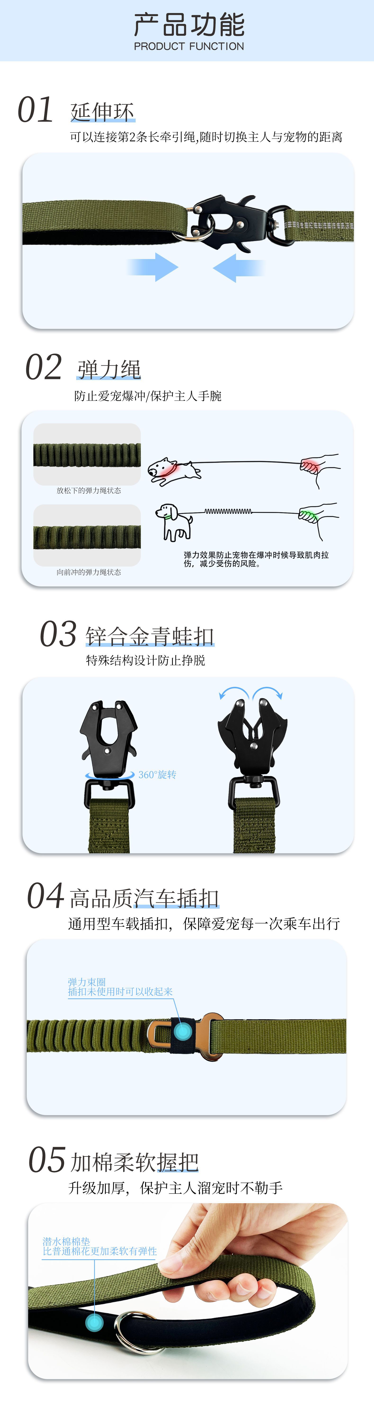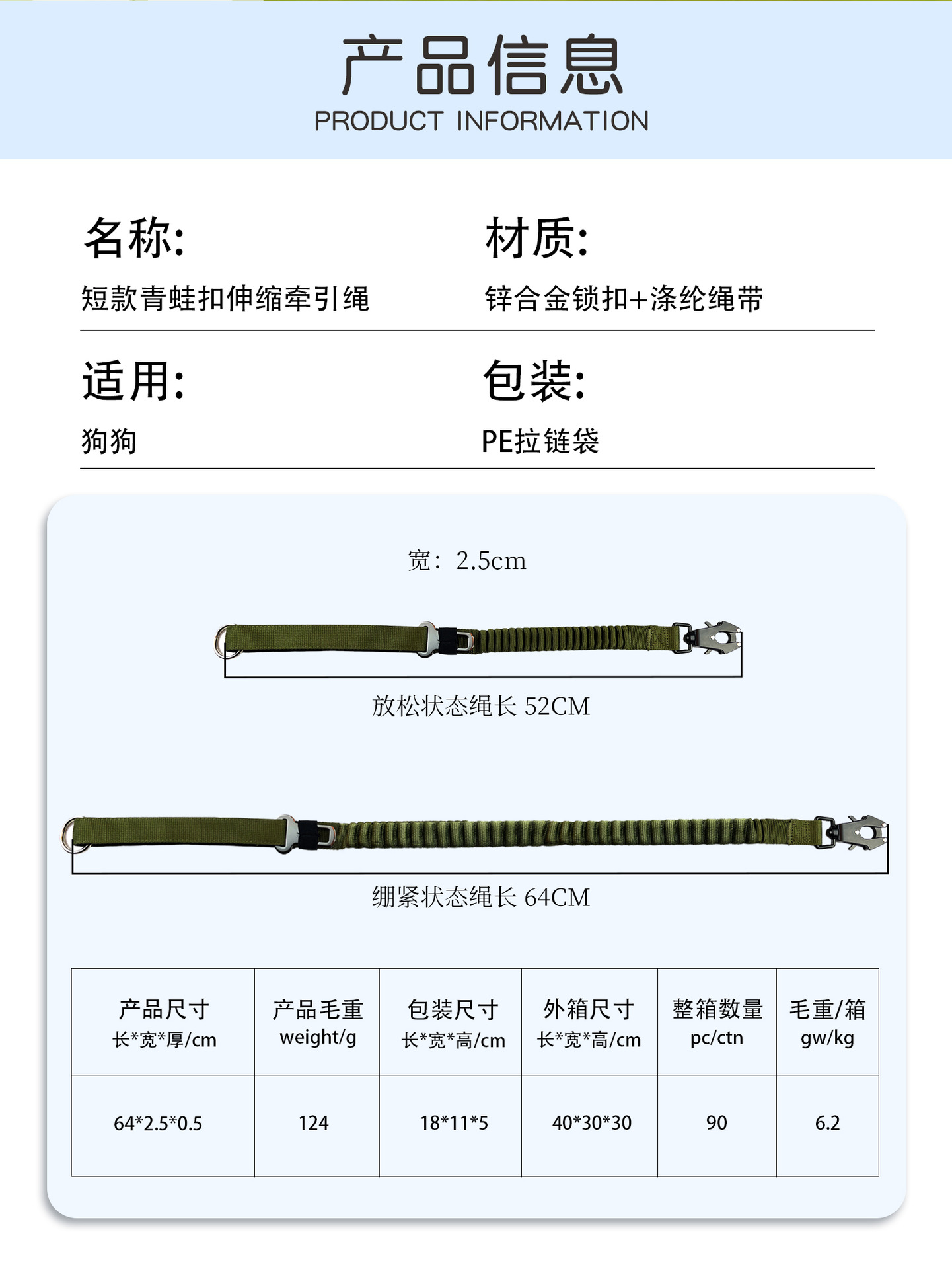 국경 간 뜨거운 판매 다기능 높은 탄성 폭발 방지 견인 로프 짧은 개폐식 아연 합금 개구리 버클 개 가죽 끈