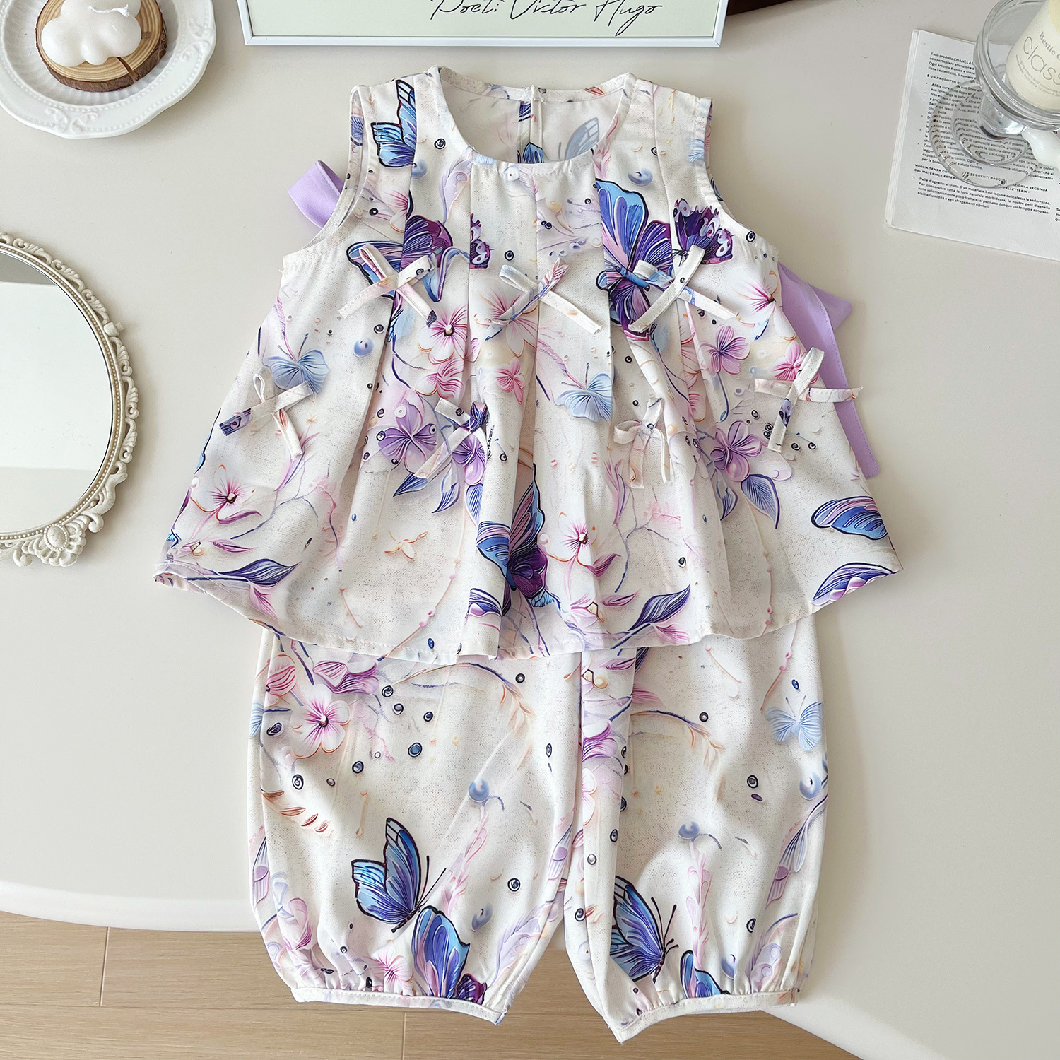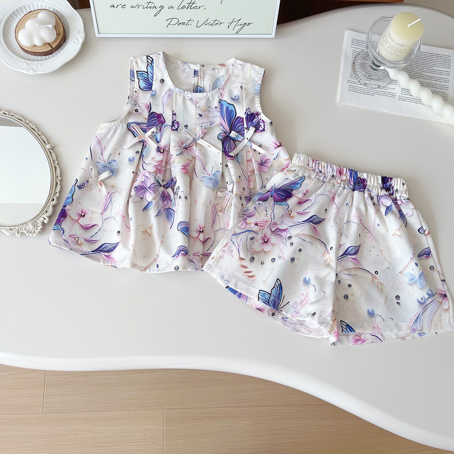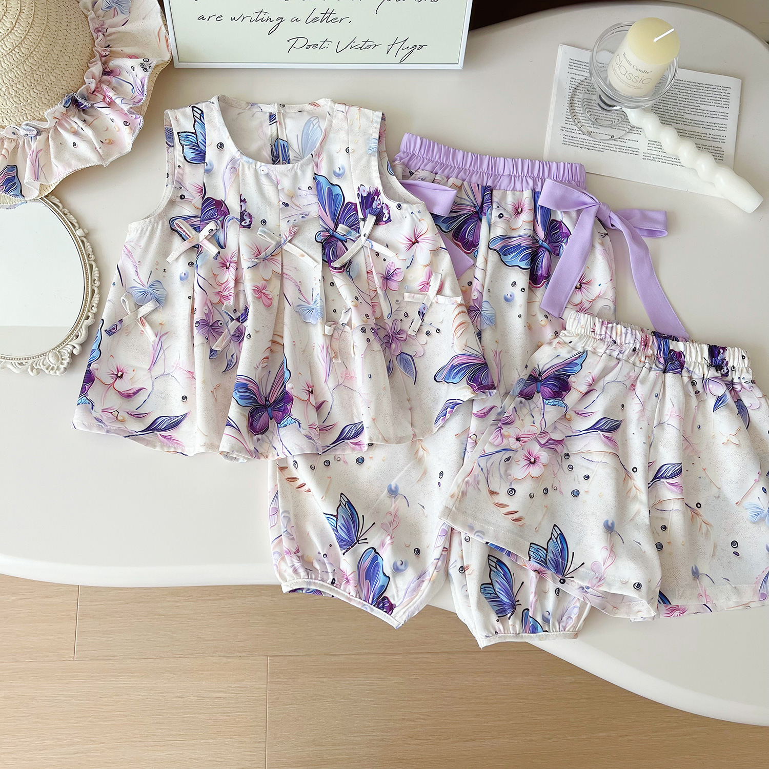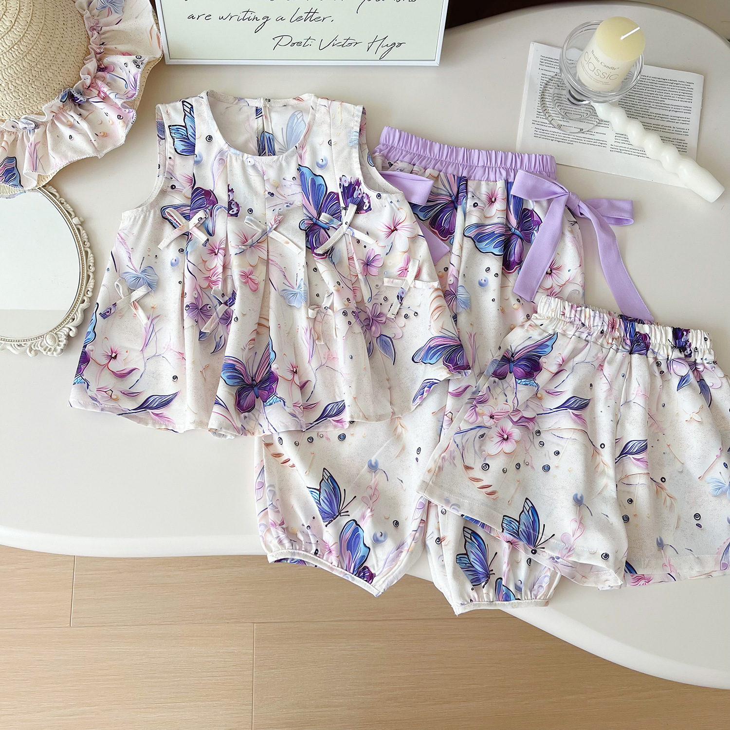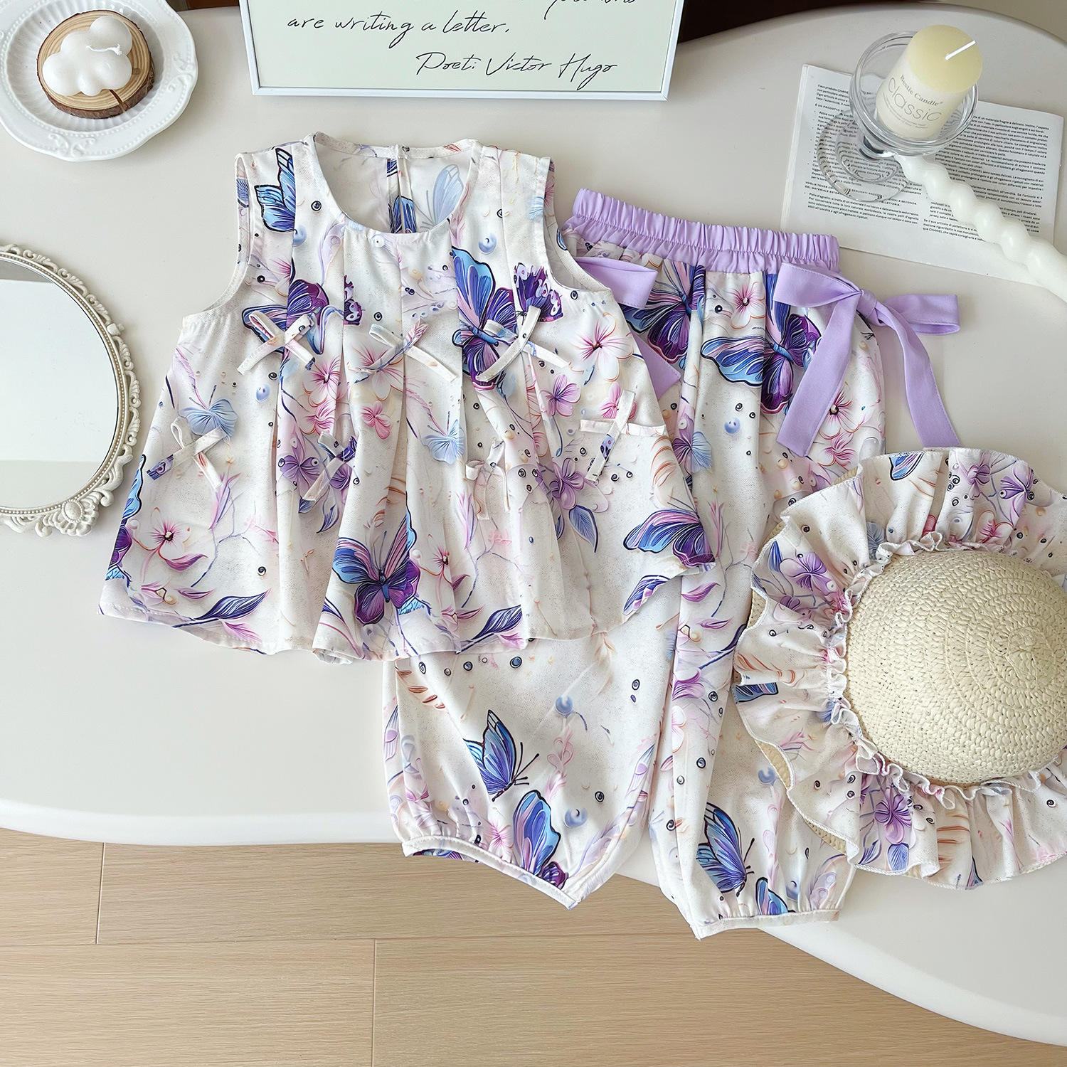 어린이 3 조각 새 한국 스타일 소녀 여름 유행 서양식 꽃 천 바지 반바지 상쾌한 어린이 세트스토어 가기