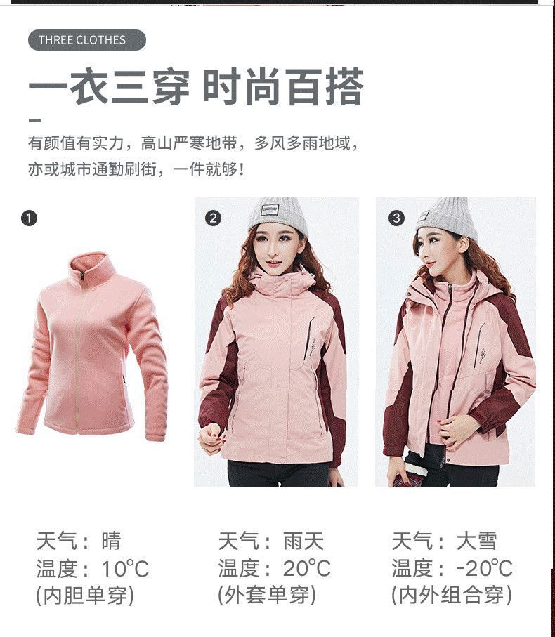 밍크 플리스 재킷 여성의 새로운 3 인 1 투 피스 방수 방풍 스키 낚시 세트 남성용 티베트 등산 세트스토어 가기