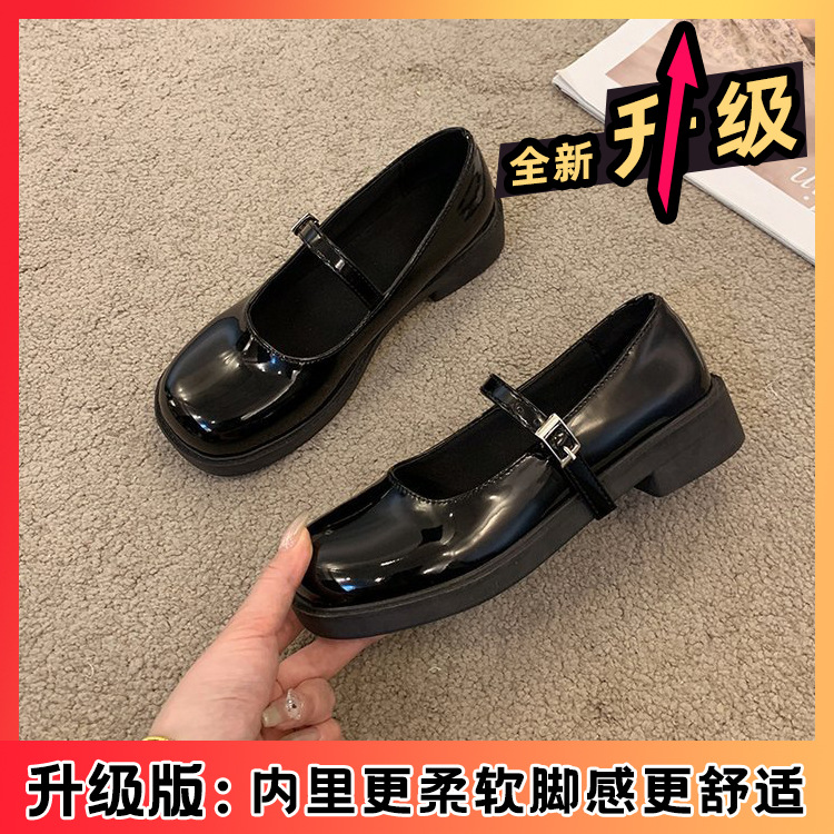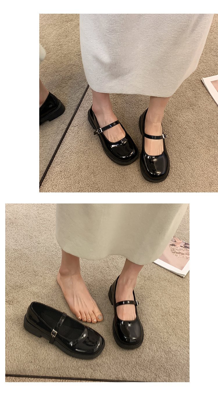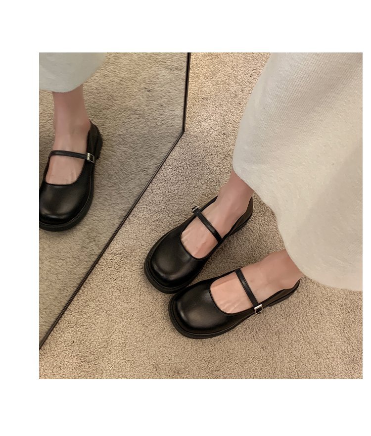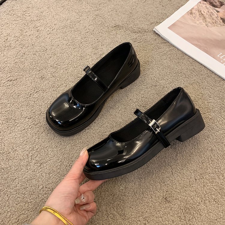 여성을위한 프랑스 복고풍 작은 가죽 신발 2025 새로운 여름 둥근 발가락 두꺼운 굽 단일 신발 솔리드 컬러 스커트 메리 제인 신발스토어 가기