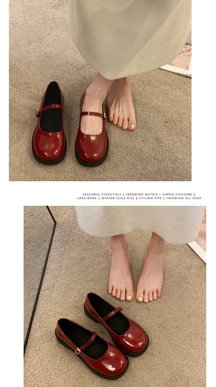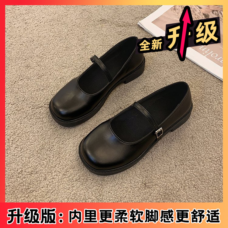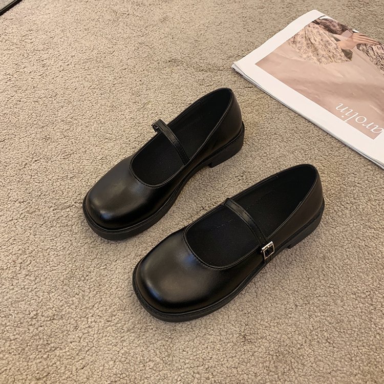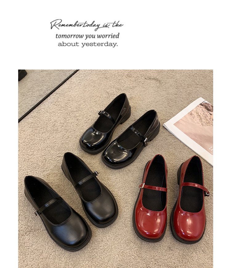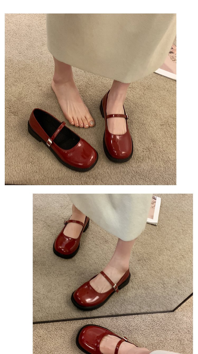 여성을위한 프랑스 복고풍 작은 가죽 신발 2025 새로운 여름 둥근 발가락 두꺼운 굽 단일 신발 솔리드 컬러 스커트 메리 제인 신발스토어 가기