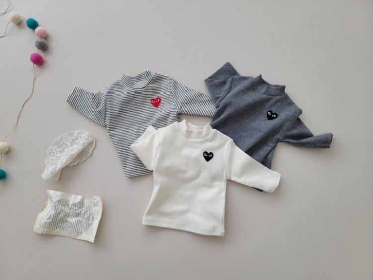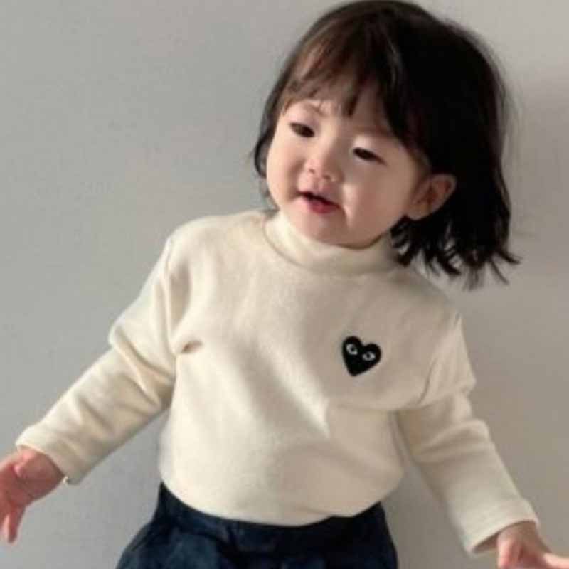 Ins Korean Style 가을 및 겨울 착용 어린이 사랑 두꺼운 모의 칼라 티셔츠 아기 아동복 아기 따뜻한베이스 셔츠 탑스토어 가기