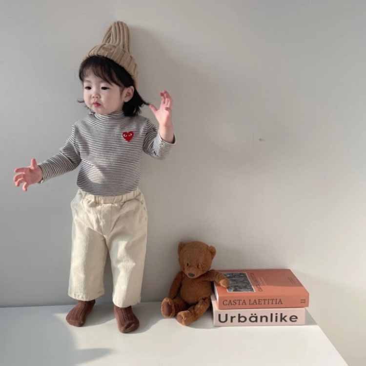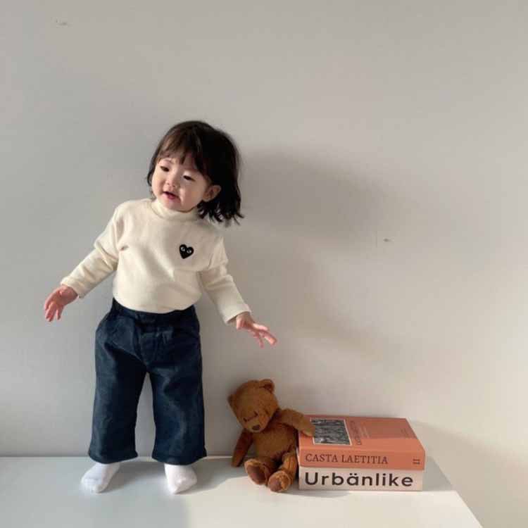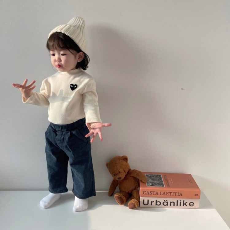 Ins Korean Style 가을 및 겨울 착용 어린이 사랑 두꺼운 모의 칼라 티셔츠 아기 아동복 아기 따뜻한베이스 셔츠 탑